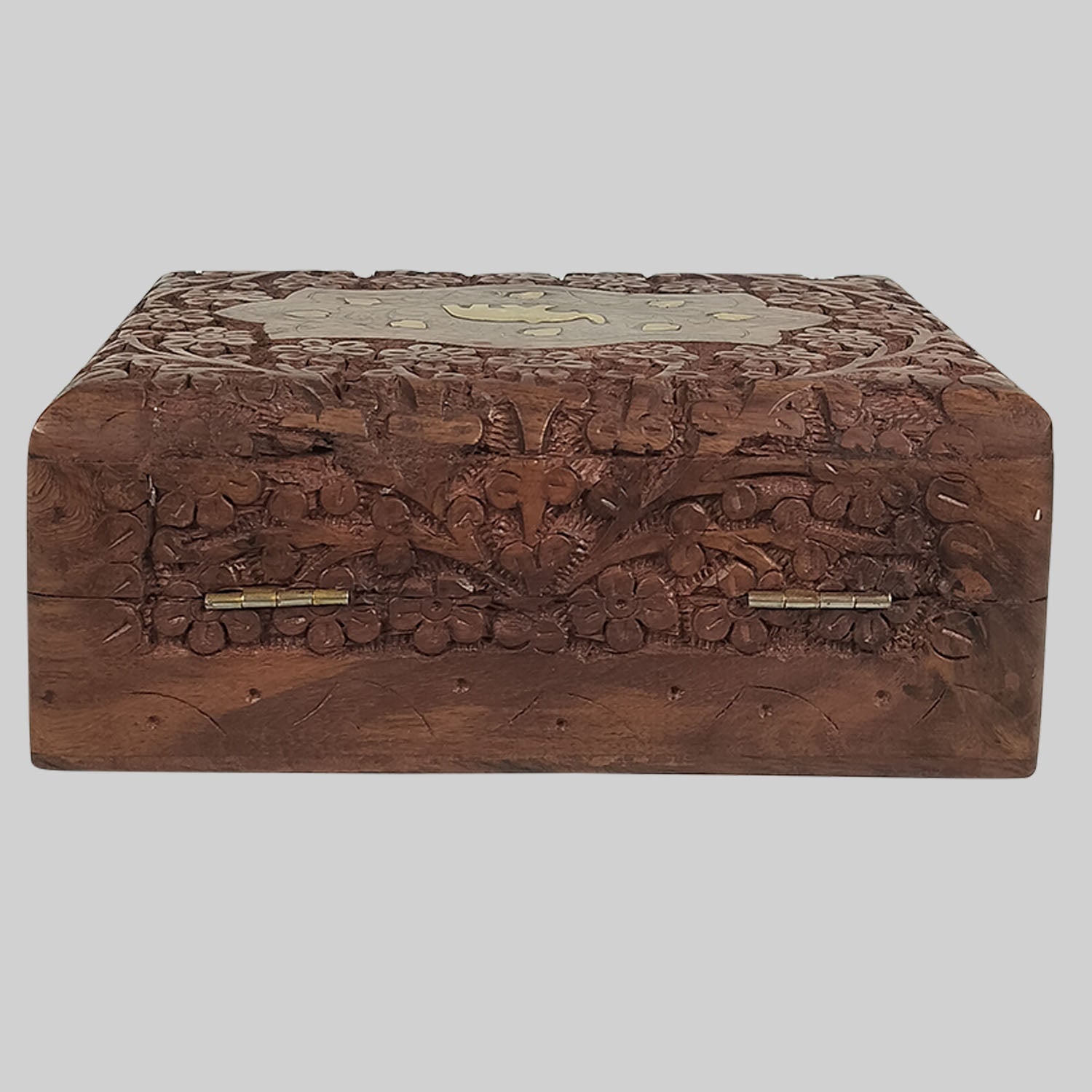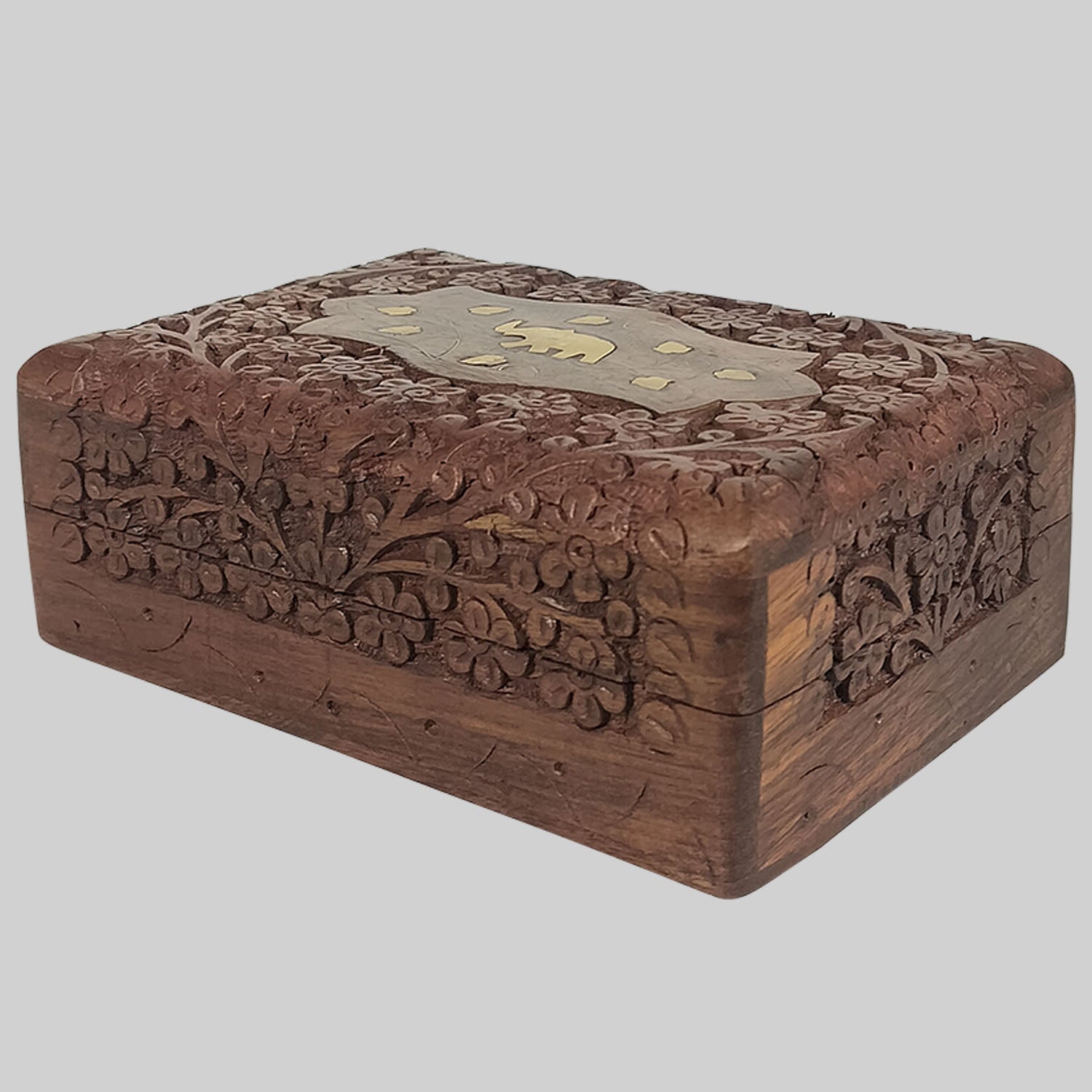 Elephant Carved Box with Brass Inlay Wrok 7 in x 5 in