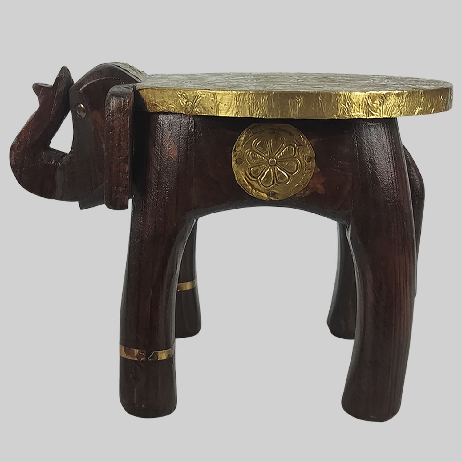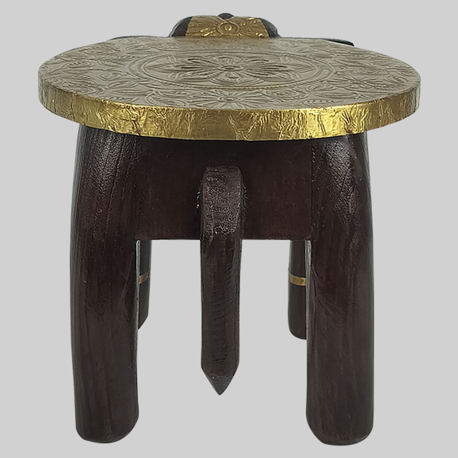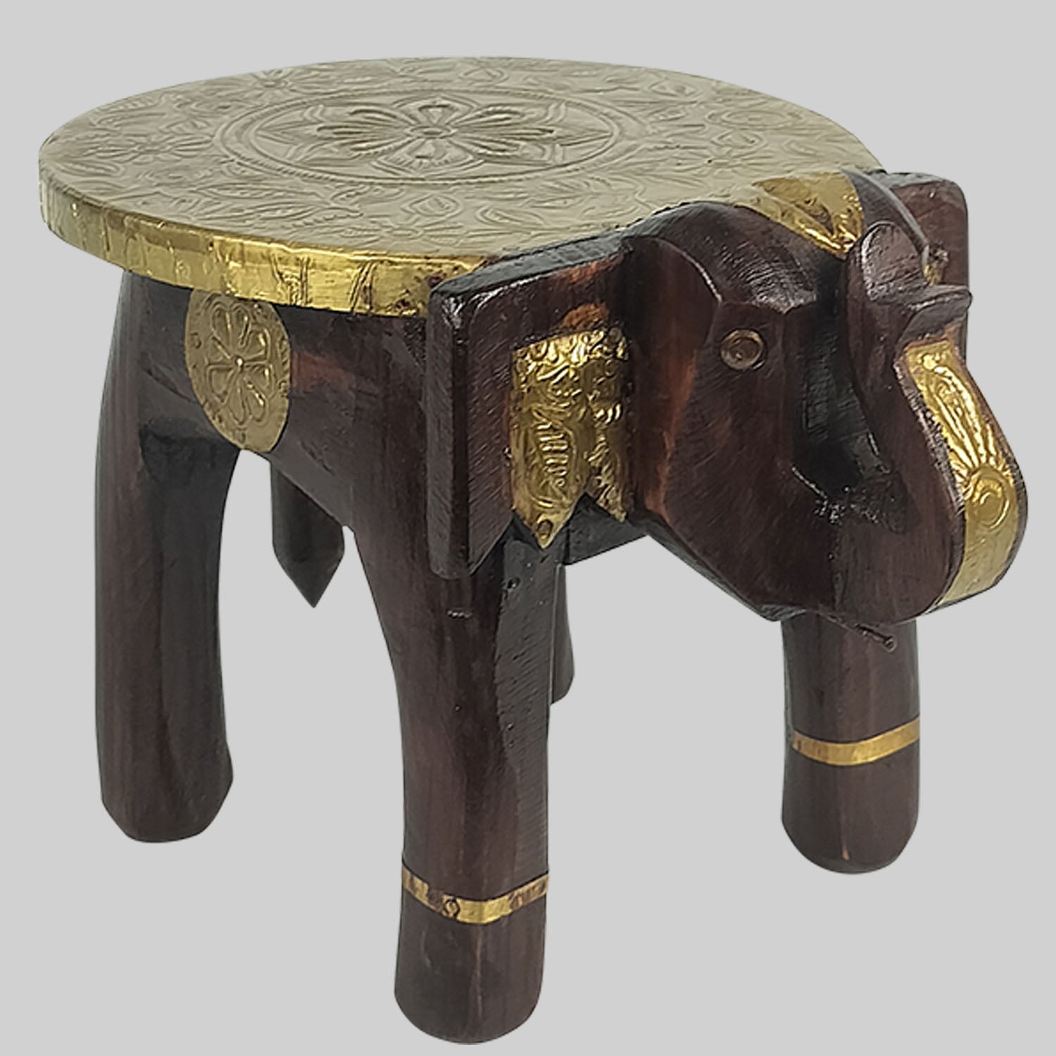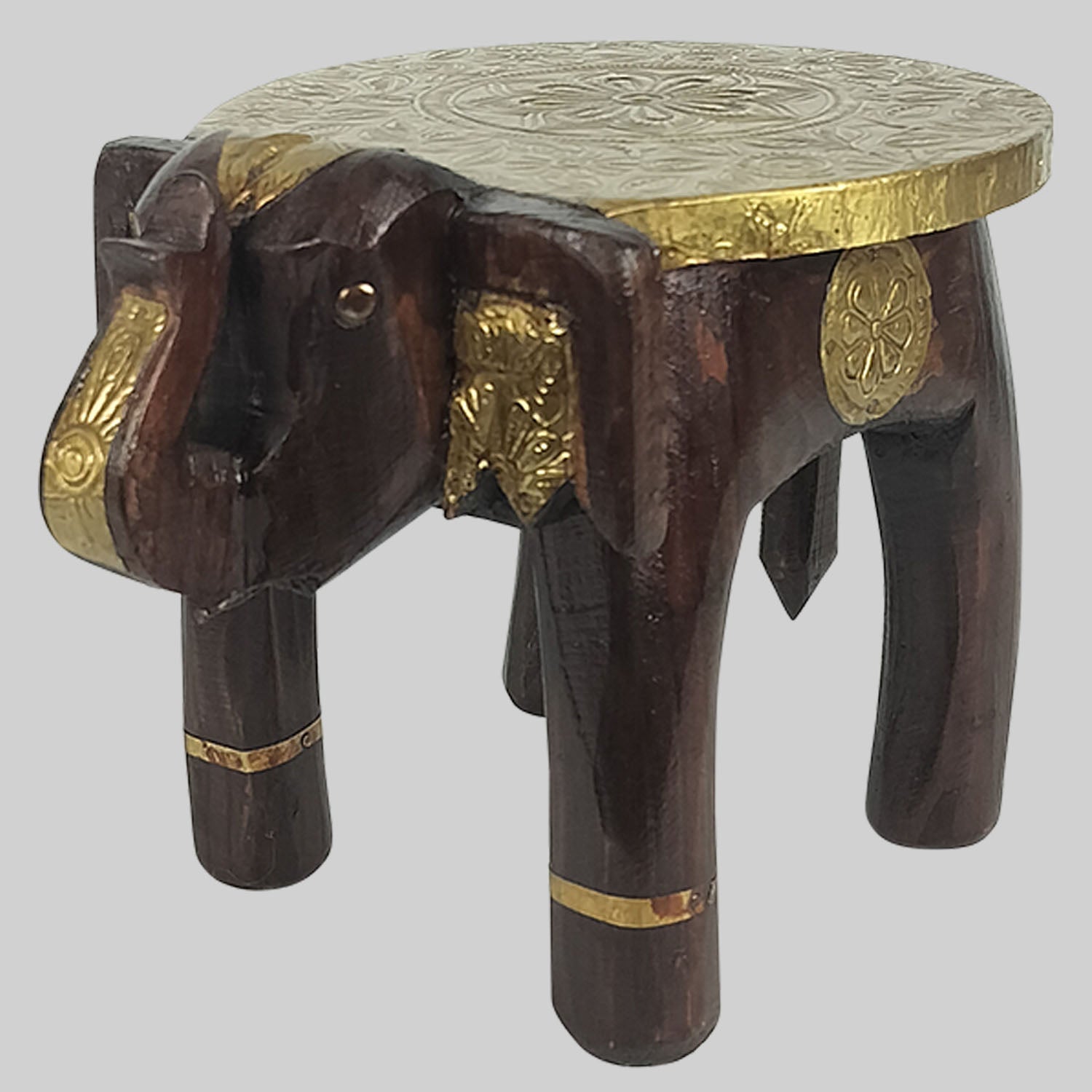 Wood Elephant Stool with Brass Sheet 7 in x 10 in x 6.5 in