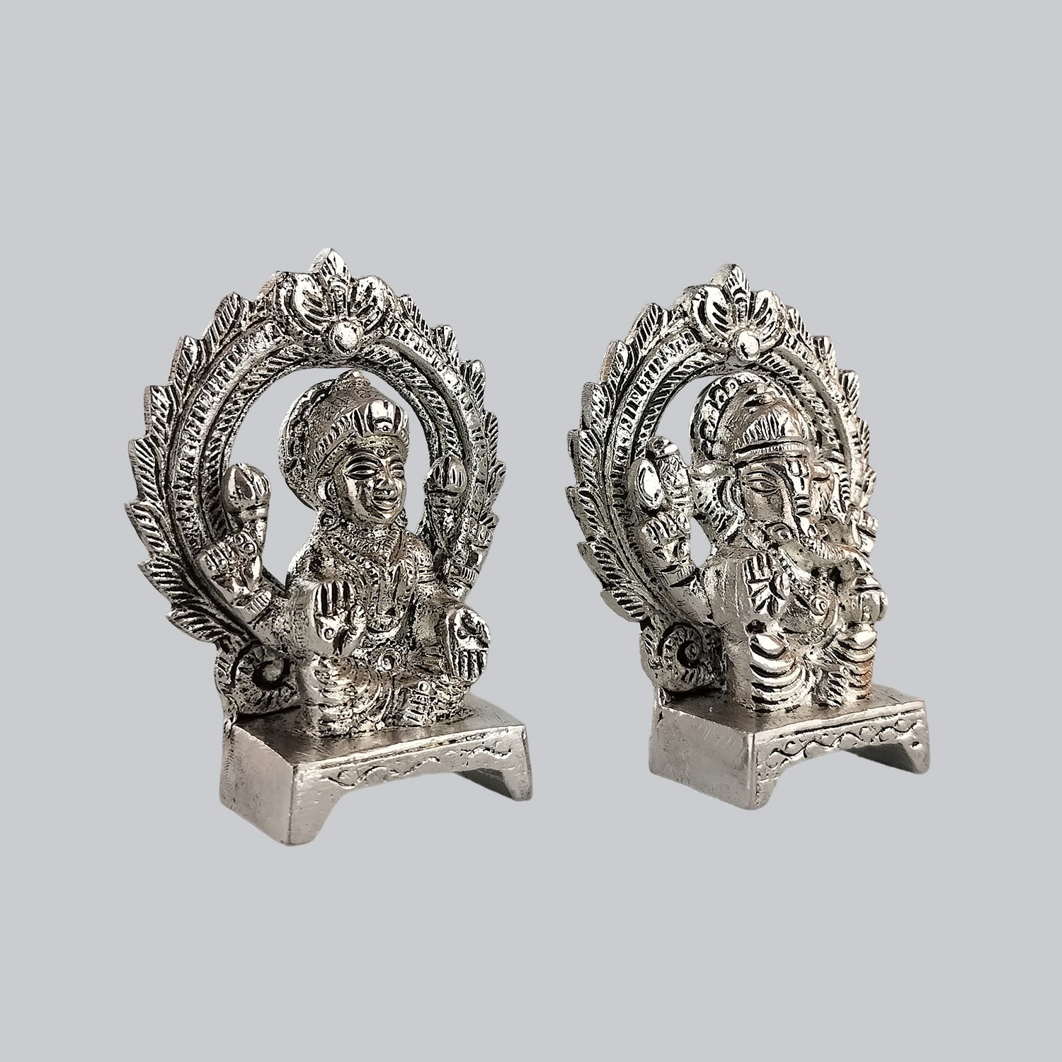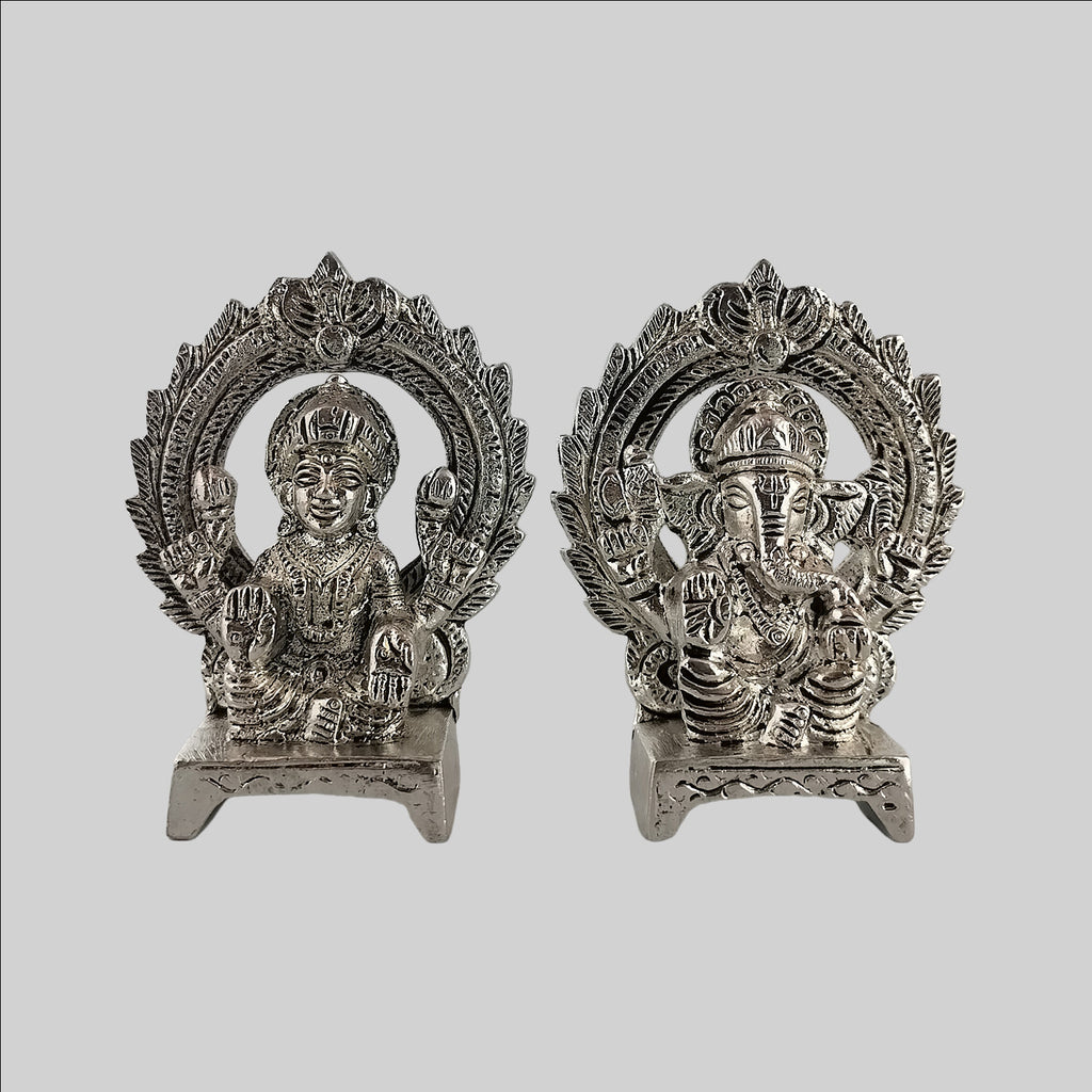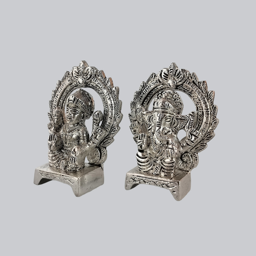 Brass Ganesh & Lakshmi with Silver Plating 3.5 in