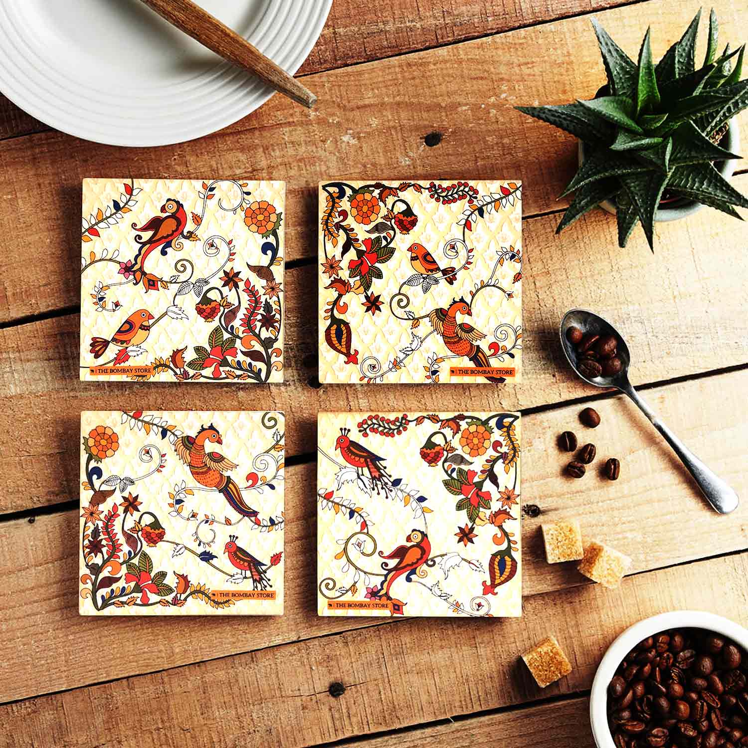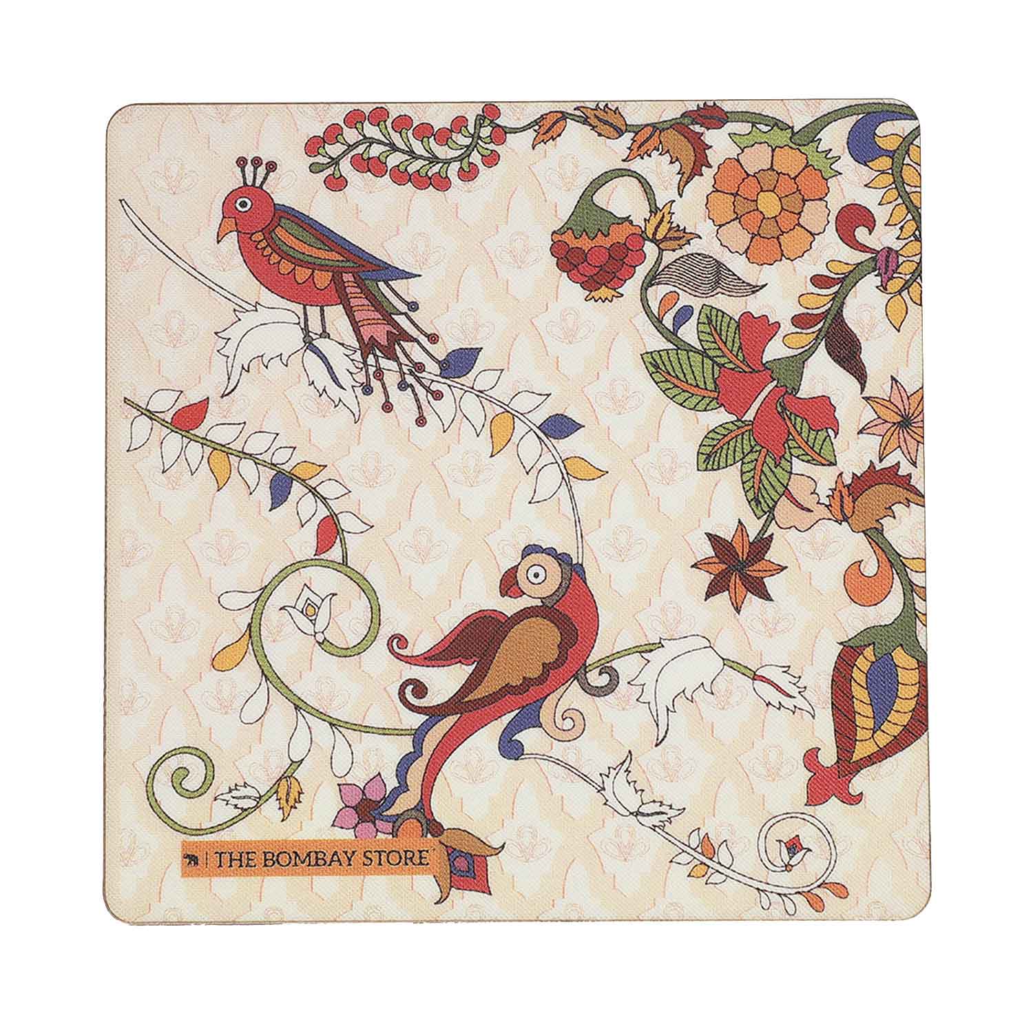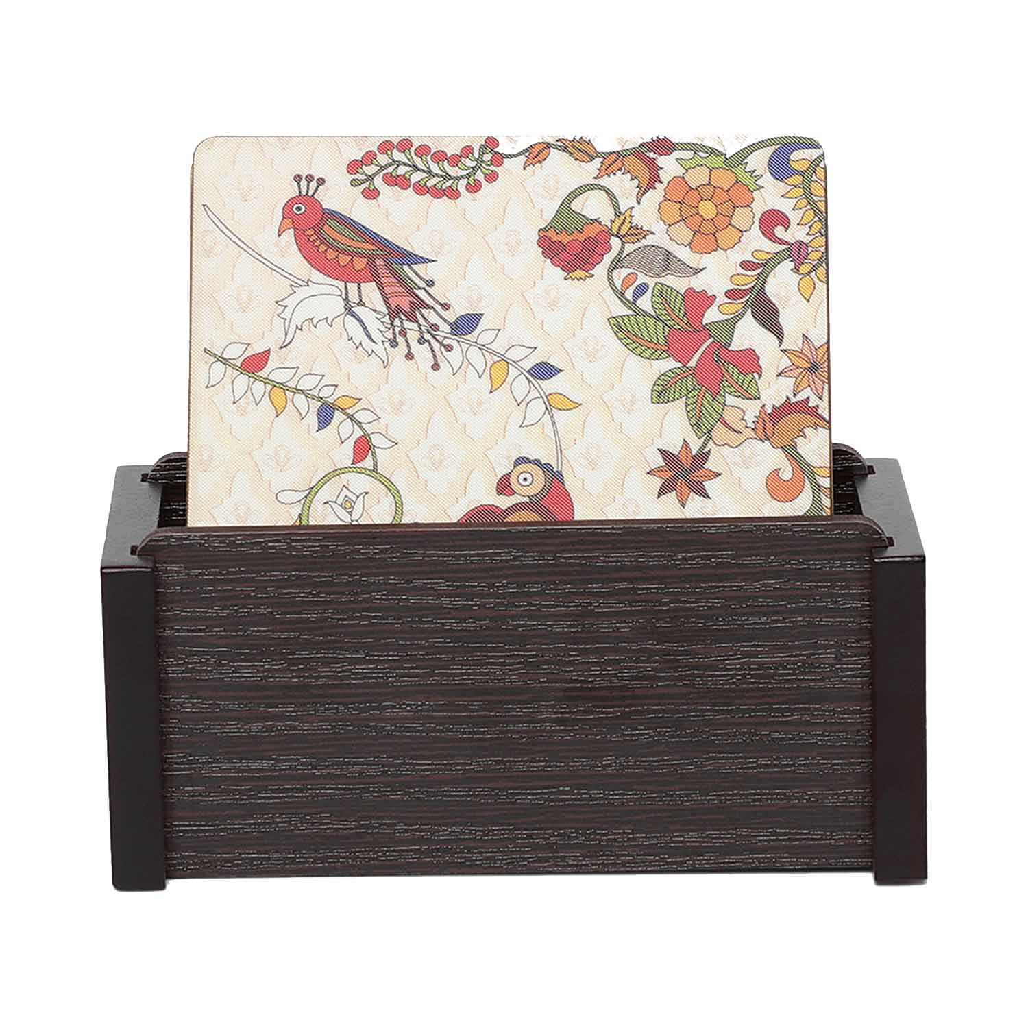 Kalamkari Square Coasters with Holder (Set of 4)