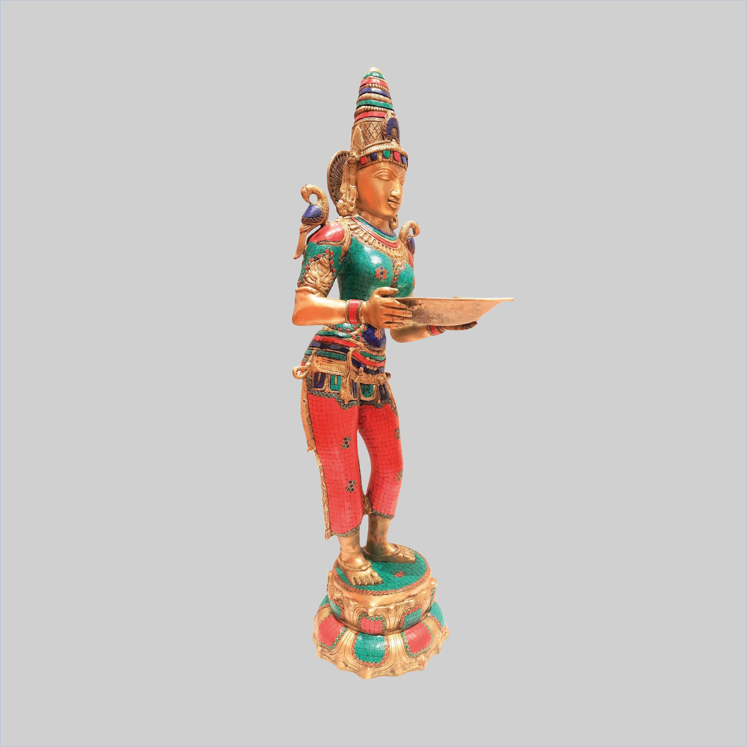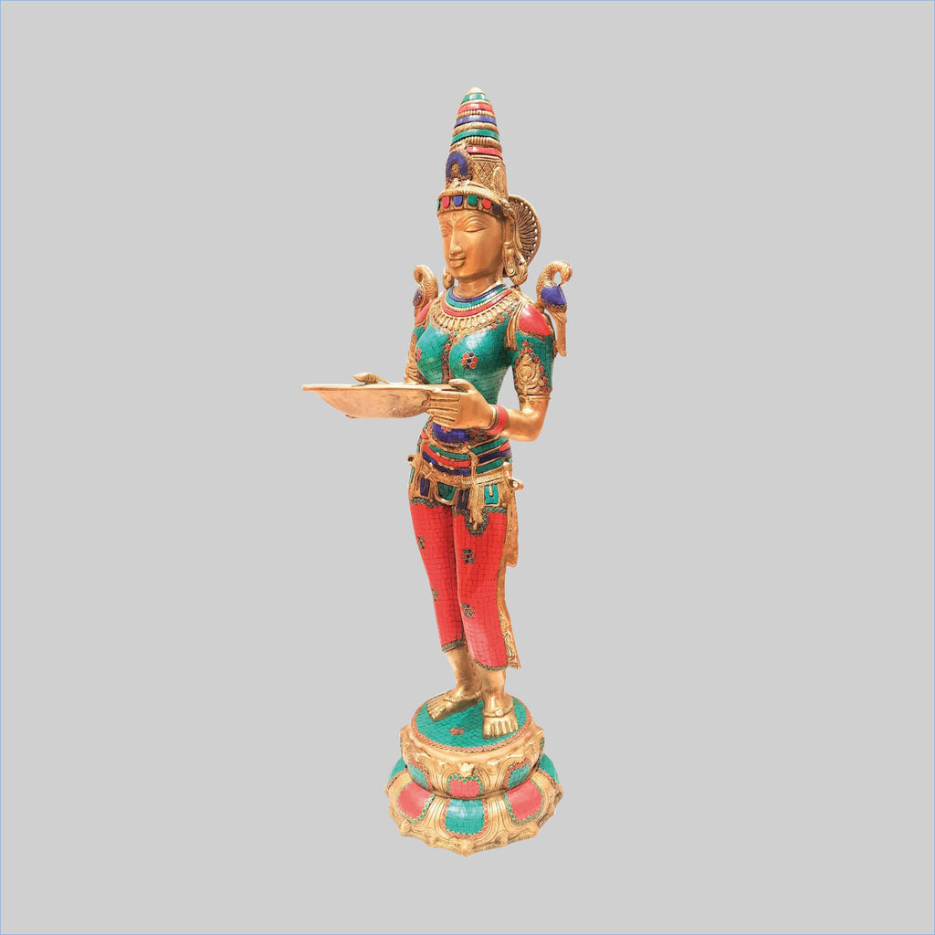 Brass Deep Lady With Stone Work 44 In