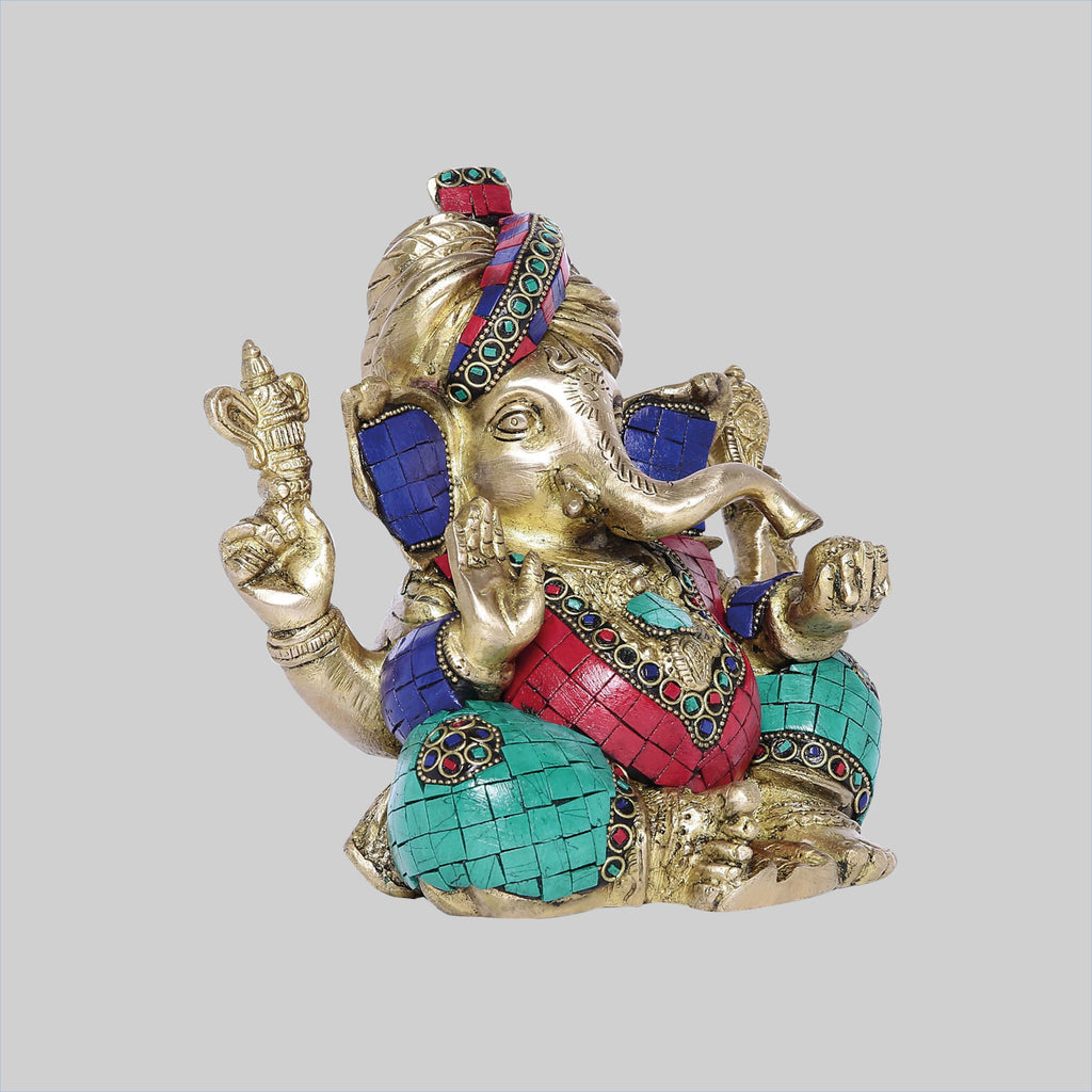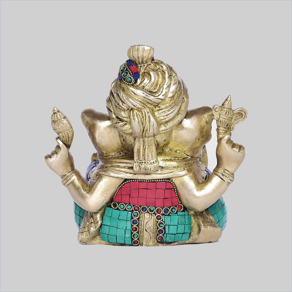 Brass Stonework Ganesha in Turban 8 in