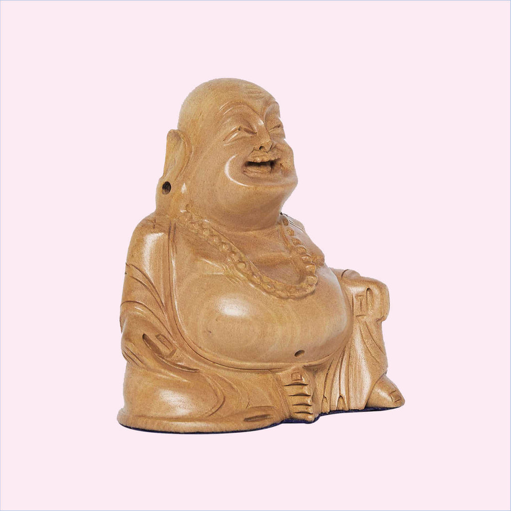 Kadam Wood Handcarved Laughing Buddha 3 in