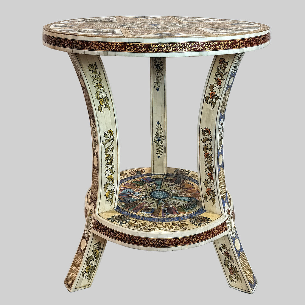Camel Bone Round Table with Procession Painting 22 x 24 in