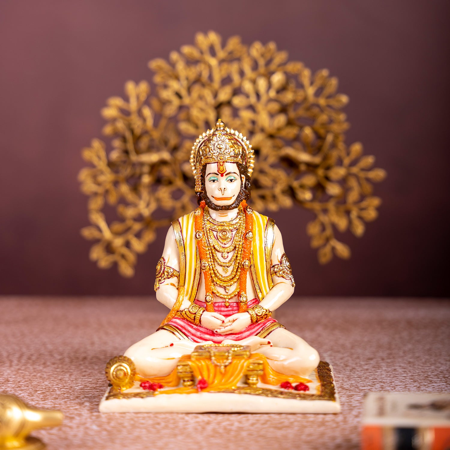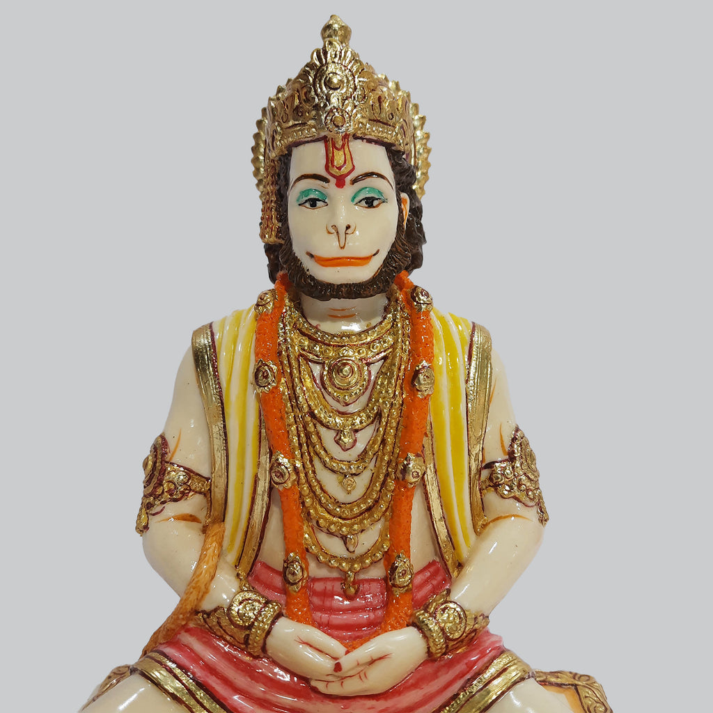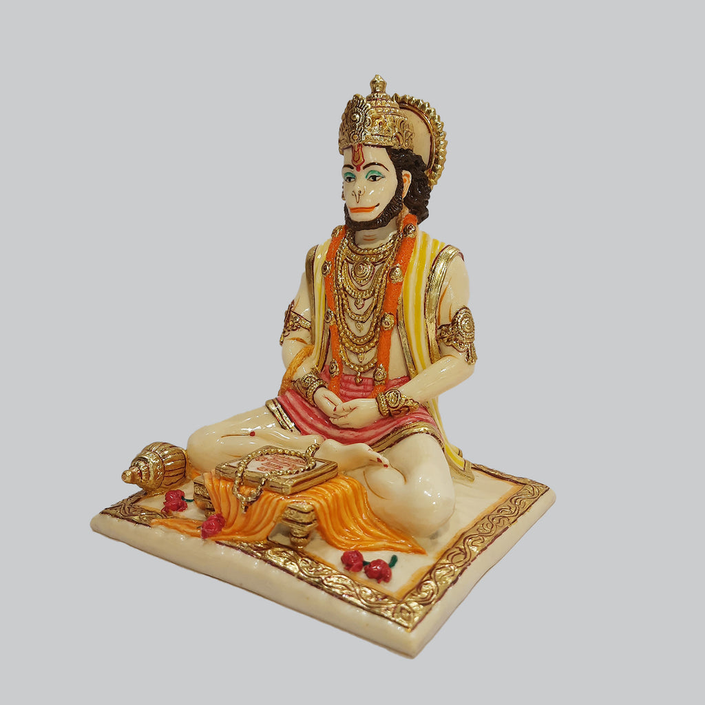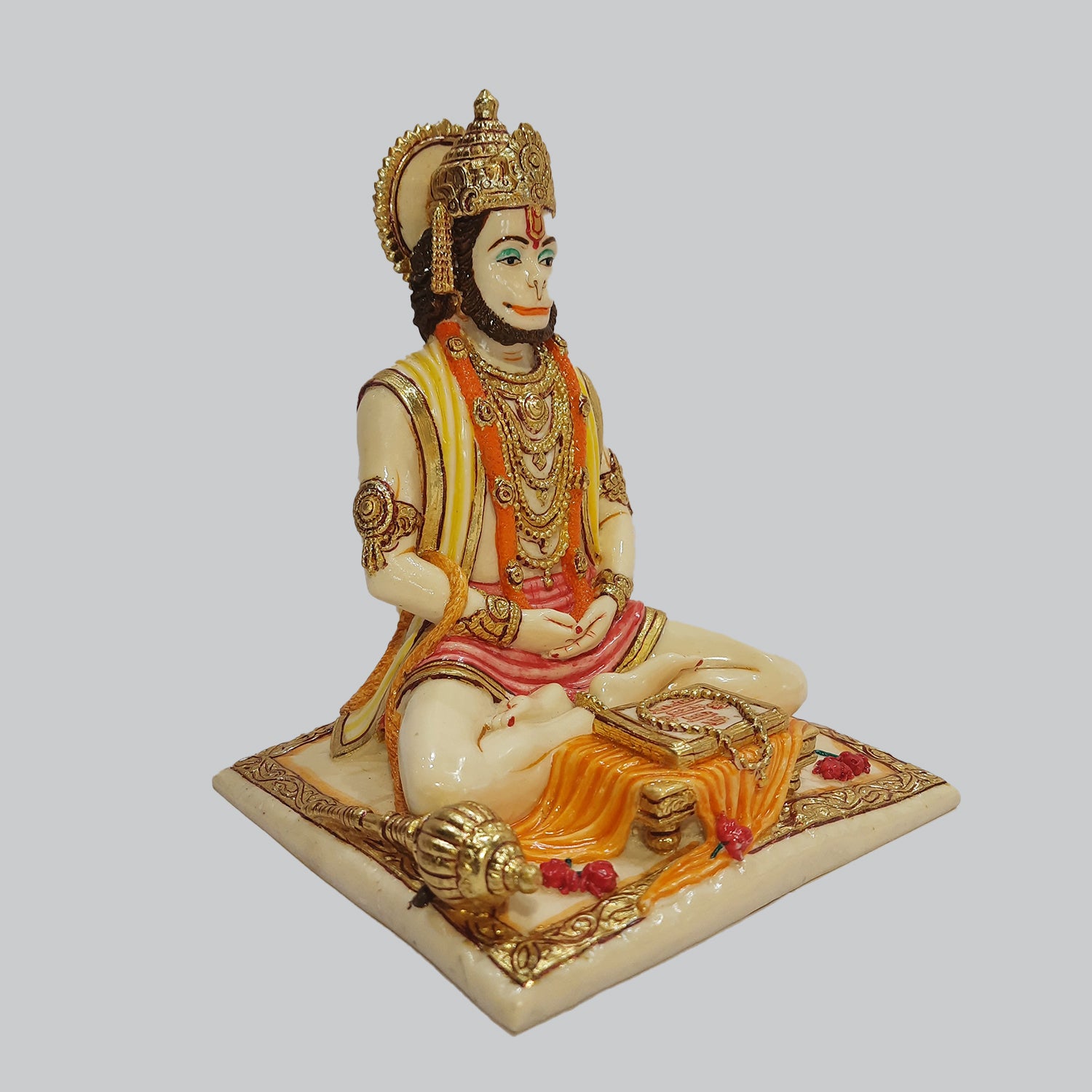 Marble Dust Hanuman Dhyanmudra in Ivory Finish 8 in