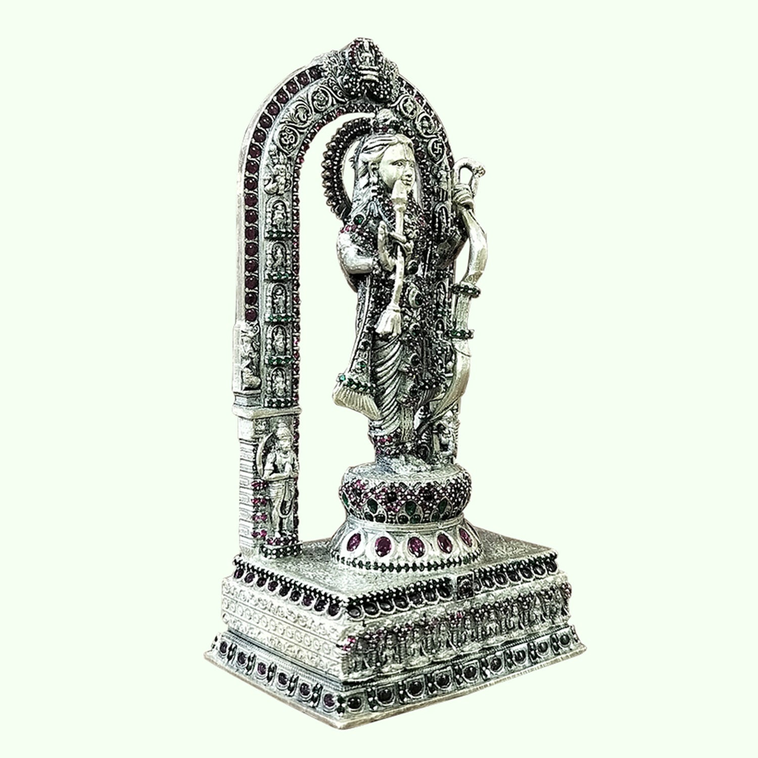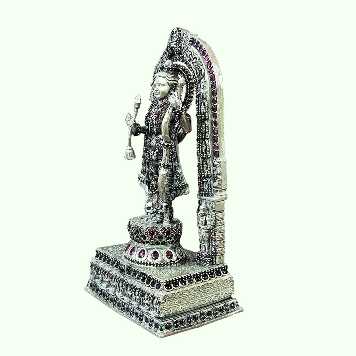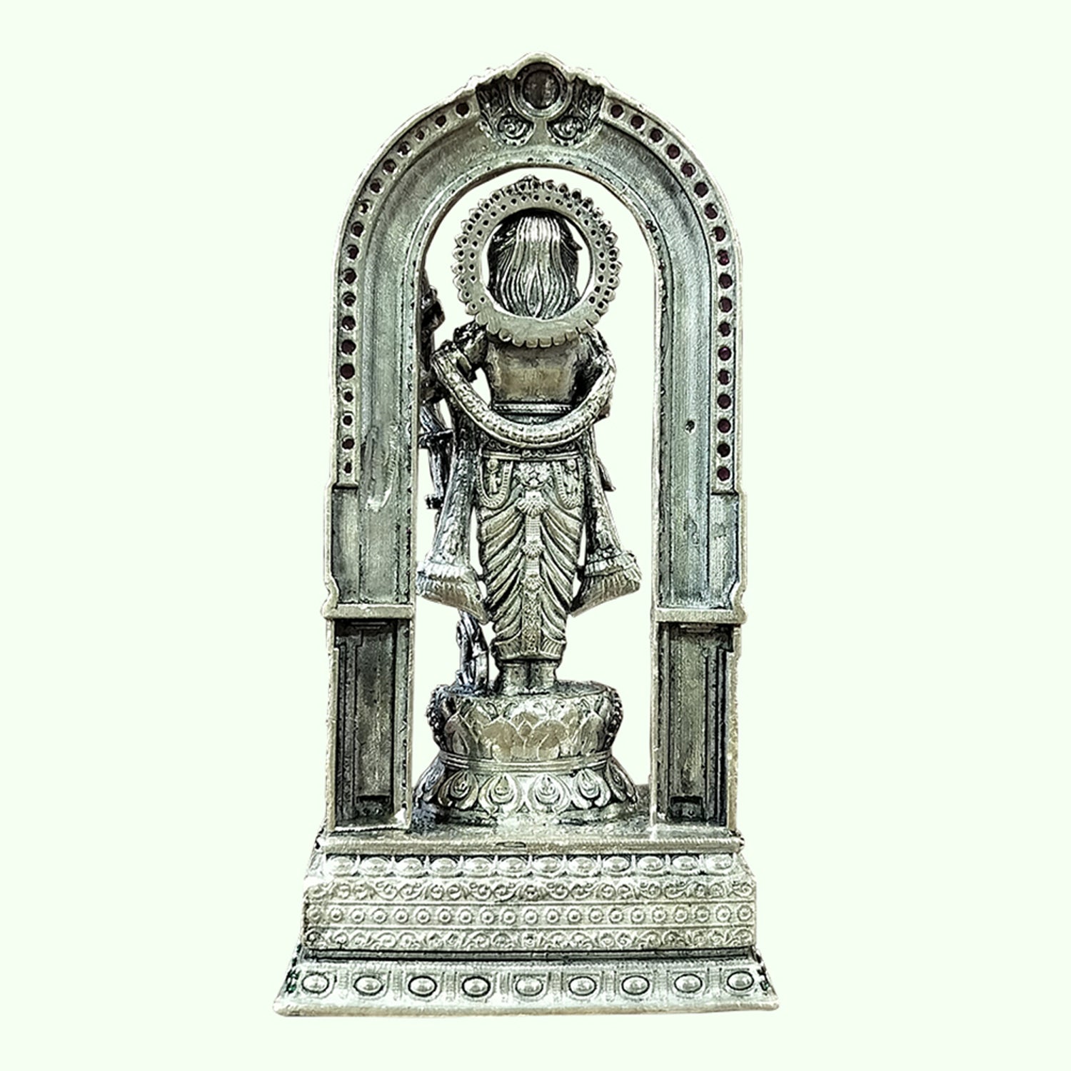 Silver Ram Lalla Standing in Arch Decorated with Stonework 205 gm
