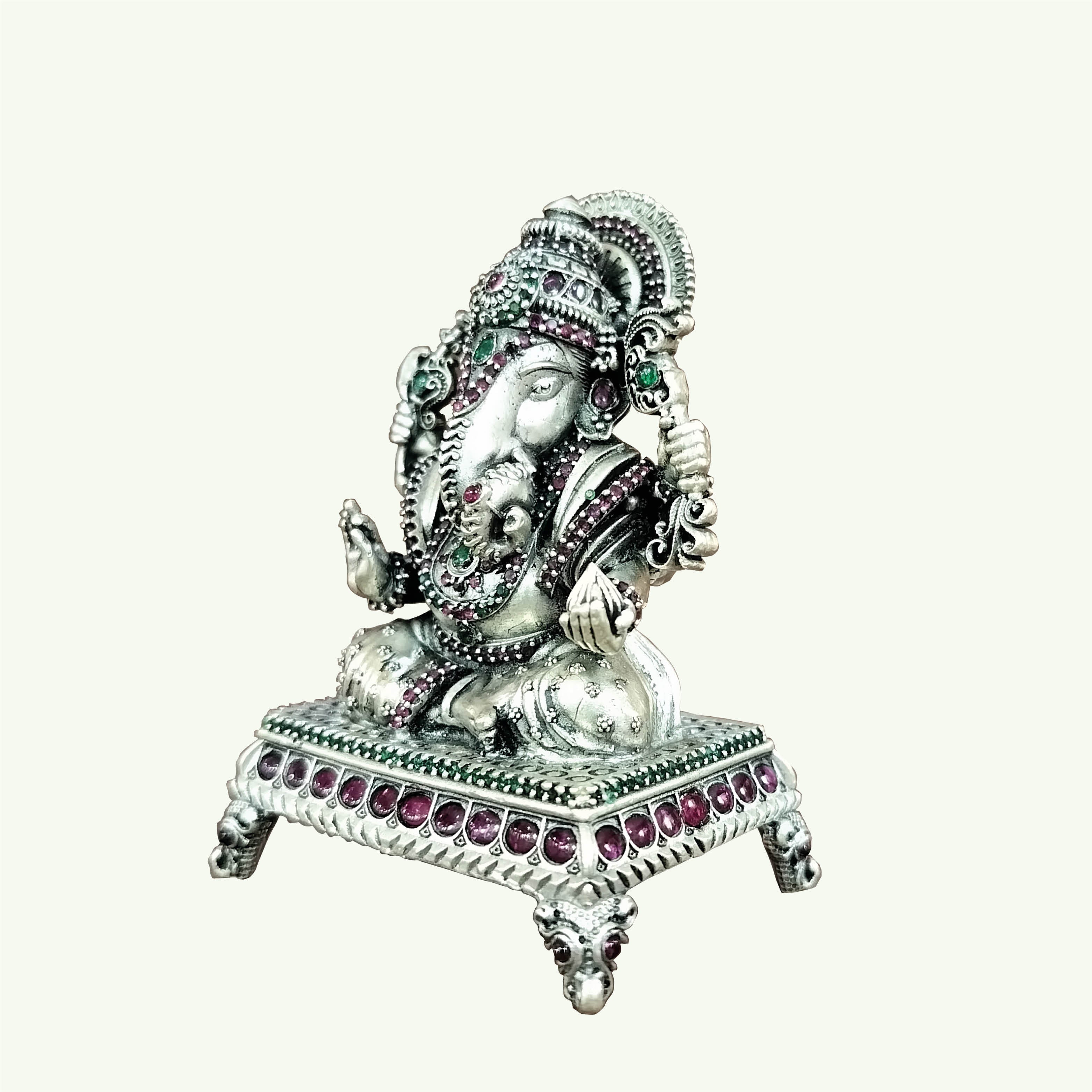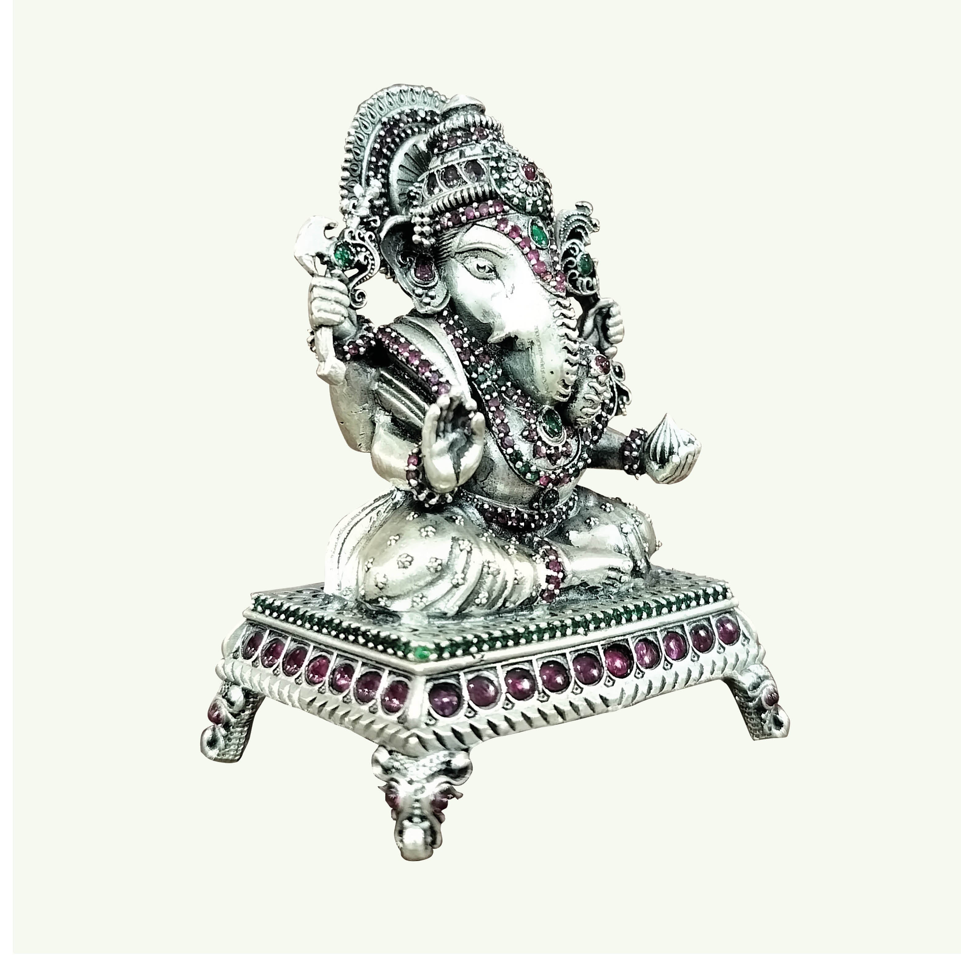 Silver Dagdu Sheth Ganesha Decorated with Stonework 114 gm