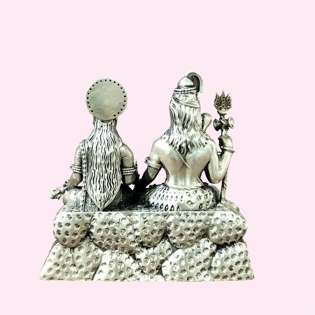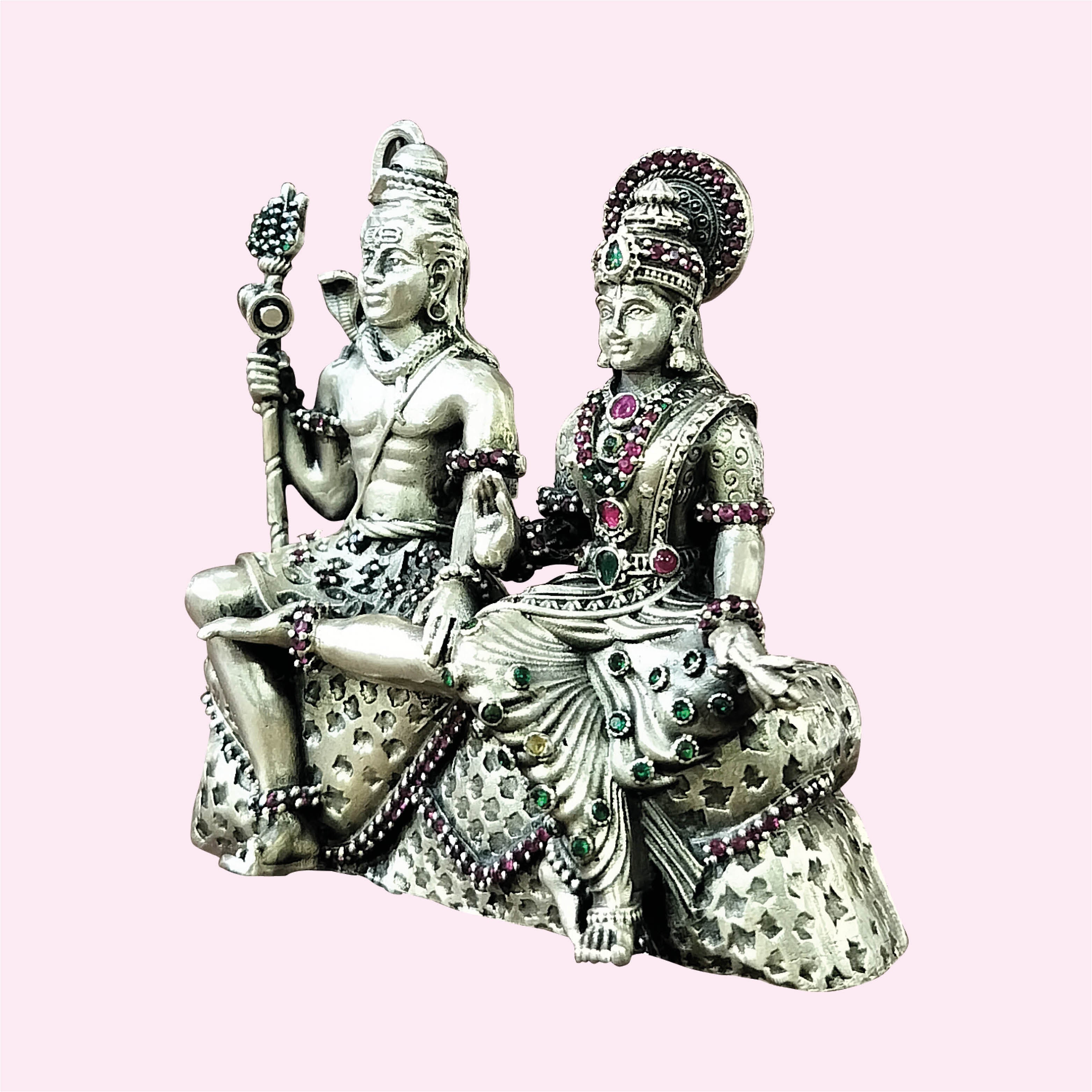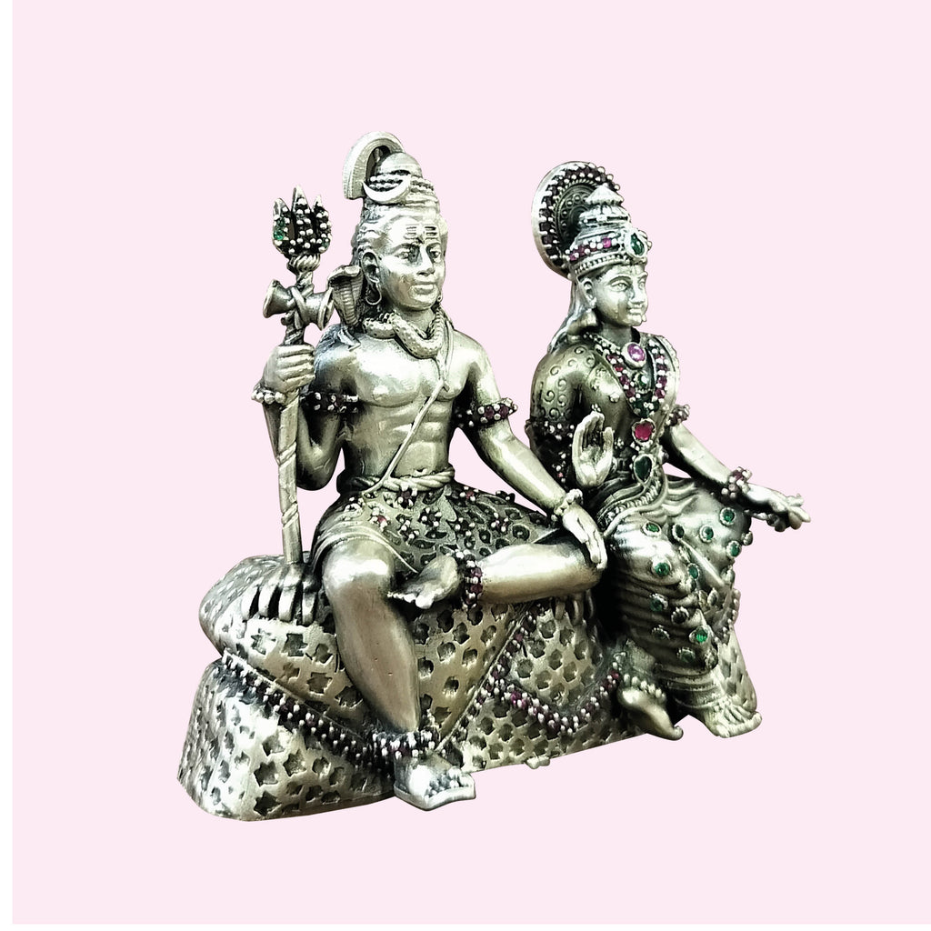 Silver Shiv Parvati Decorated with Stonework 177 gm