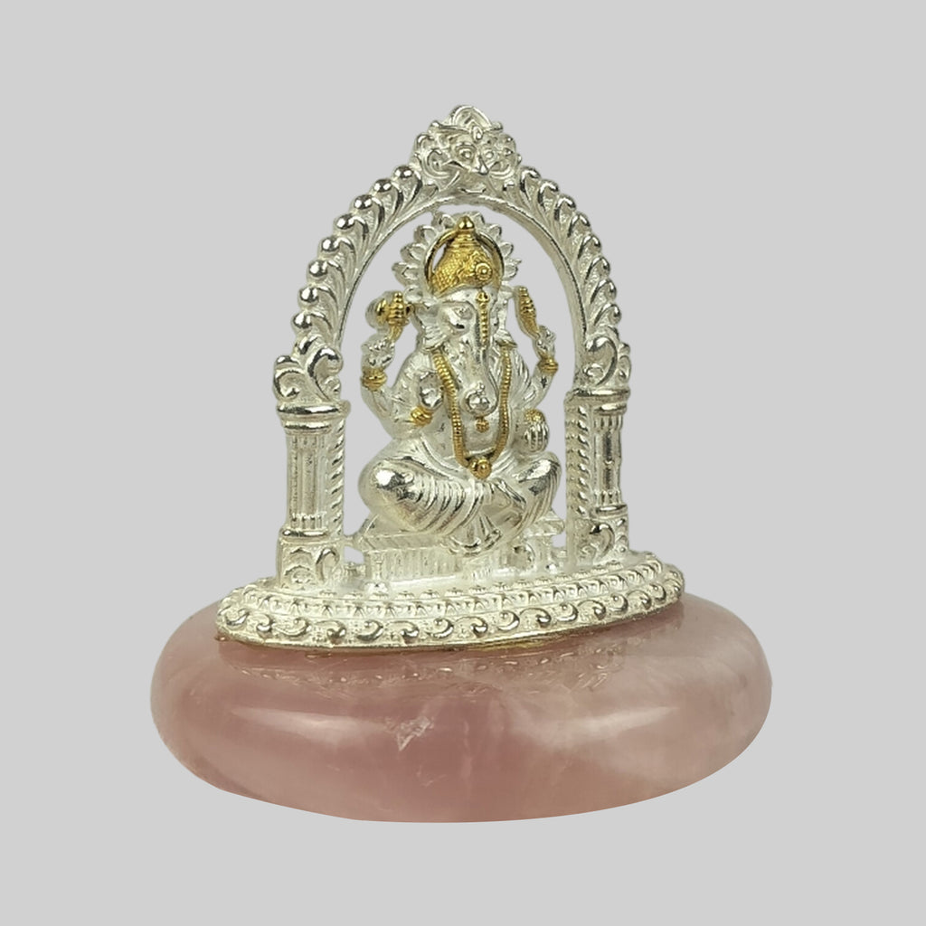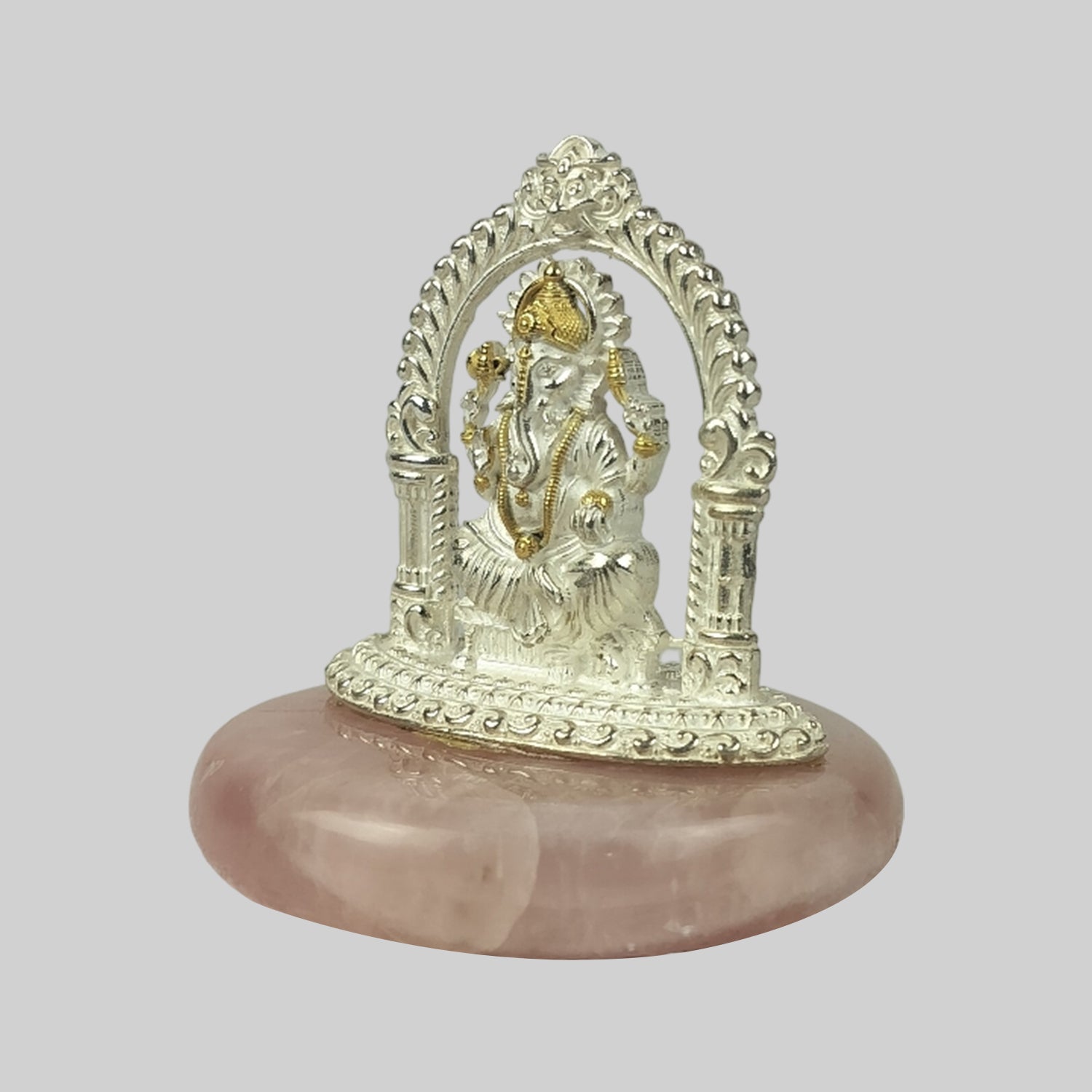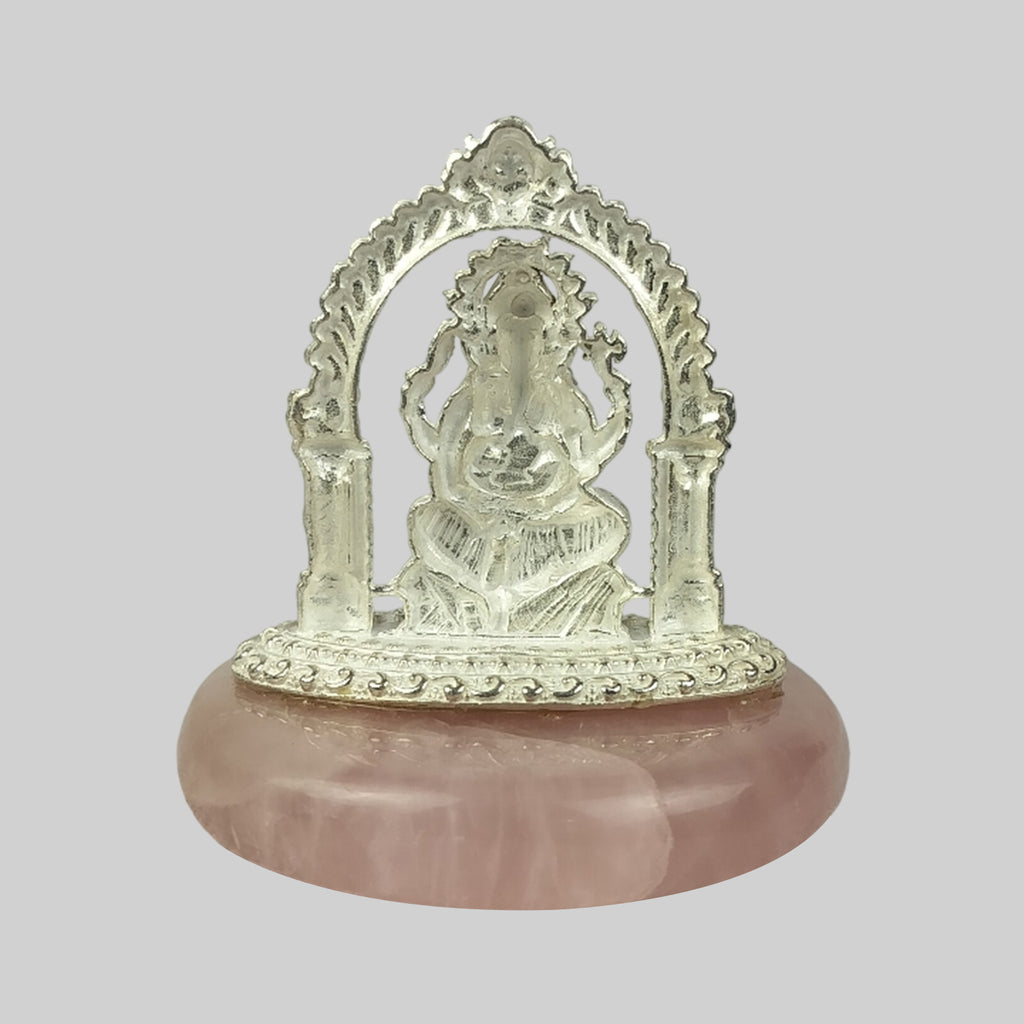 Silver Ganesh Sitting in Arch with Semi Precious Stone 53 gm