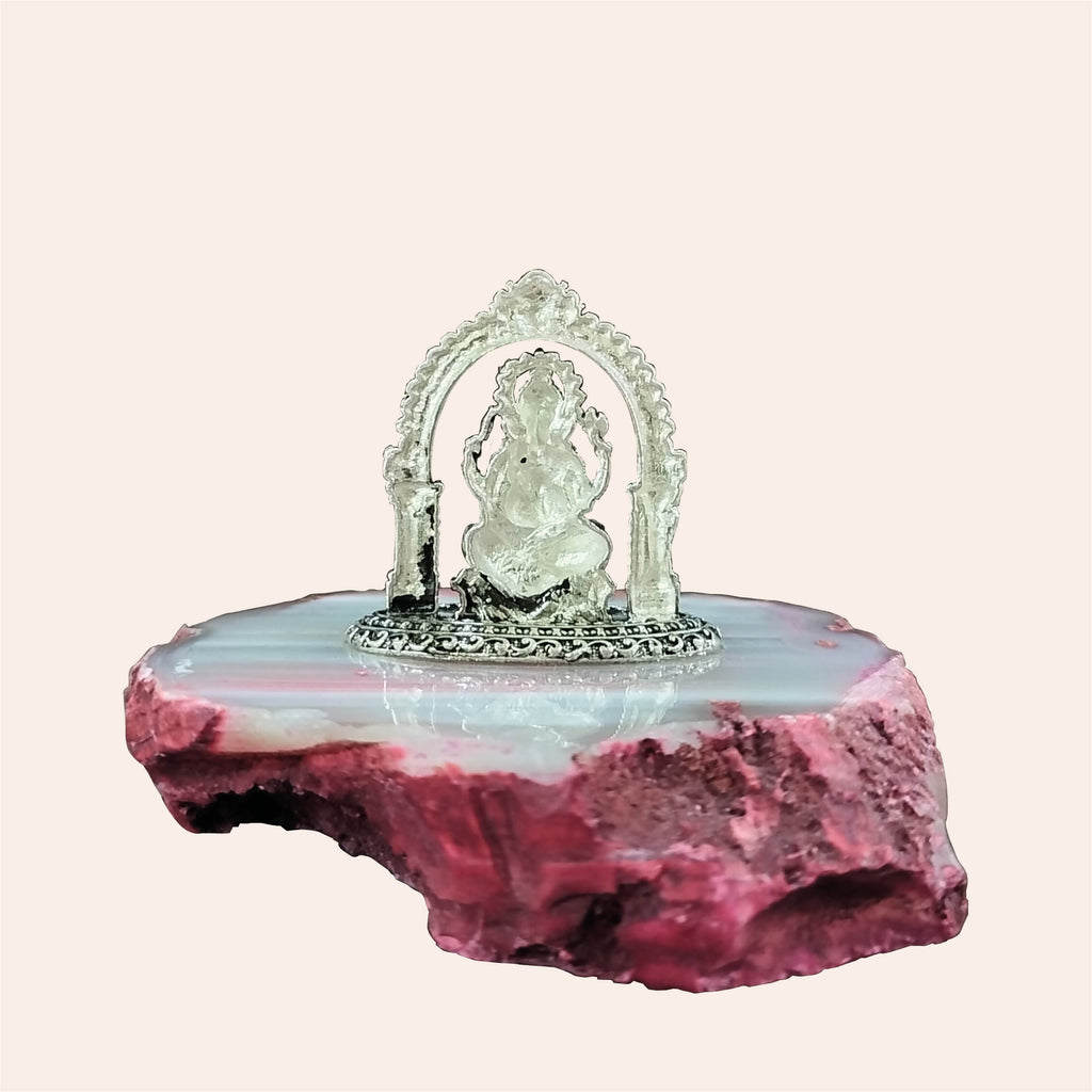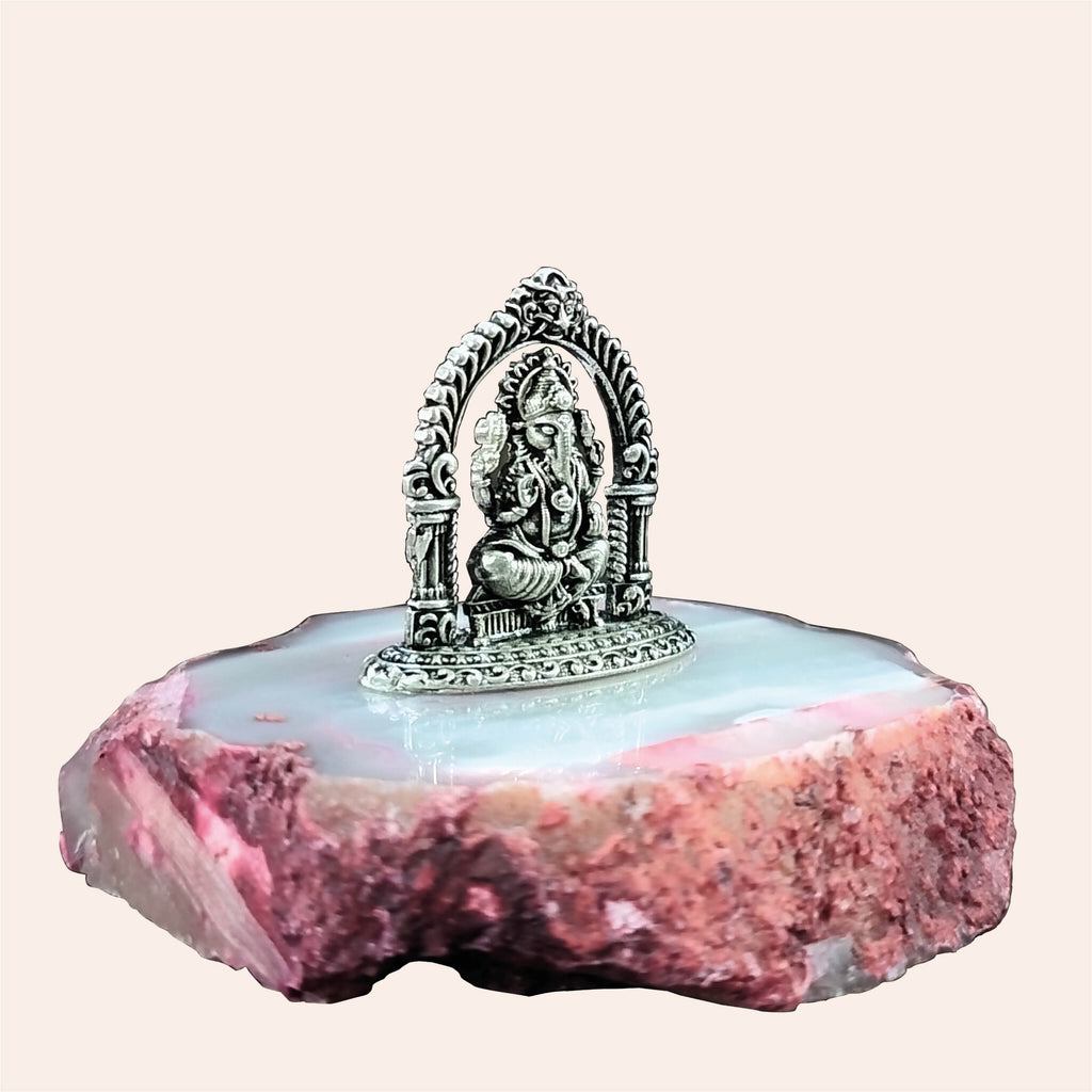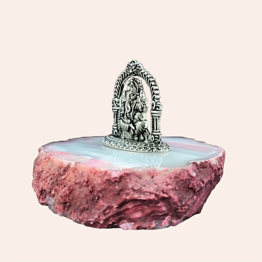 Silver Ganesh Sitting in Arch with Semi Precious Stone 22 gm