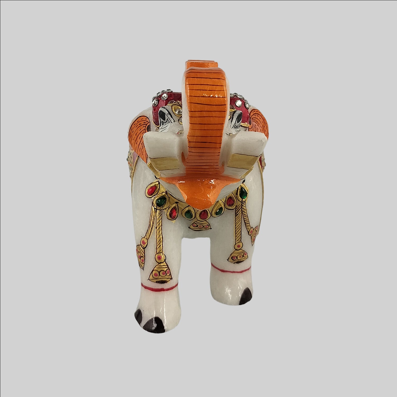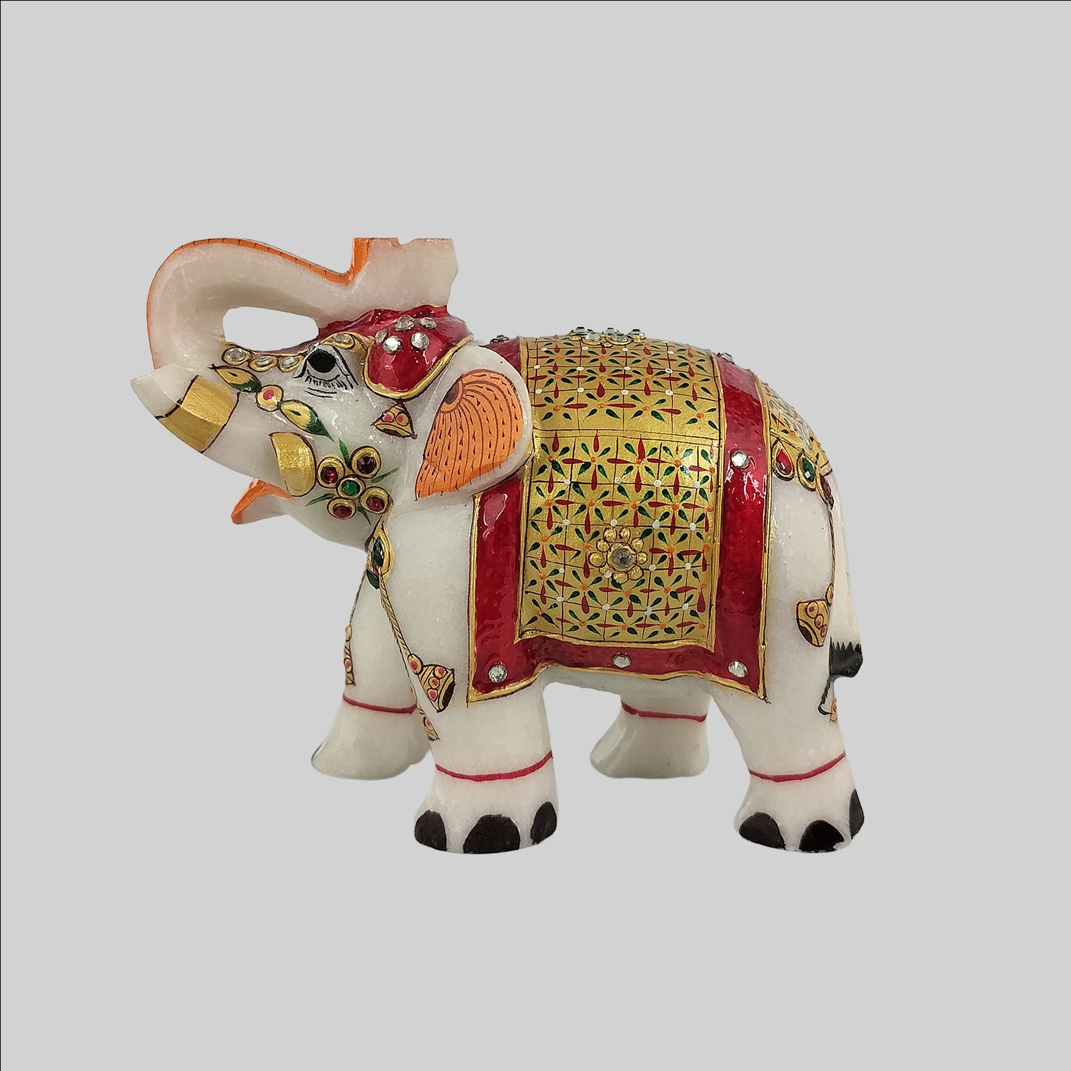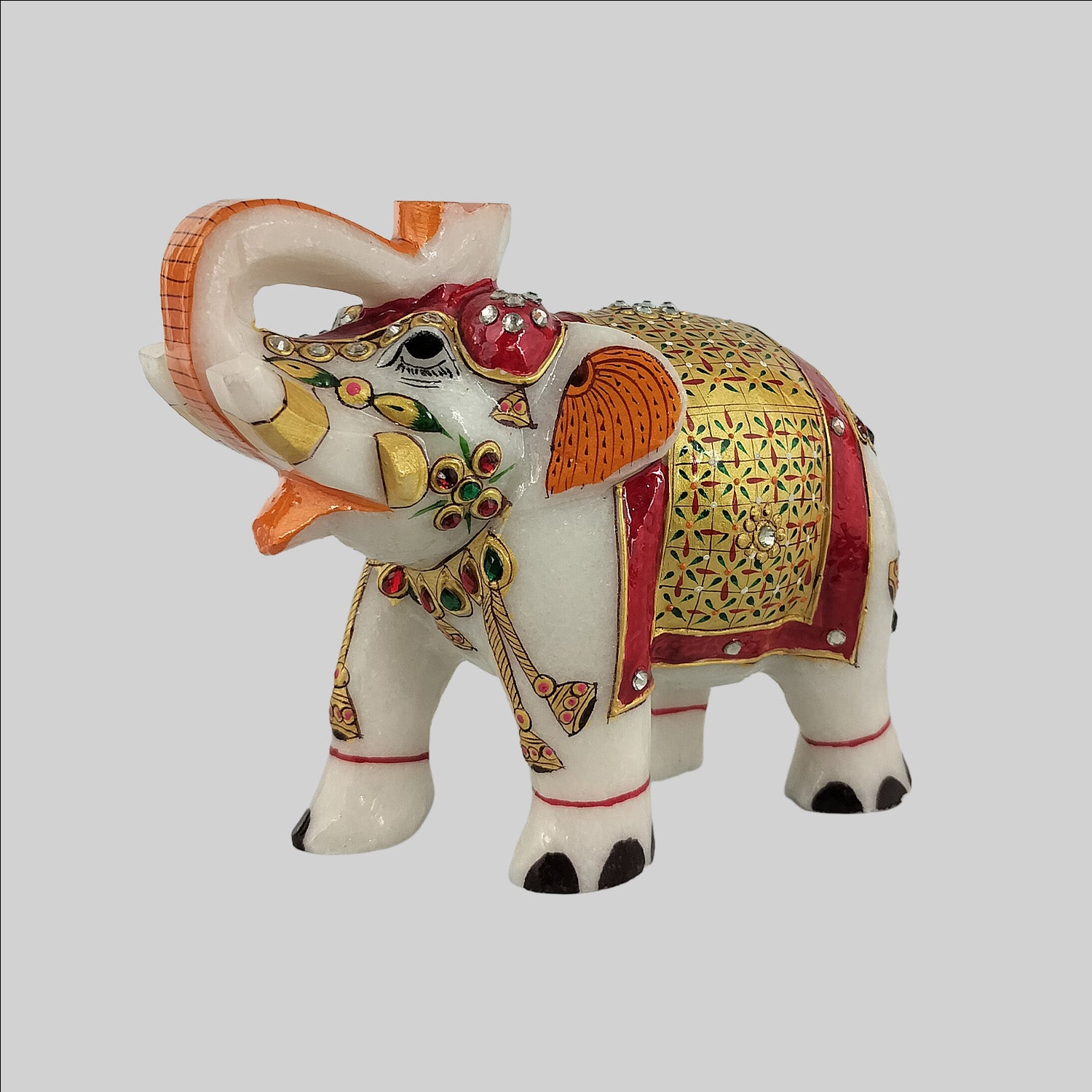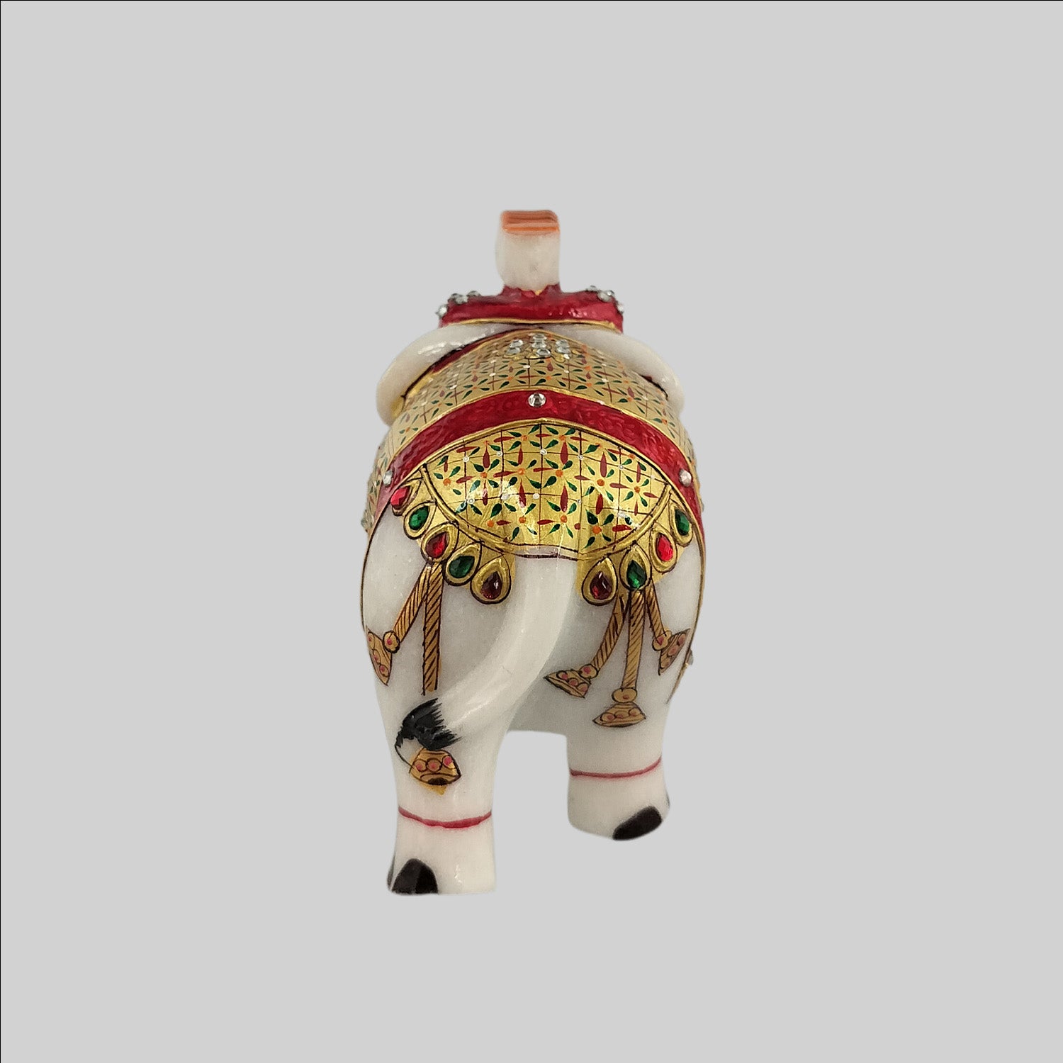 Marble Elephant with Hand Painted Gold Colour Work 5 in