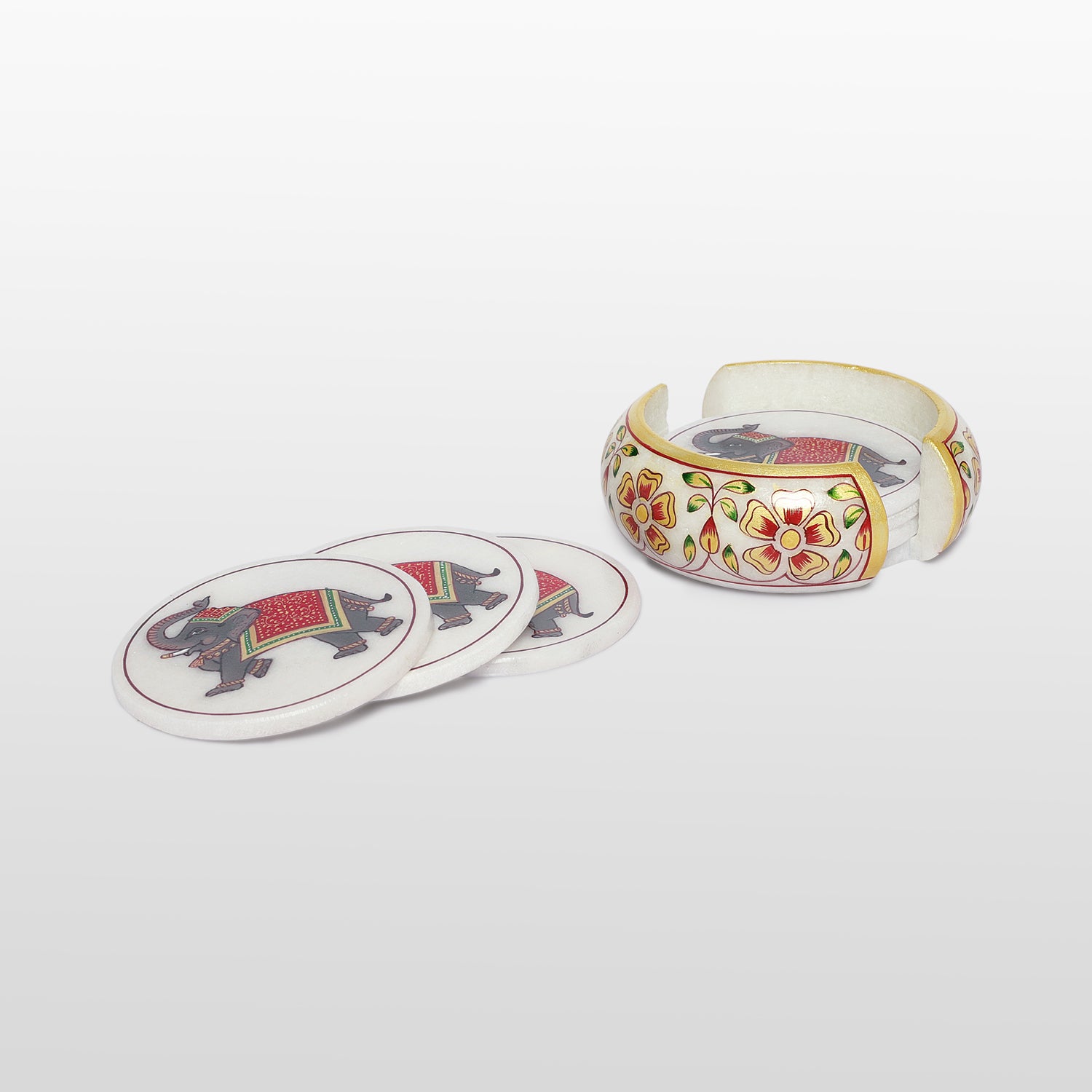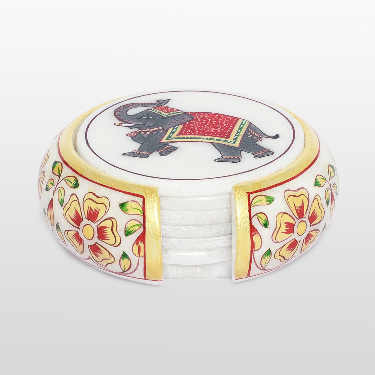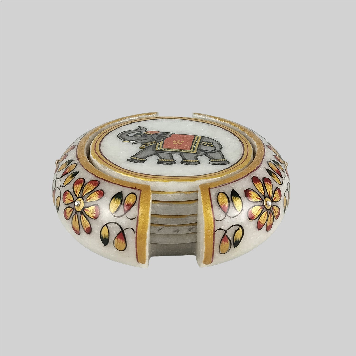 Marble Hand Painted Elephant Tea Coaster (S/6)