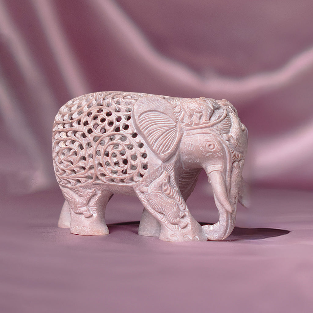Soft Stone Elephanta with Undercut Work Head Turned 6 in
