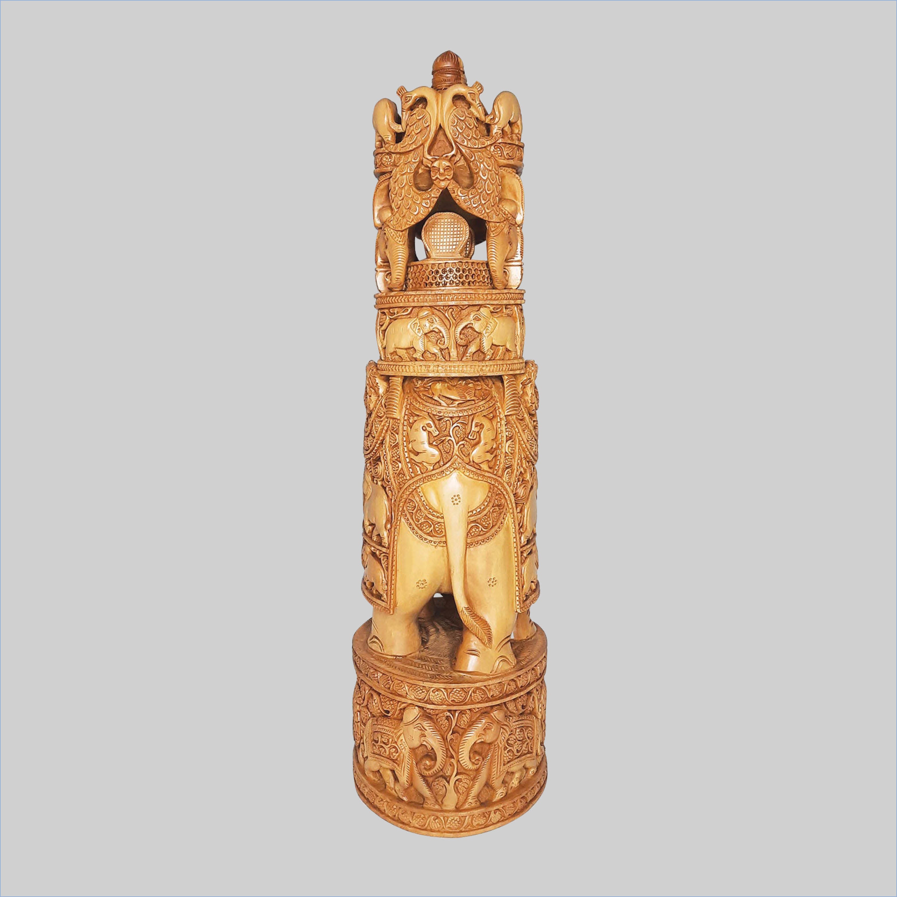 Exquisitely handcrafted from pure sandalwood, this artefact exudes natural fragrance and timeless charm. The intricate motifs and graceful contours draw inspiration from the architectural beauty of South Indian temples, making it a true work of art. With its fine detailing and soothing aroma, it adds a touch of tradition, serenity, and elegance to any space — perfect for home décor or gifting.