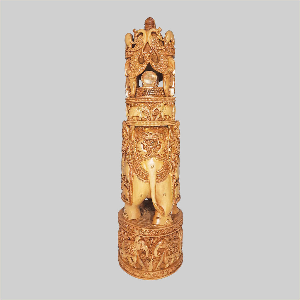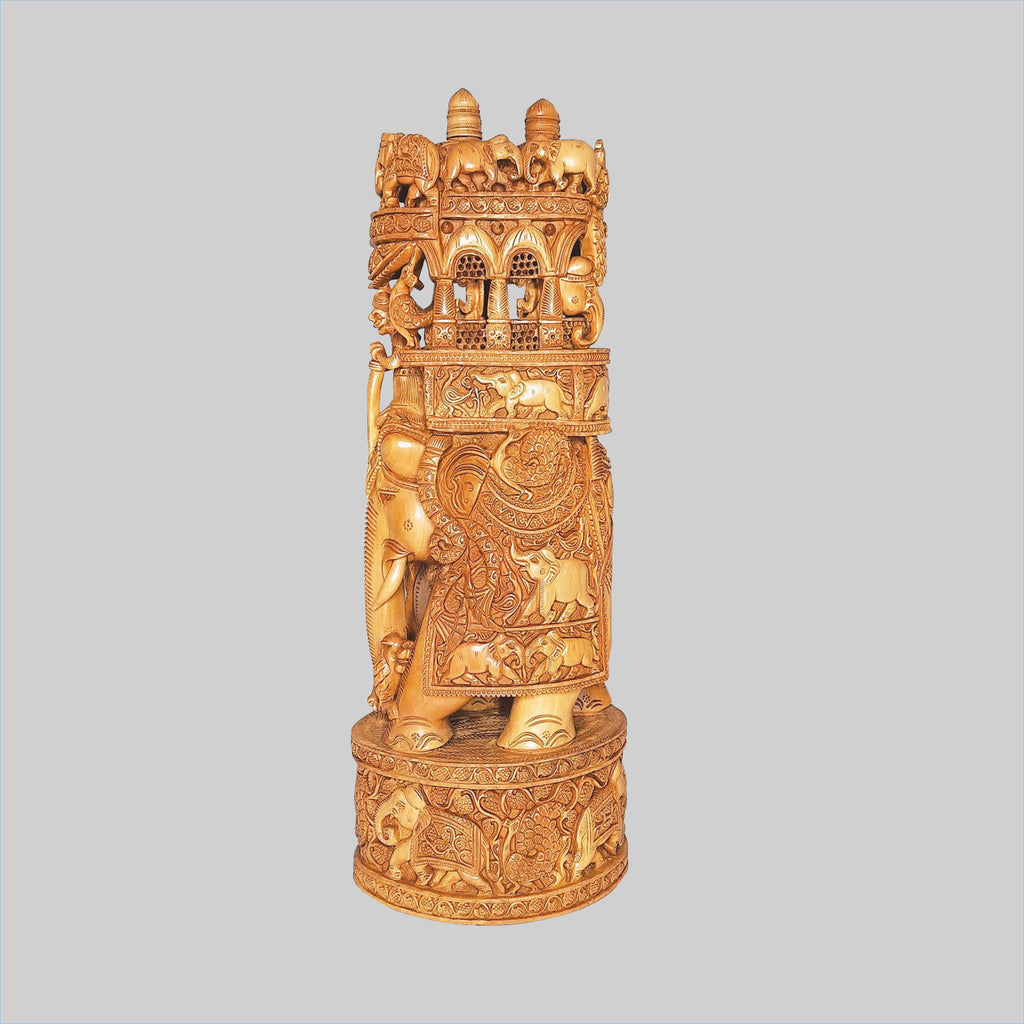 Sandalwood Ambari Elephant with Shikar Carving 20 in