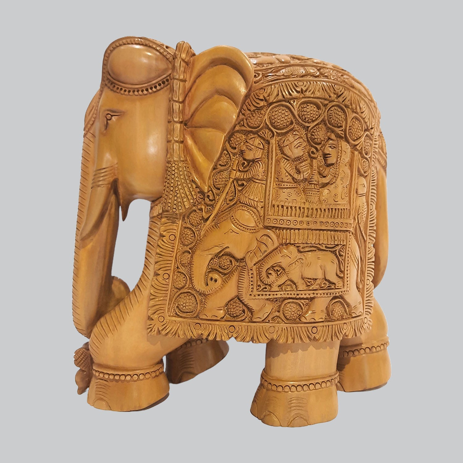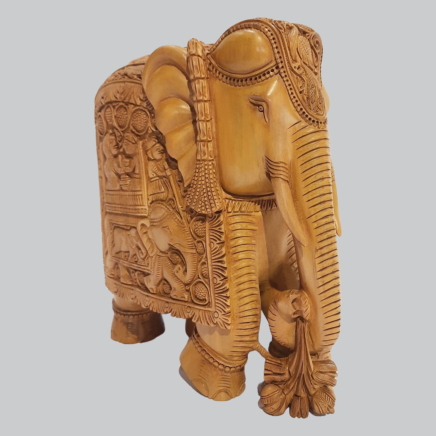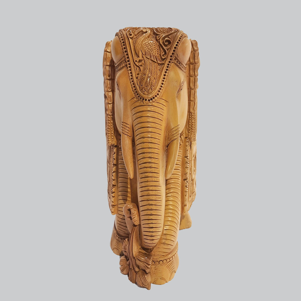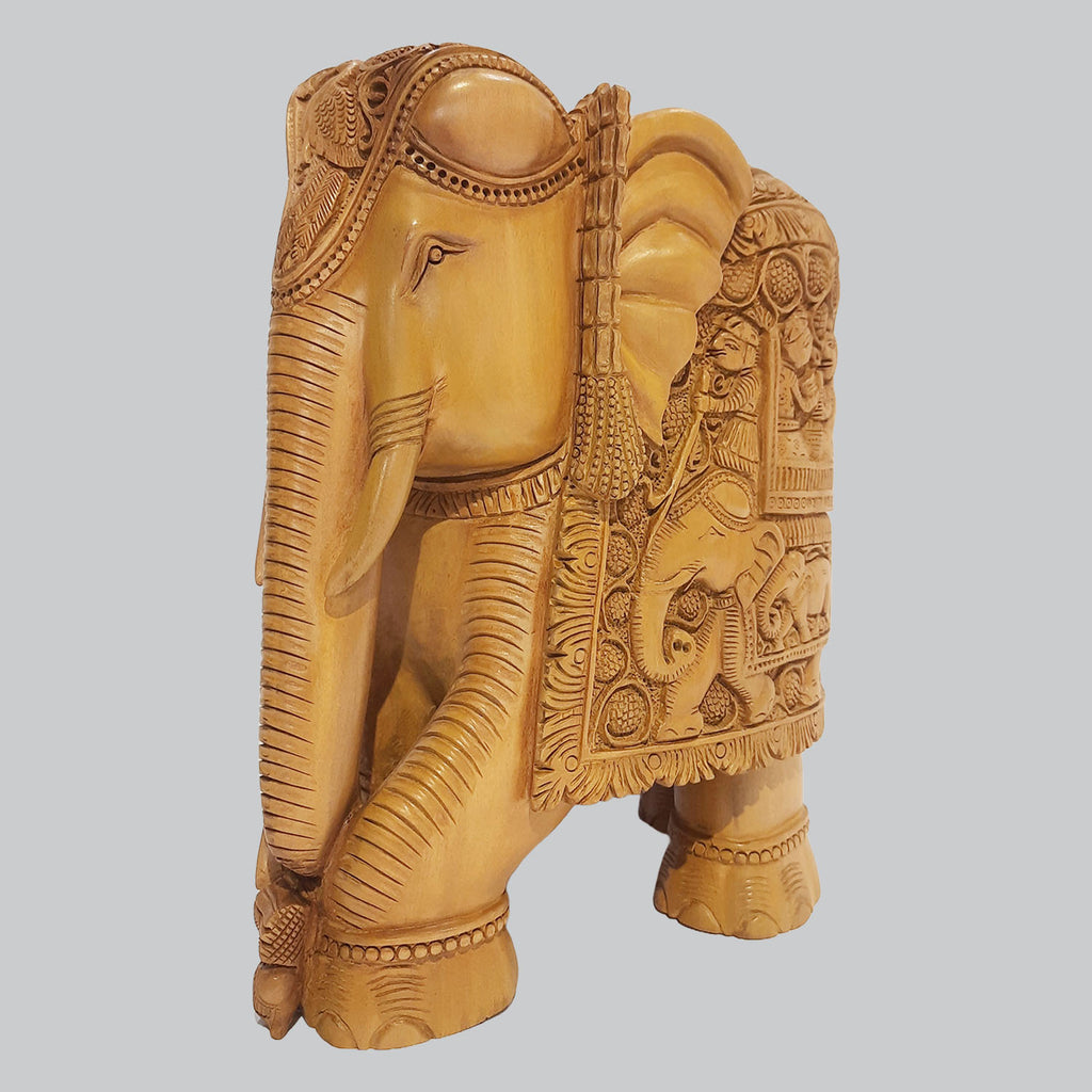 Sandalwood Elephant with Elephant Carving 8 in