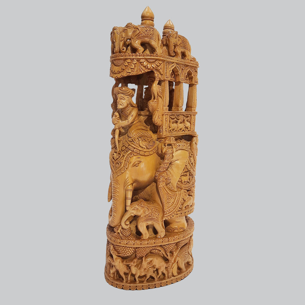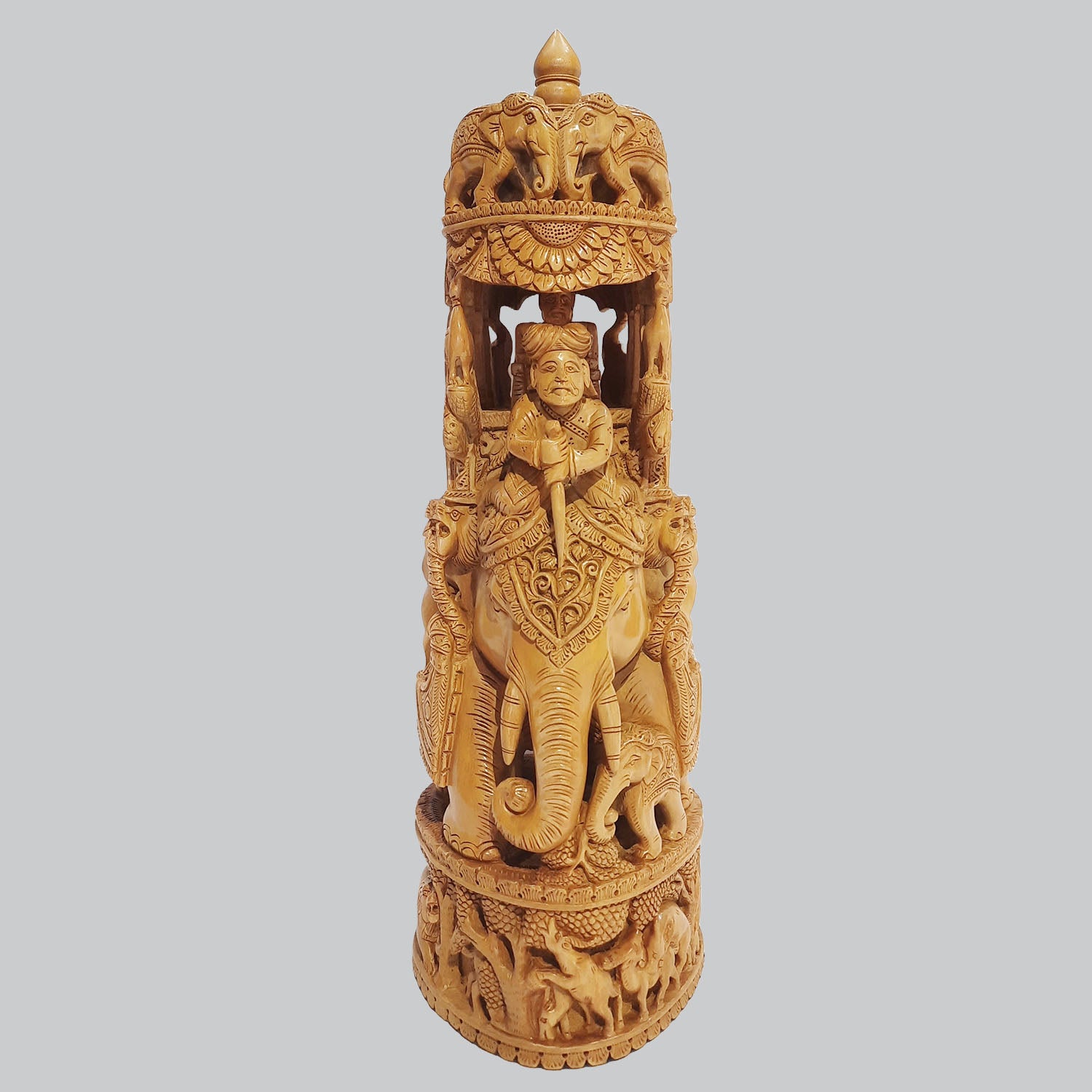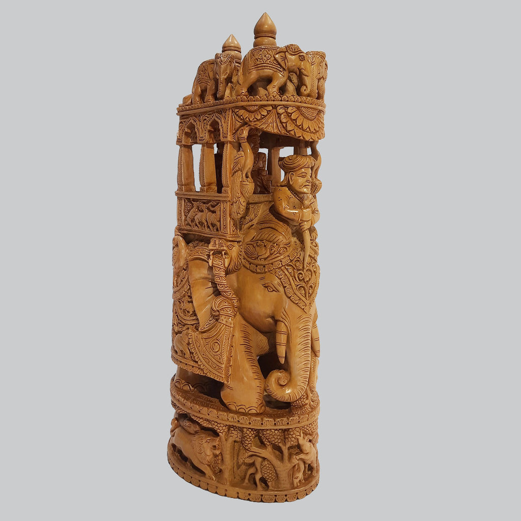 Sandalwood Round Ambari Elephant with Shikar Carving 15 in