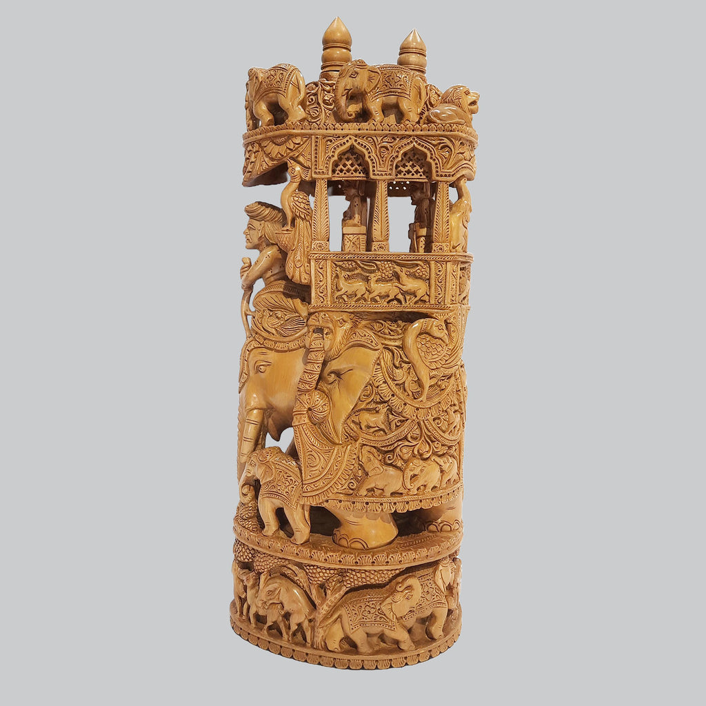 Exquisitely handcrafted from pure sandalwood, this artefact exudes natural fragrance and timeless charm. The intricate motifs and graceful contours draw inspiration from the architectural beauty of South Indian temples, making it a true work of art. With its fine detailing and soothing aroma, it adds a touch of tradition, serenity, and elegance to any space — perfect for home décor or gifting.