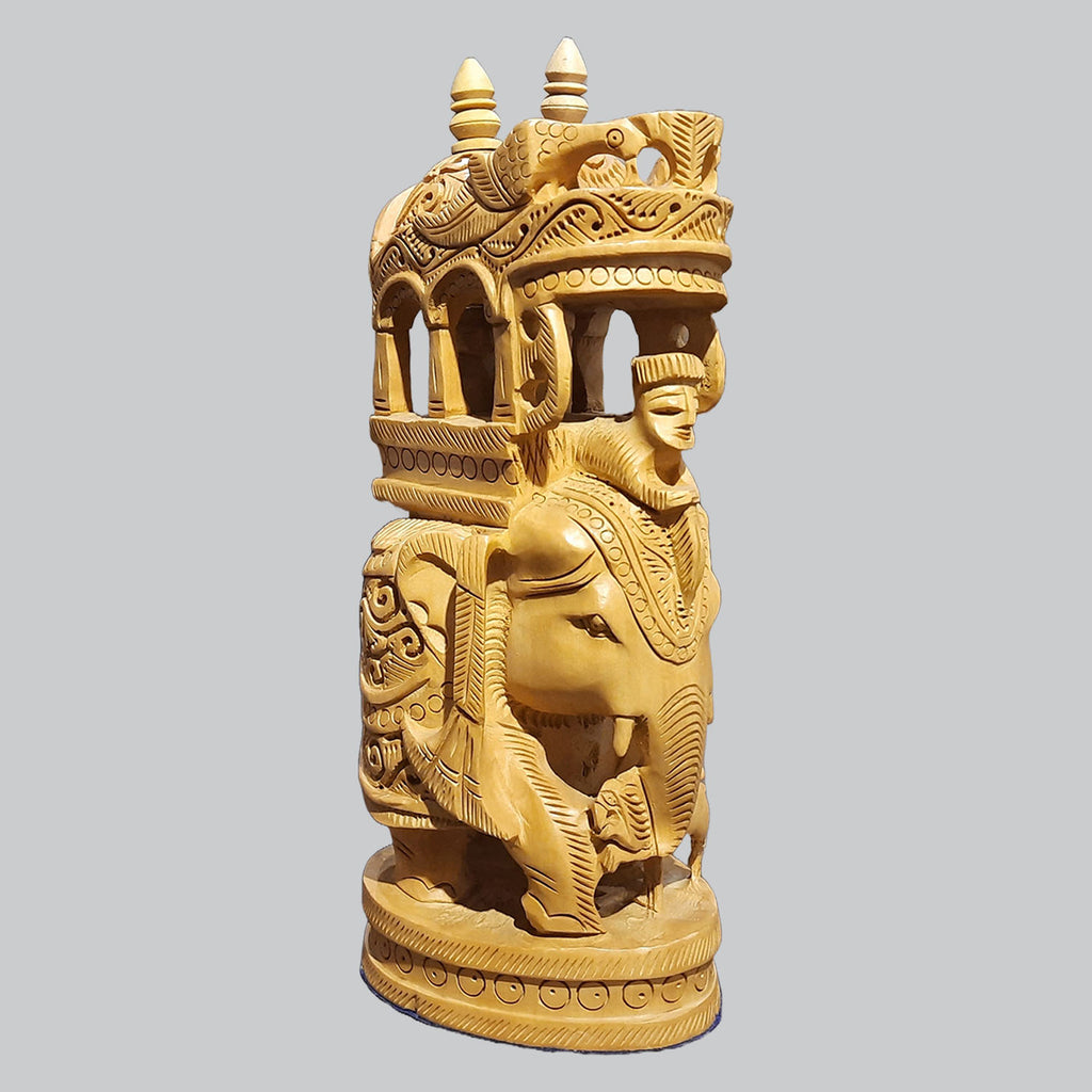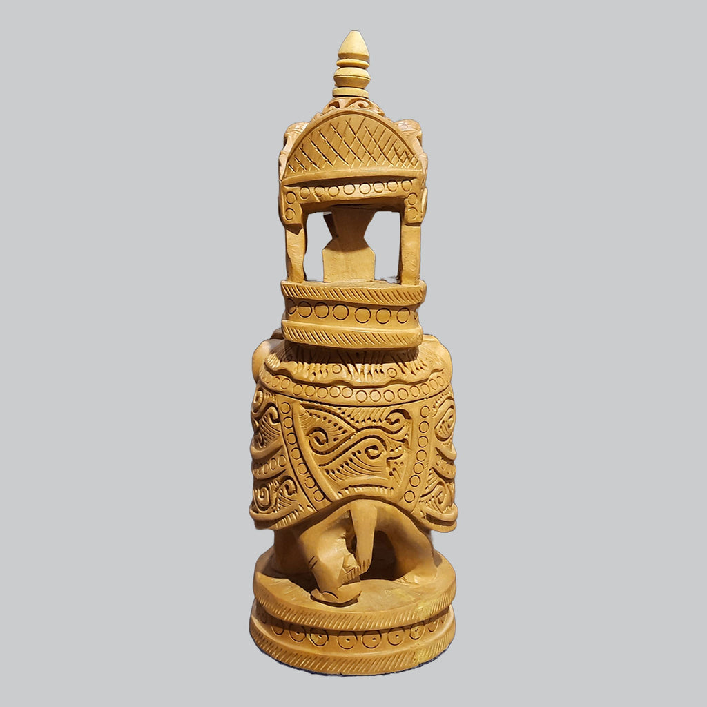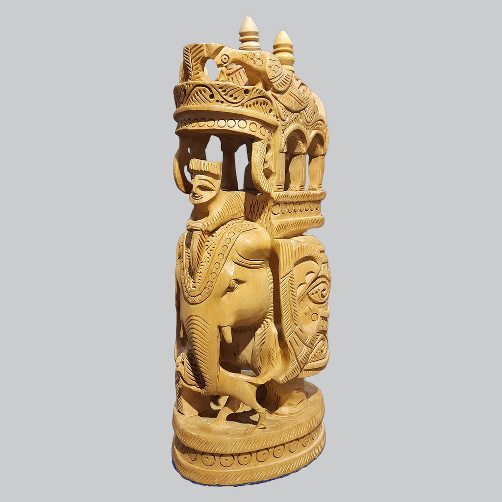 Kadam Wood Ambari Elephant with Carving and Round Base 8 in