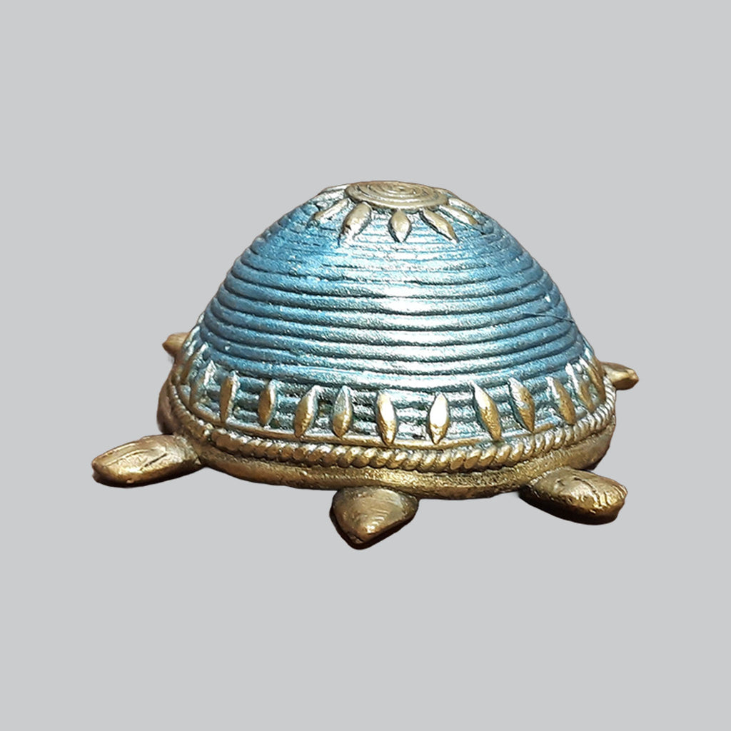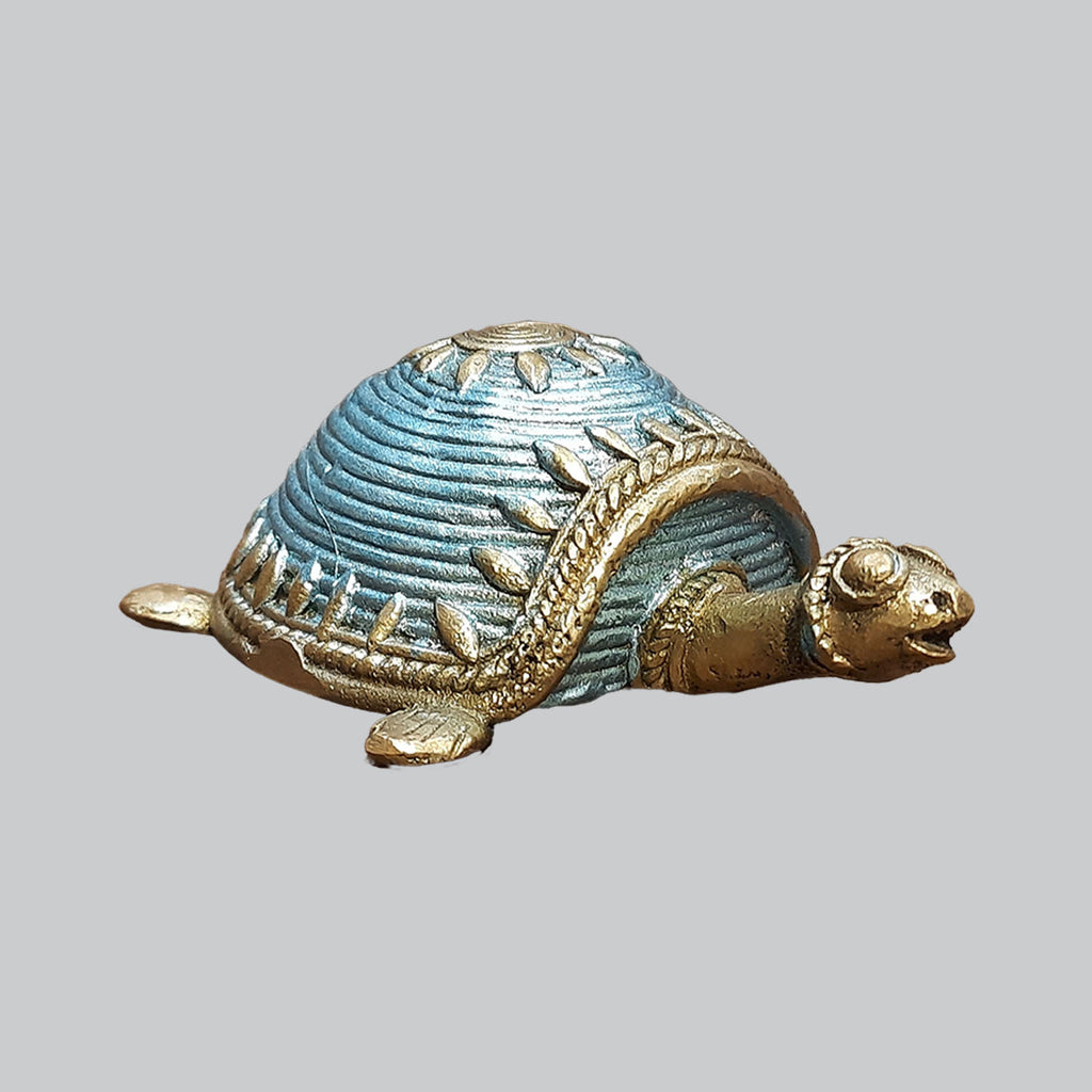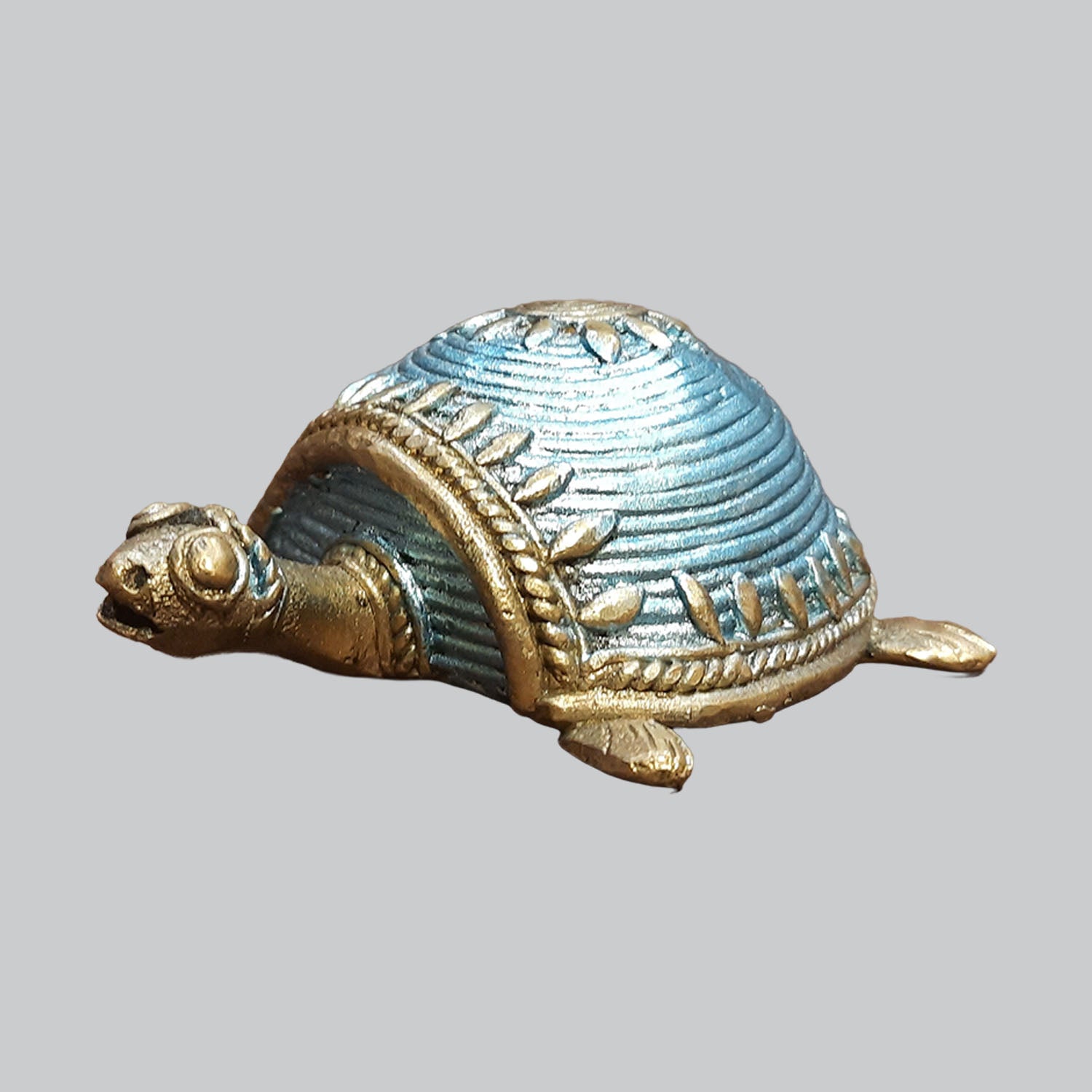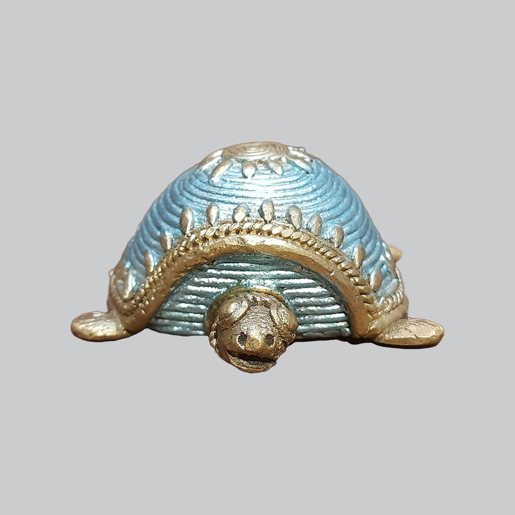 Brass Dhokra Tortoise with Colour - 4 in x 3 in x 2 in