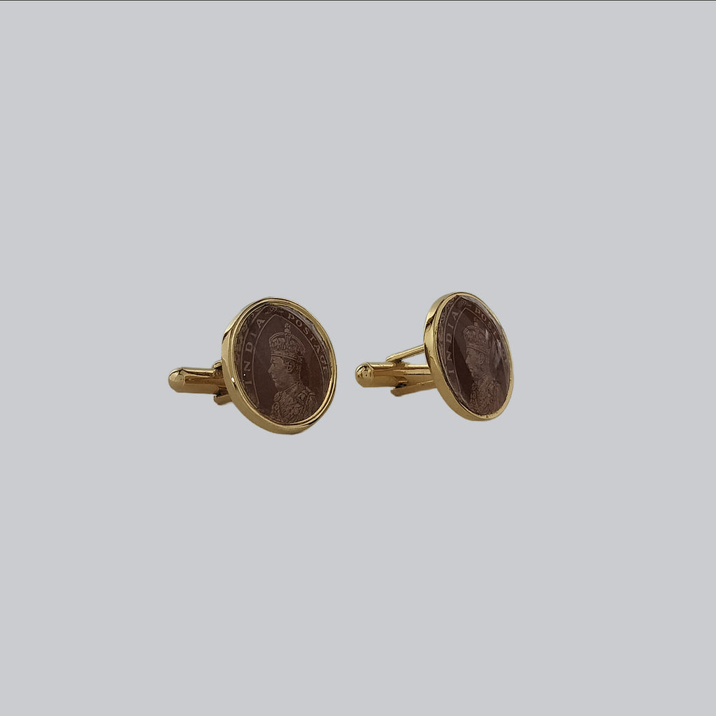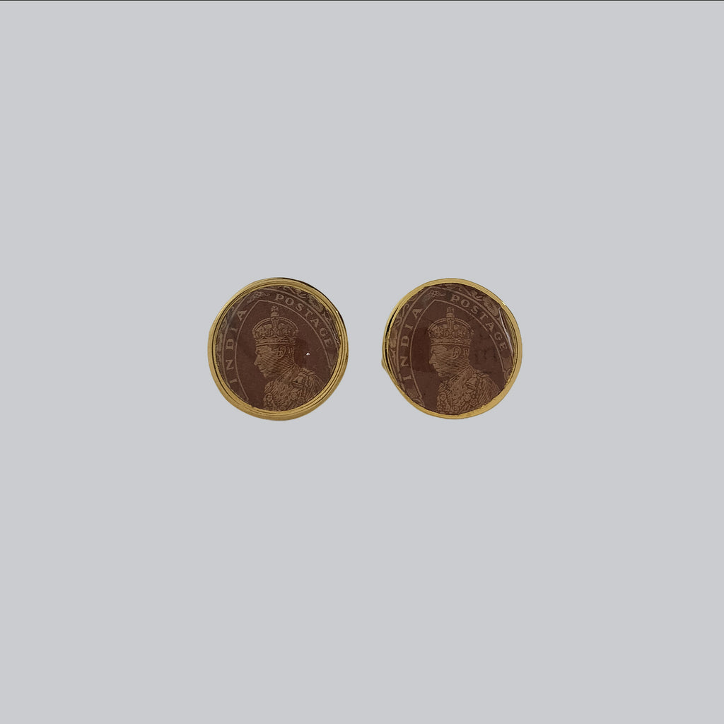 Vintage Round Cufflinks in Stamp Design (S/2)
