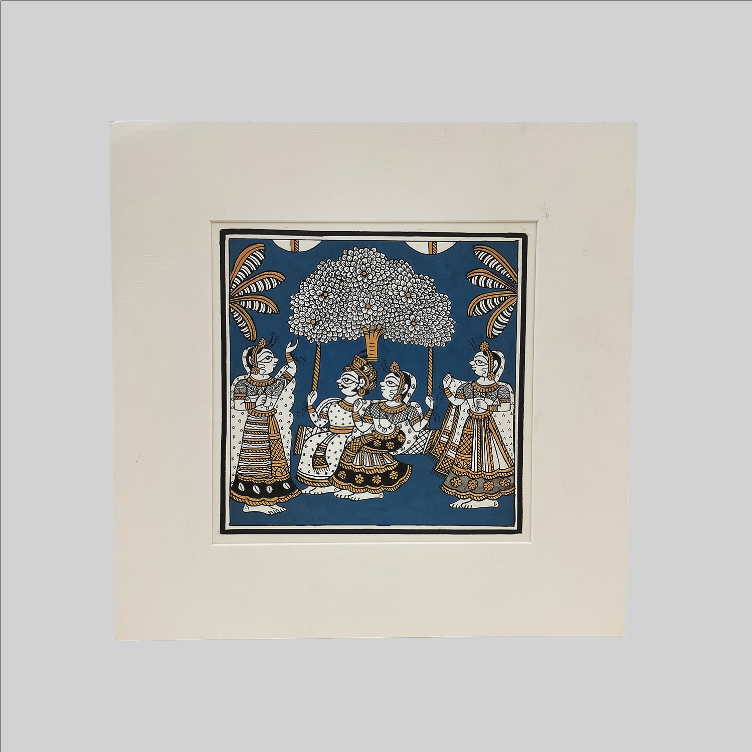 Phad Raja Rani on Jhula Painting (Mount) - 9.5 in x 9.5 in