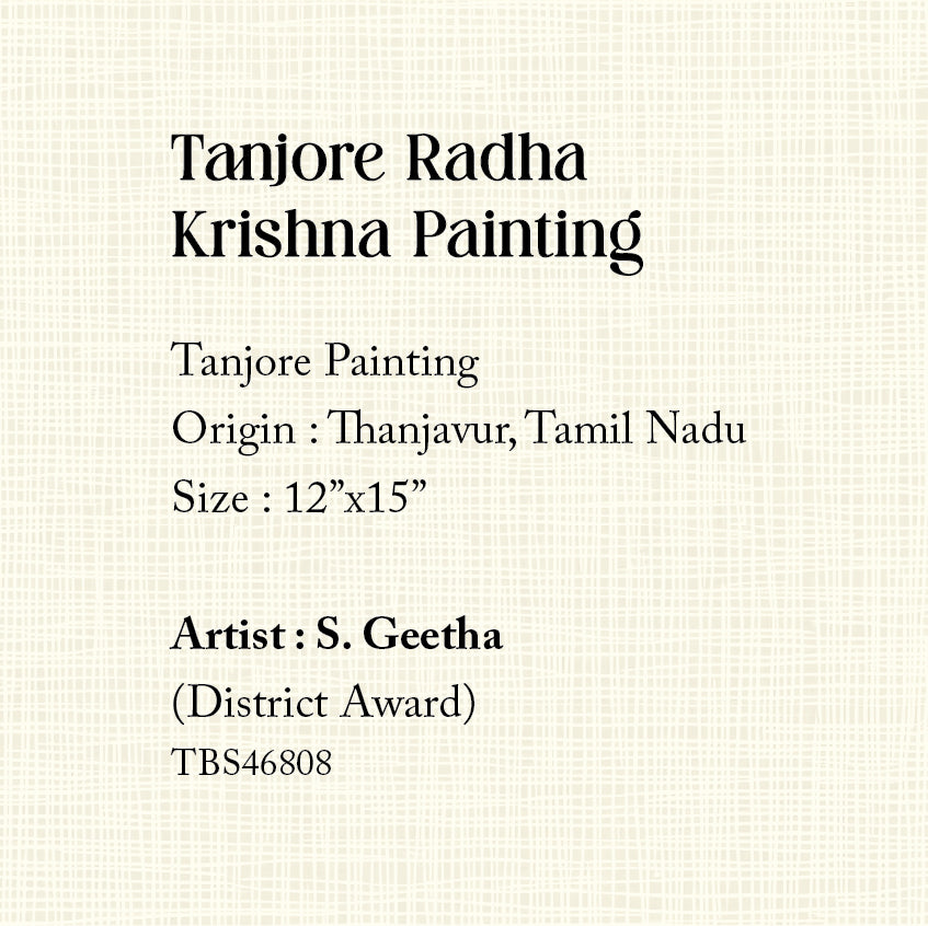 Tanjore Radha Krishna Painting (Frame) - 12 in x 15 in