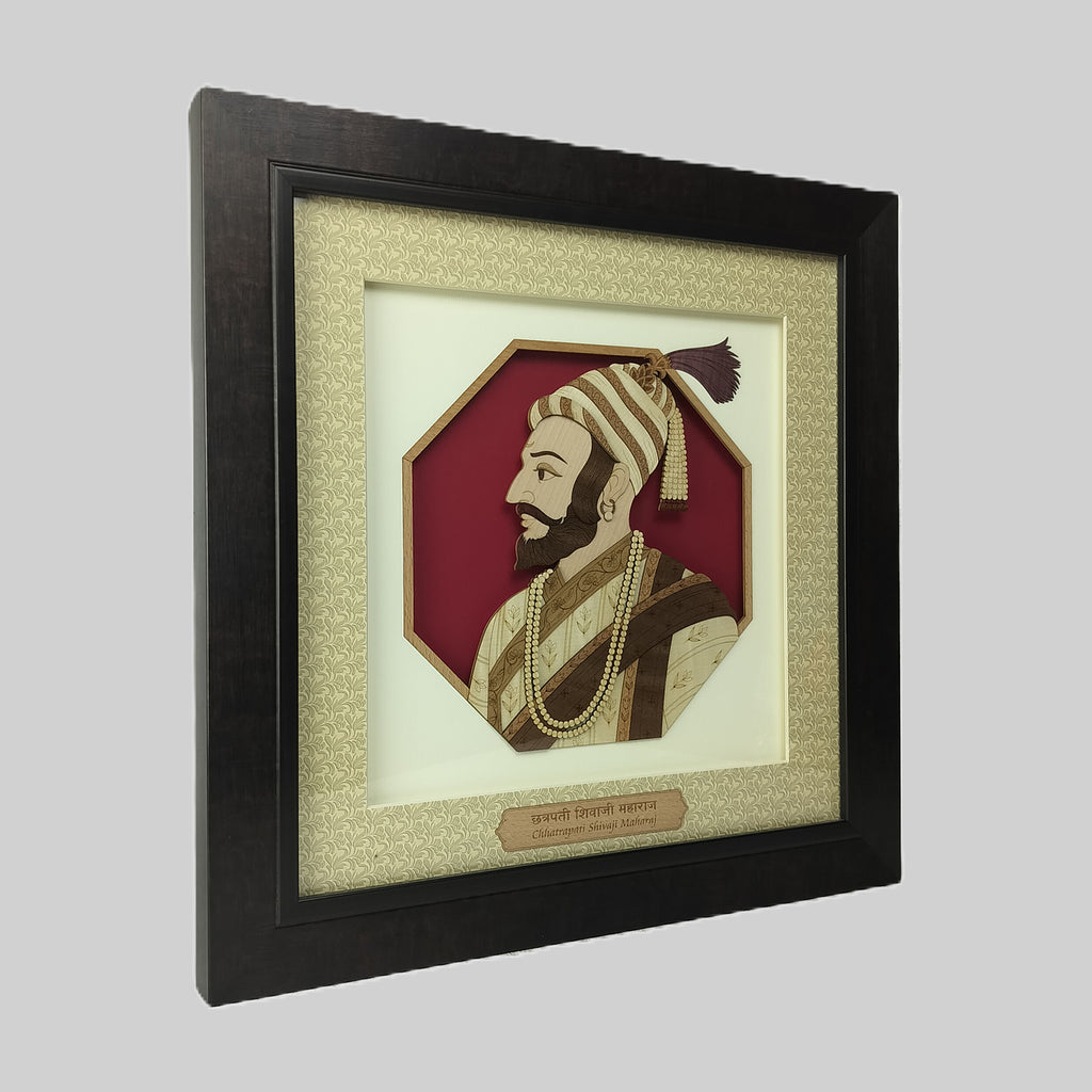 Shivaji Maharaj Wood Art Frame 17 in x 17 in