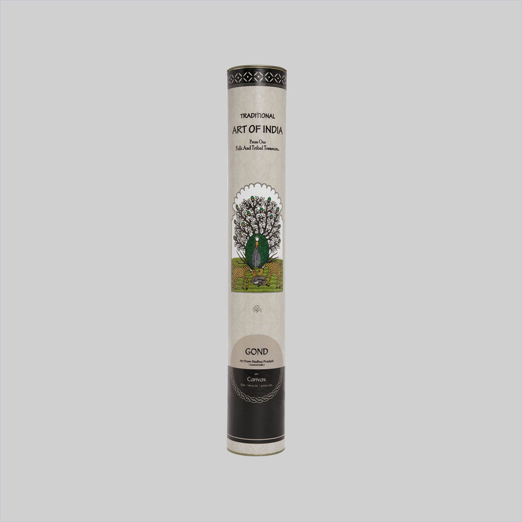 Traditional Art Canvas Gond Peacock Print 16 x 20 in