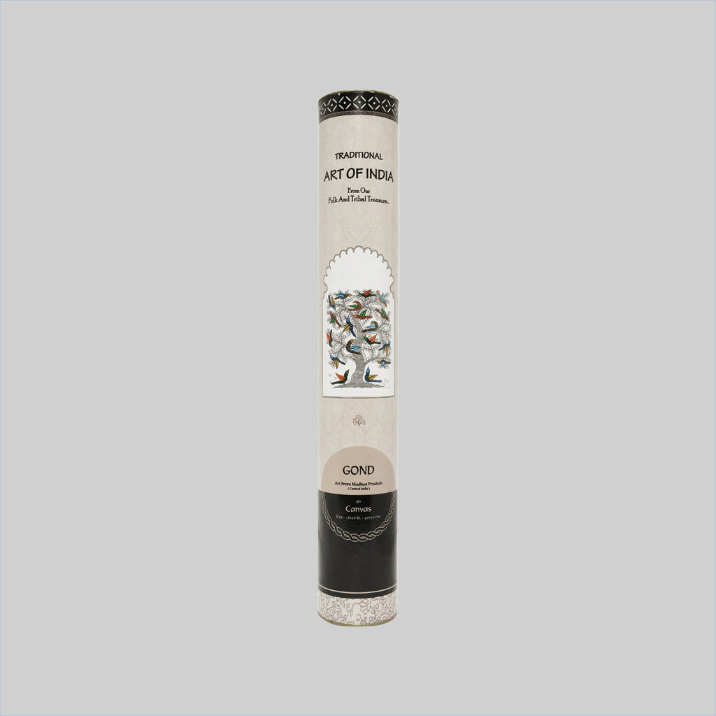 Traditional Art Canvas Gond Tree and Bird Print 16 x 20 in