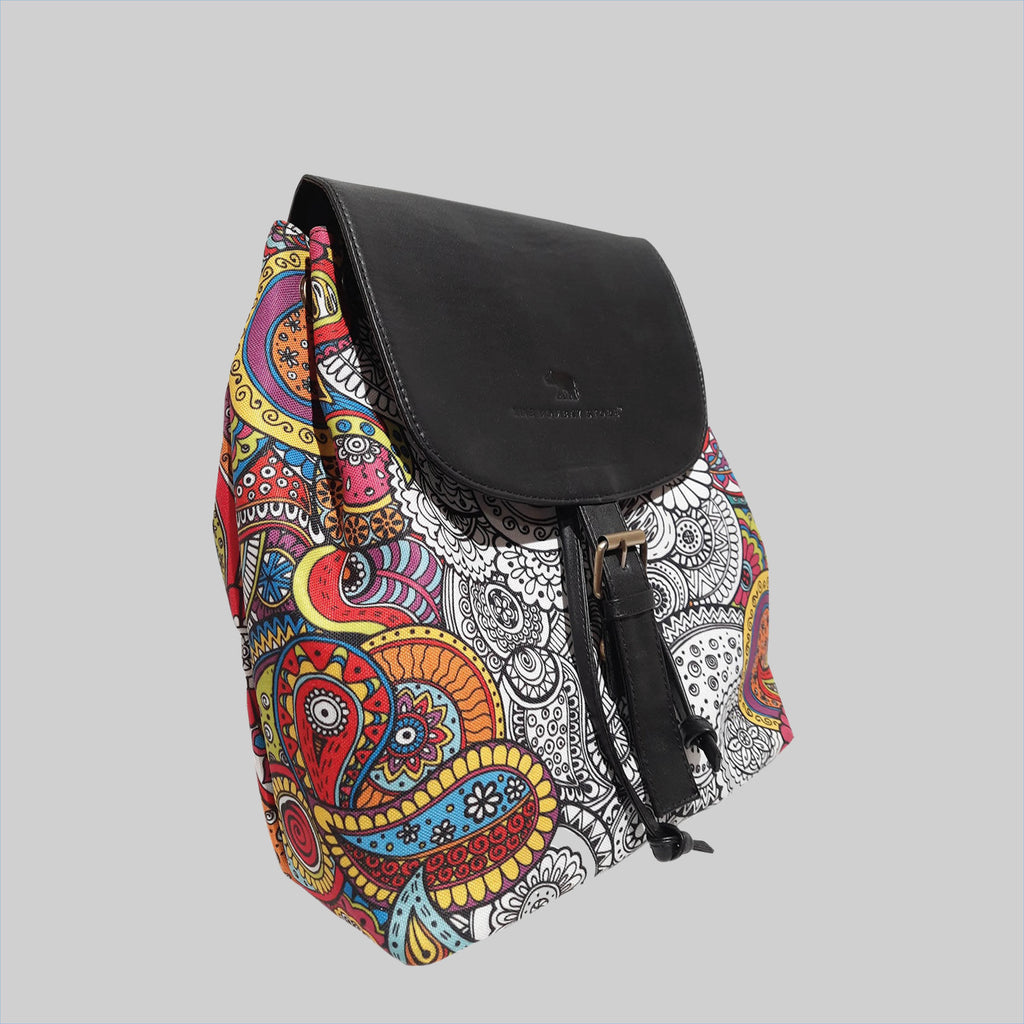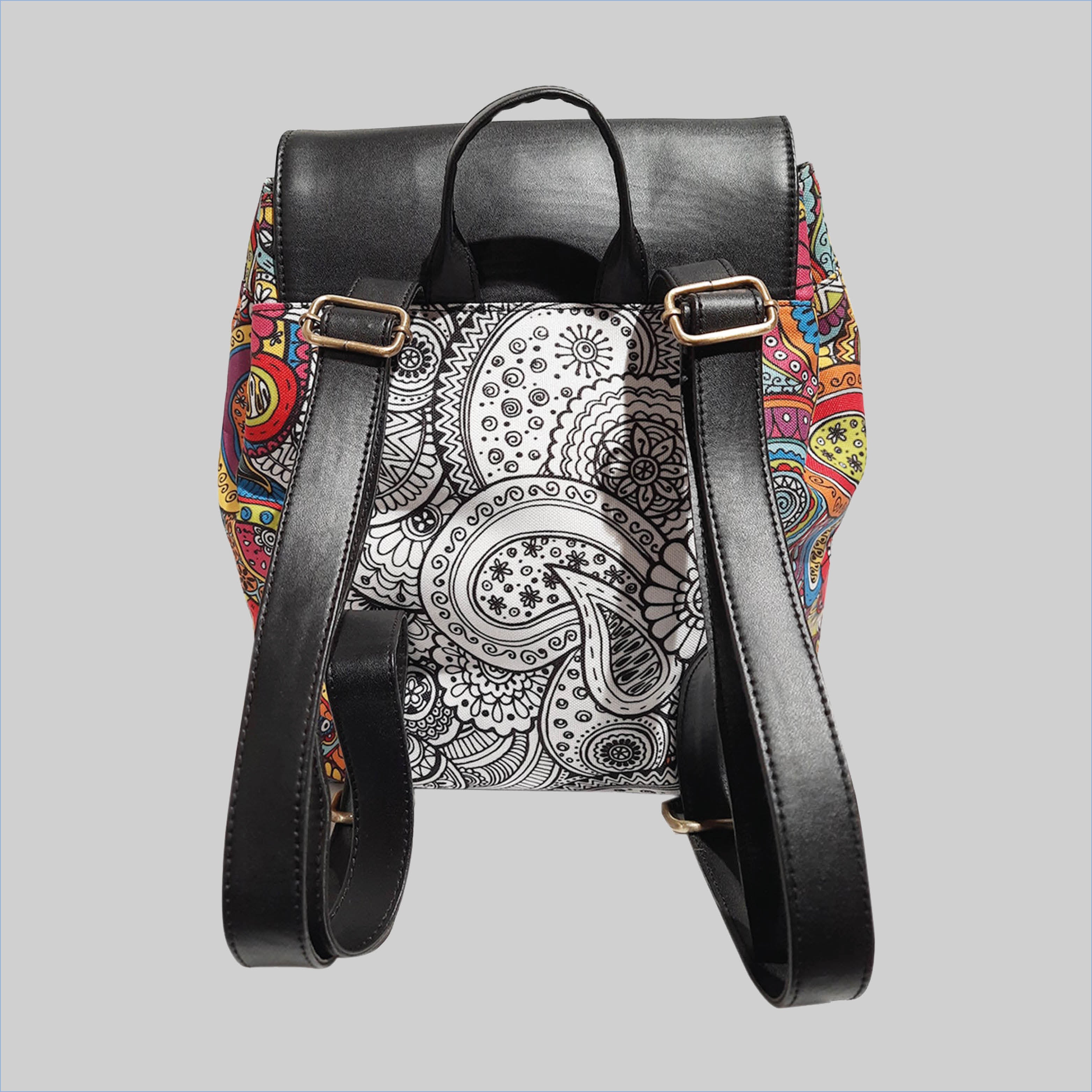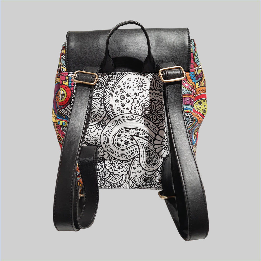 Doodle Mandala Poly Canvas & PU Back Pack Bag
