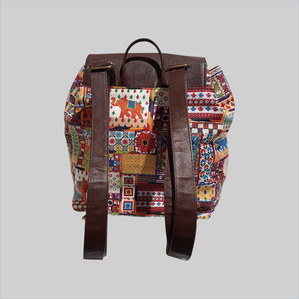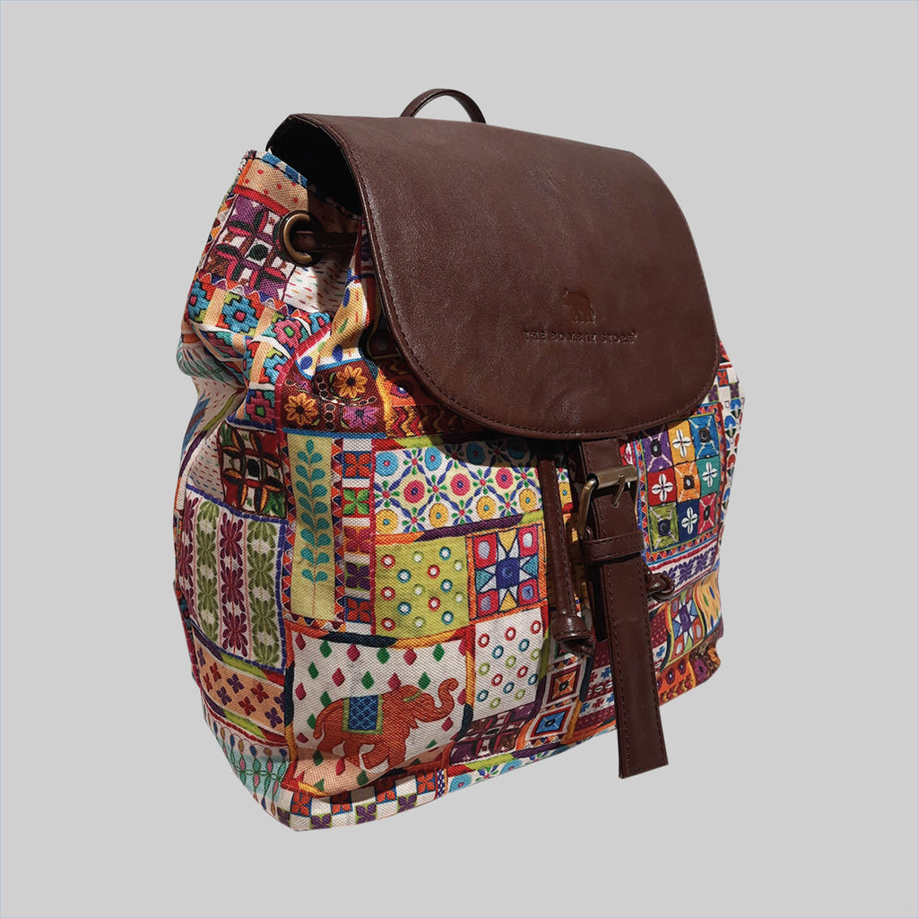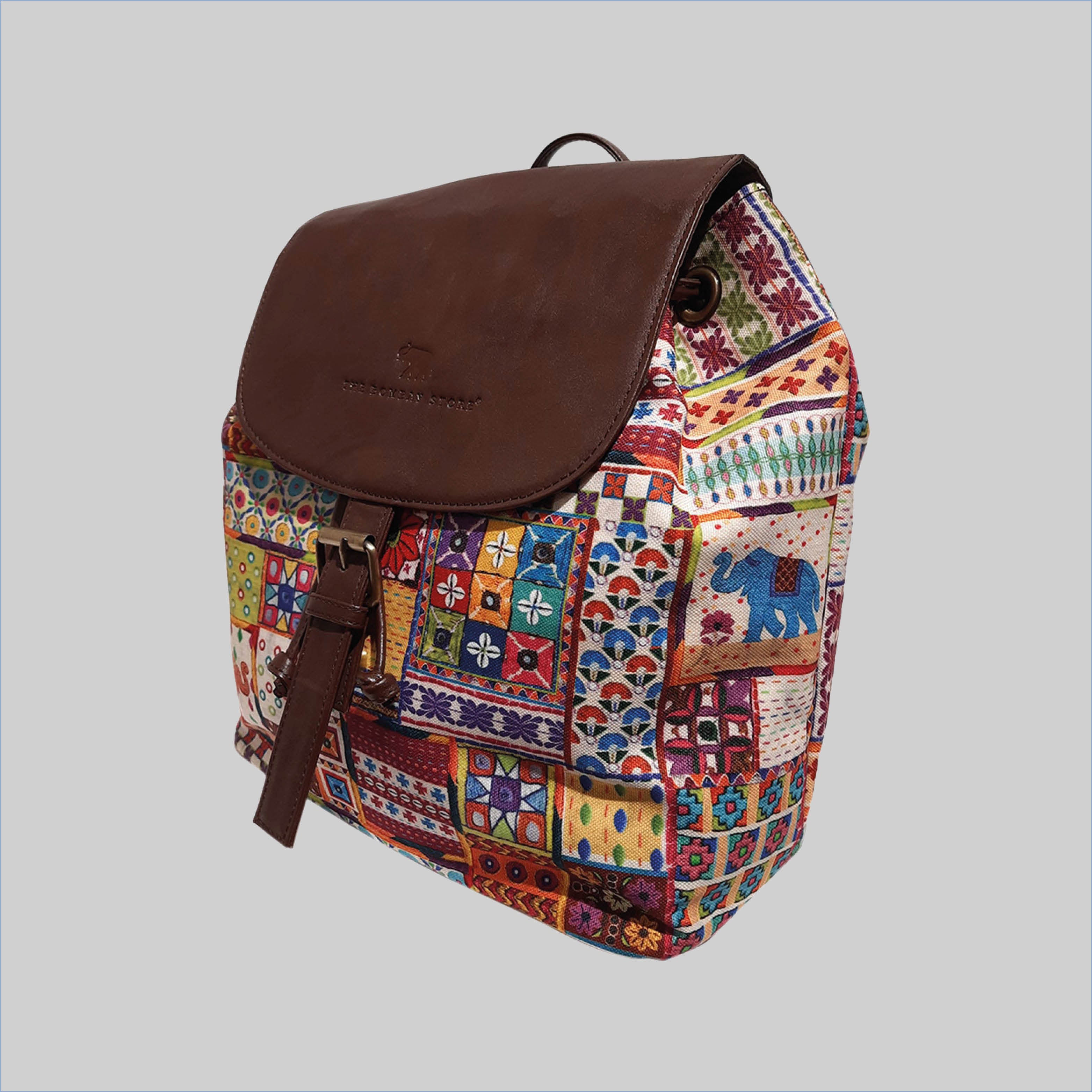 Sui Dhaaga Poly Canvas & PU Back Pack Bag