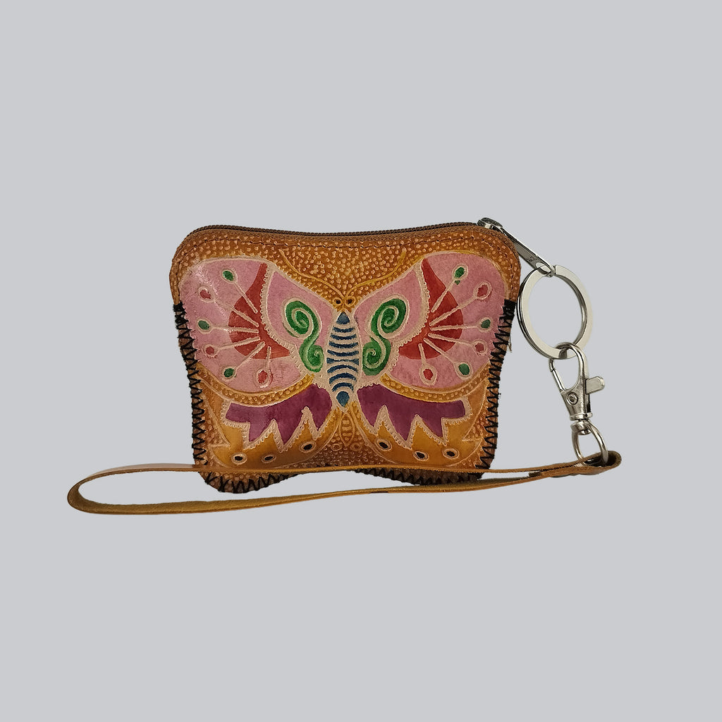 Shanti Niketan Leather Coin Purse with Embossed Design