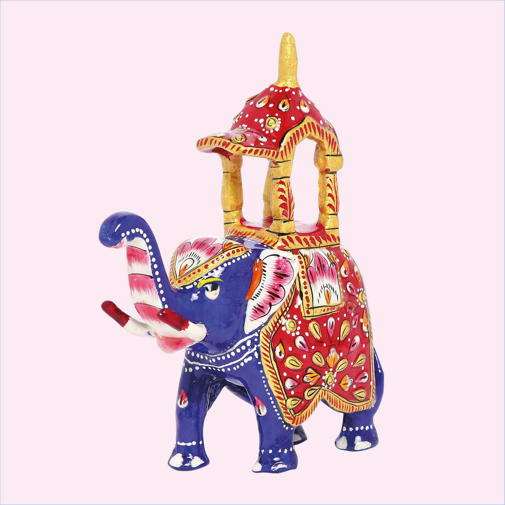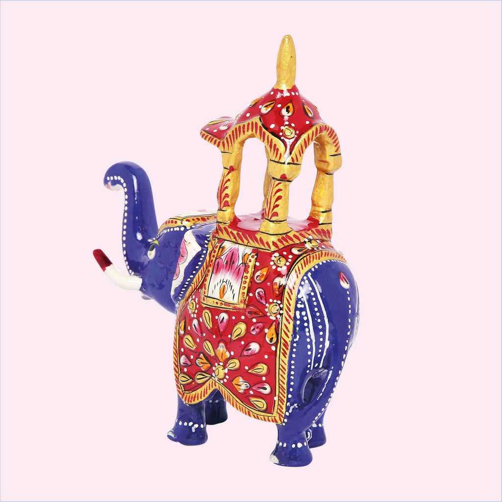 Metal Enamel Handpainted Ambari Elephant Small 4 in