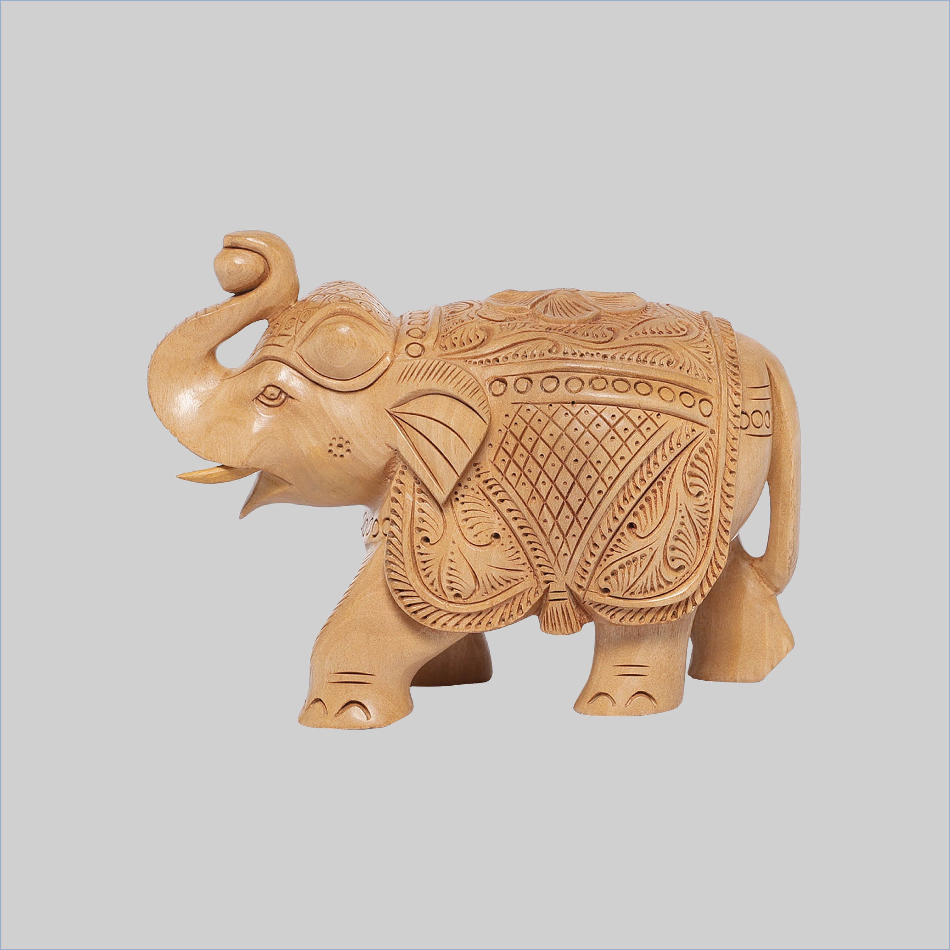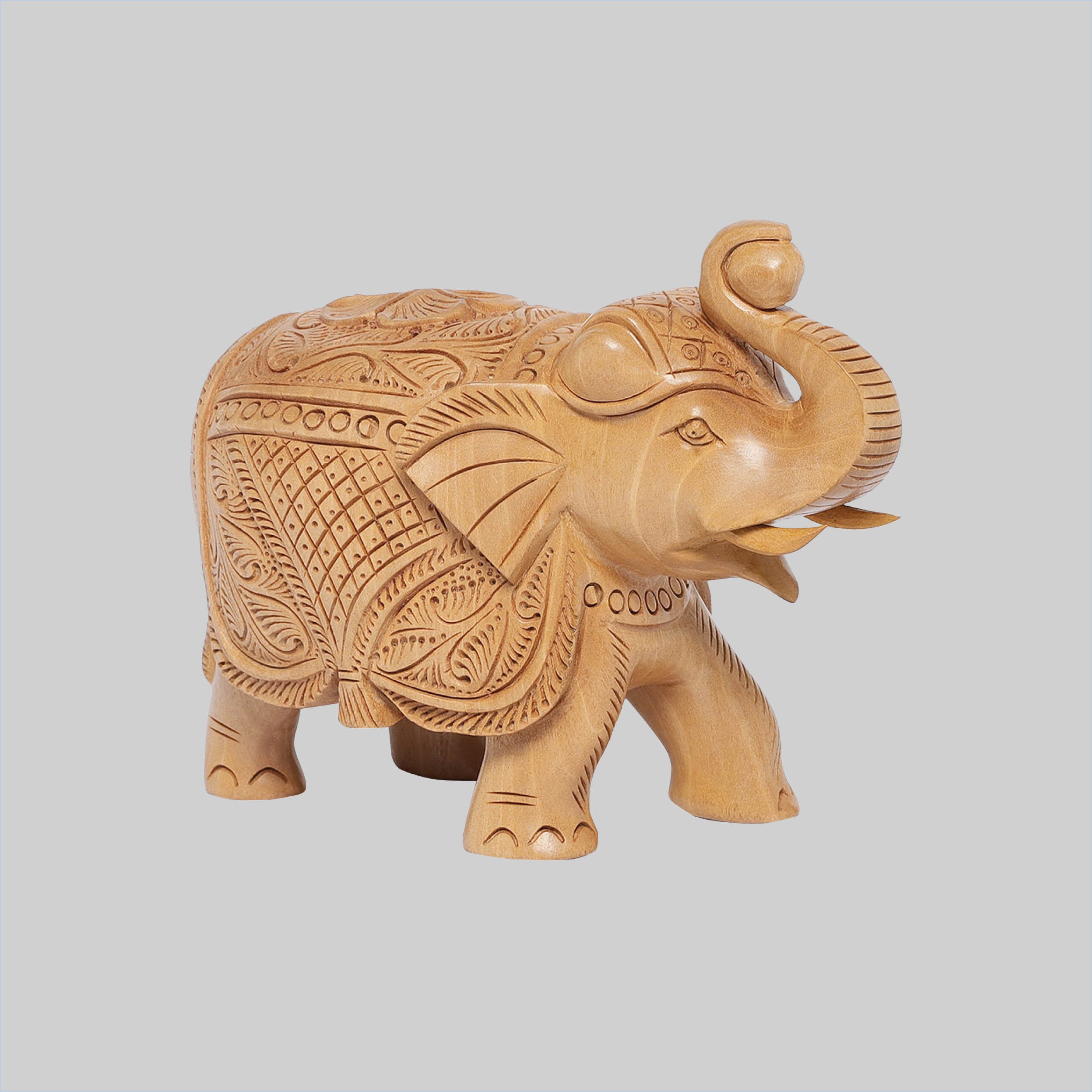 Kadam Wood Handcarved Elephant Trunk Up 4 in