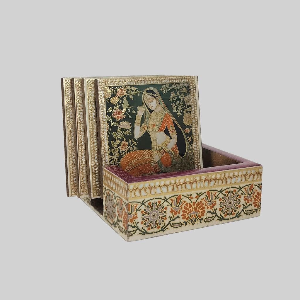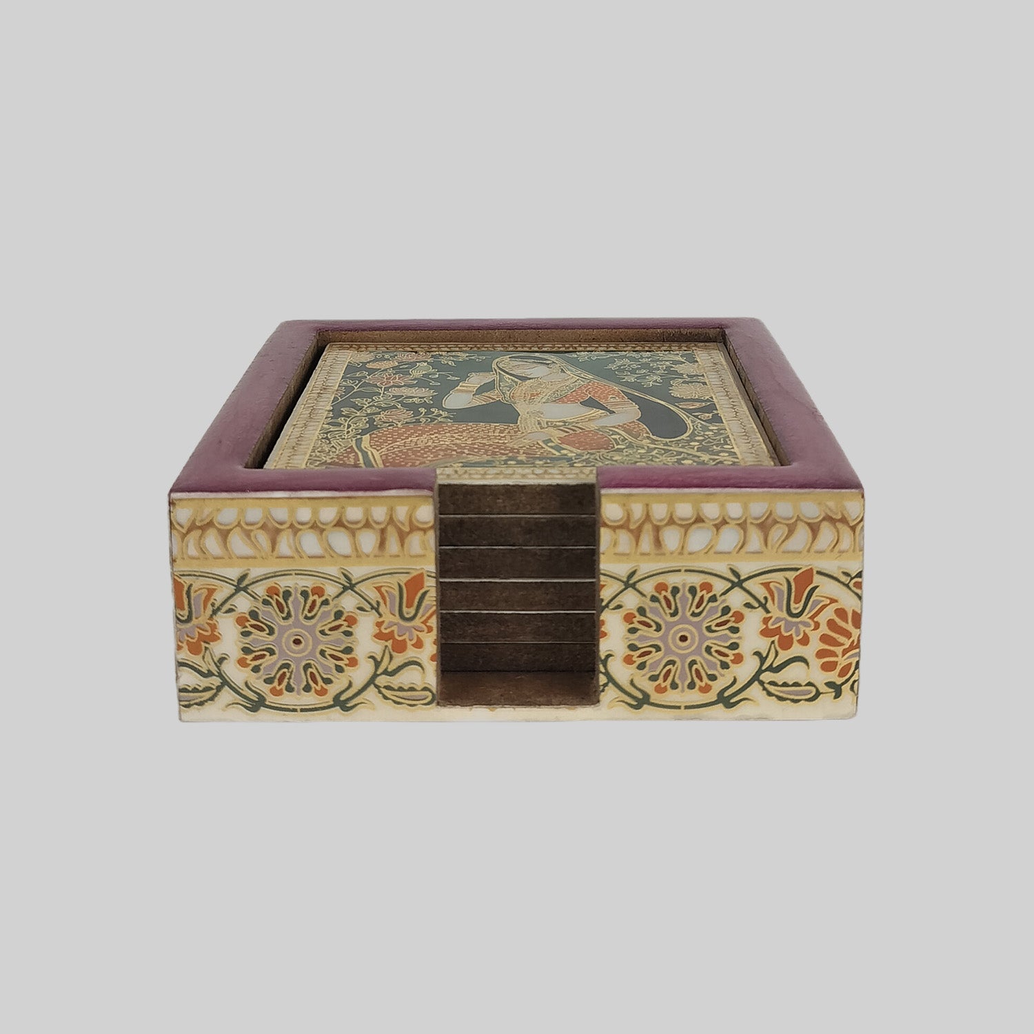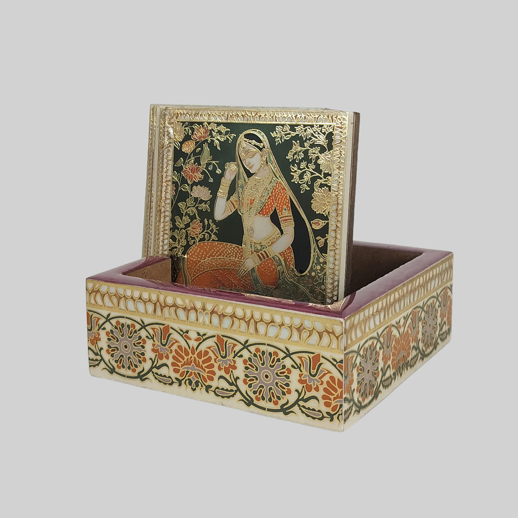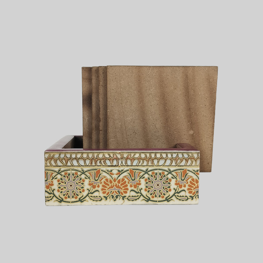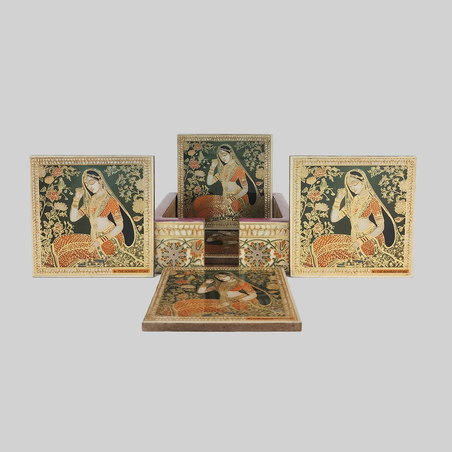 Bani Thani Gold Foiled Square Coasters with Holder (Set of 6)