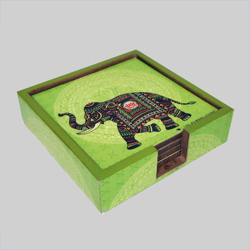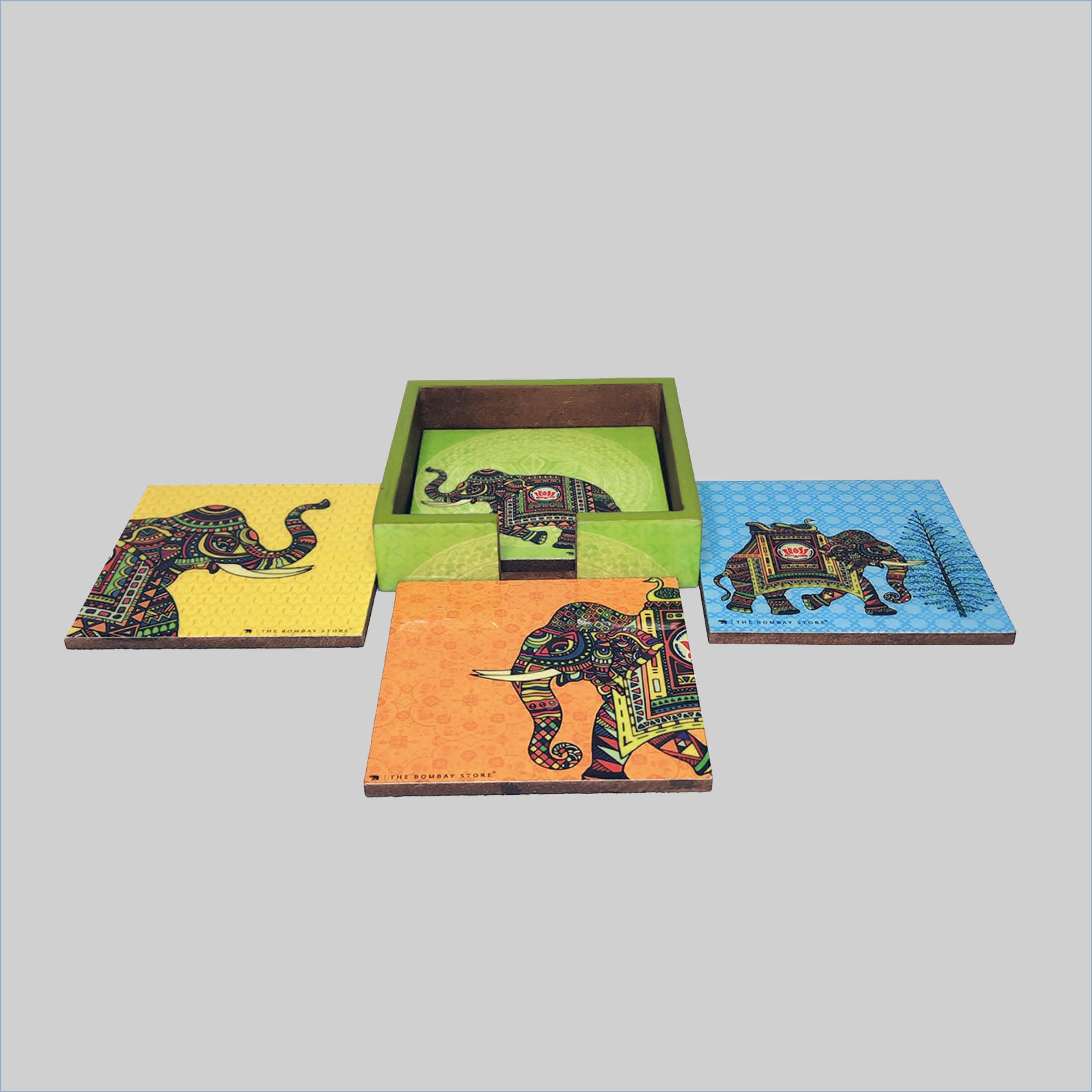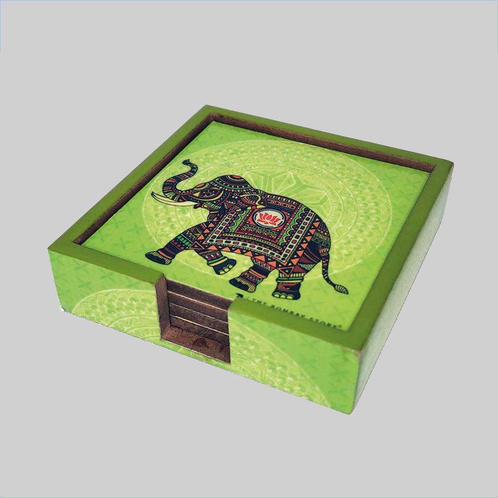 Signature Elephant Square Coasters with Holder (Set of 4)
