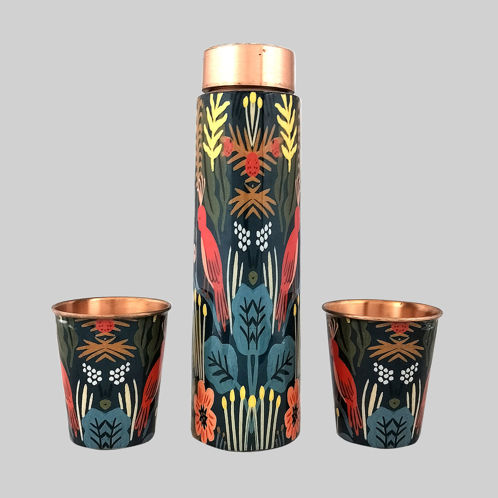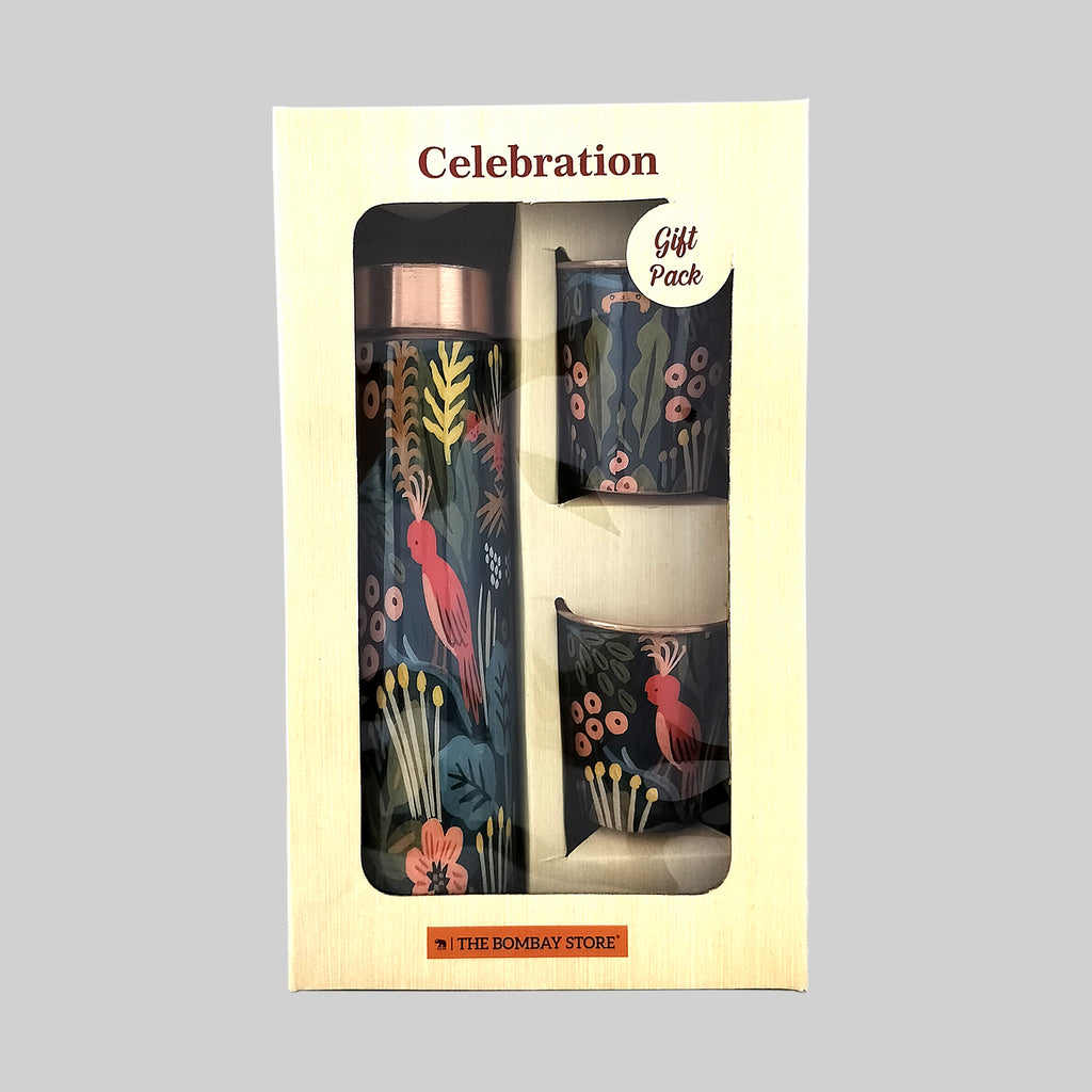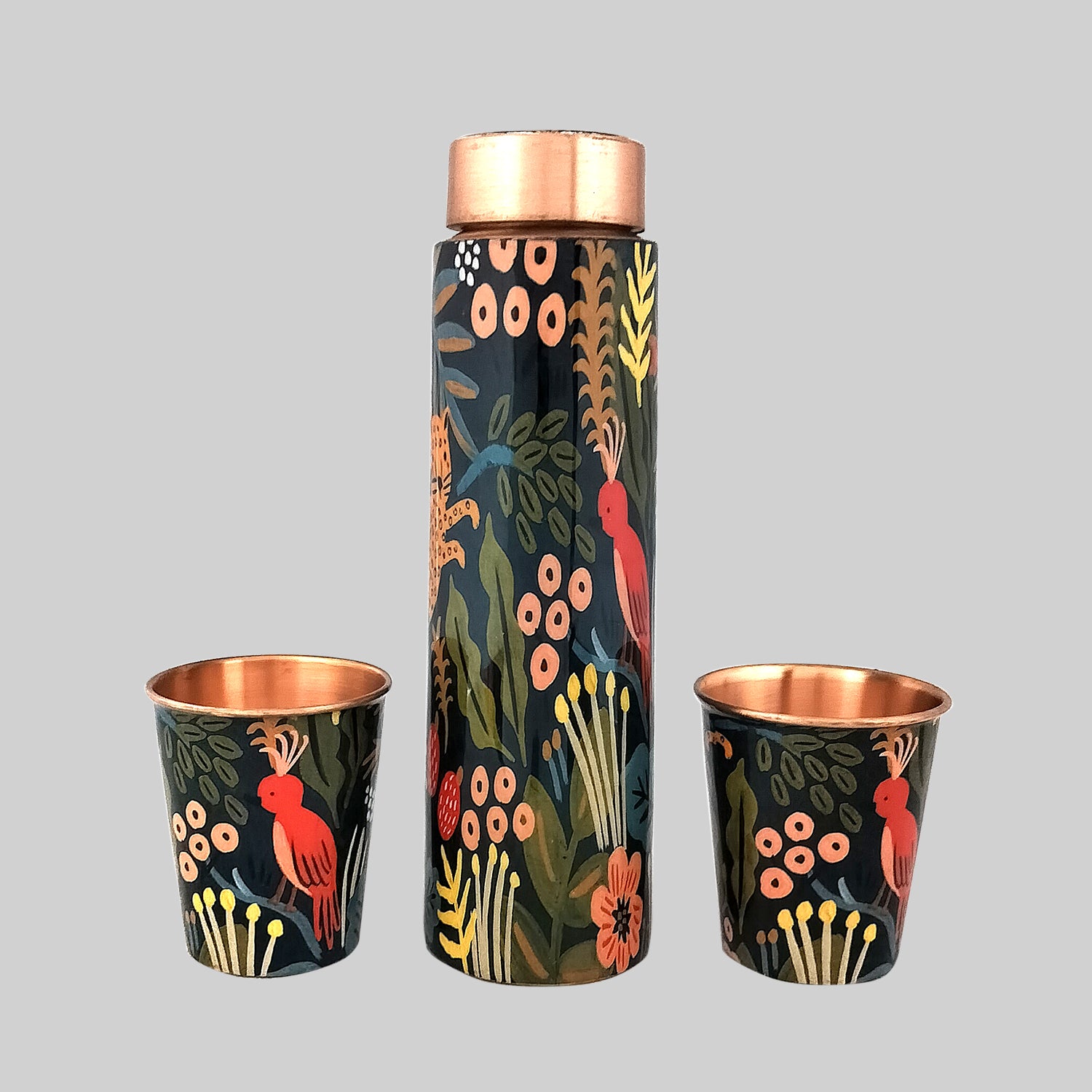 Jungle Bliss Copper Bottle with 2 Glasses in Gift Box