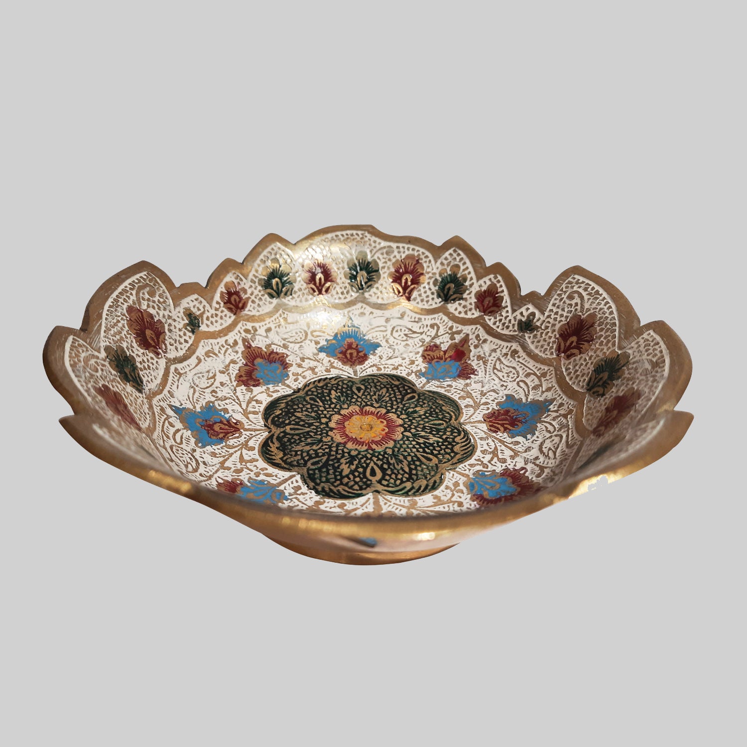 Go back to the royal era, with these handcrafted brass bowls - where royalty meets beauty. Striking colours are fused together on metal surfaces bringing to life traditional Indian motifs. The Meenakari/ Kundan work bears an enamel layer on the surface which makes it washable, and hence viable to use.