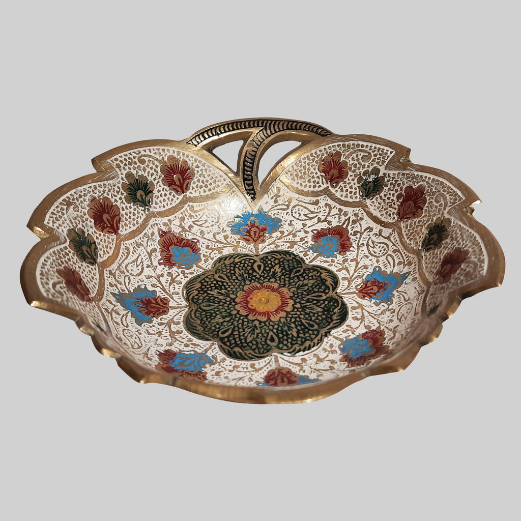 History of this Antique Art.Introduced in Rajasthan by Raja Maan singh of Amer, this Persian craft was originally used to create designs on the back of traditional polki jewellery. However, as the craft flourished under Mughal patronage, it became a design of its own, and pervaded into showpieces and tableware.One of the most complex crafts, the process of Meenakari remains the same as it was 500 years ago! A typical piece passes through the hands of 7 craftsmen before it’s finally ready for showcase.
