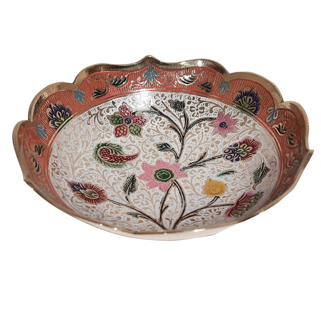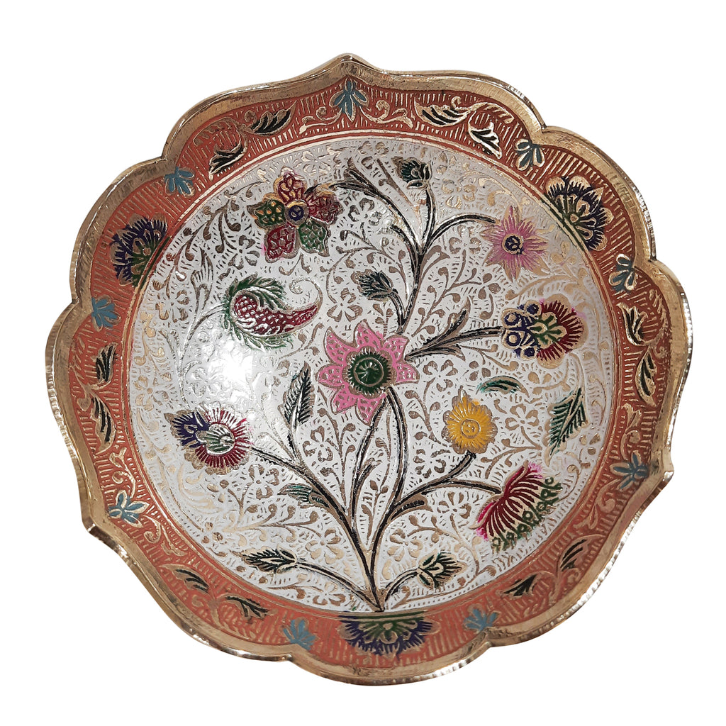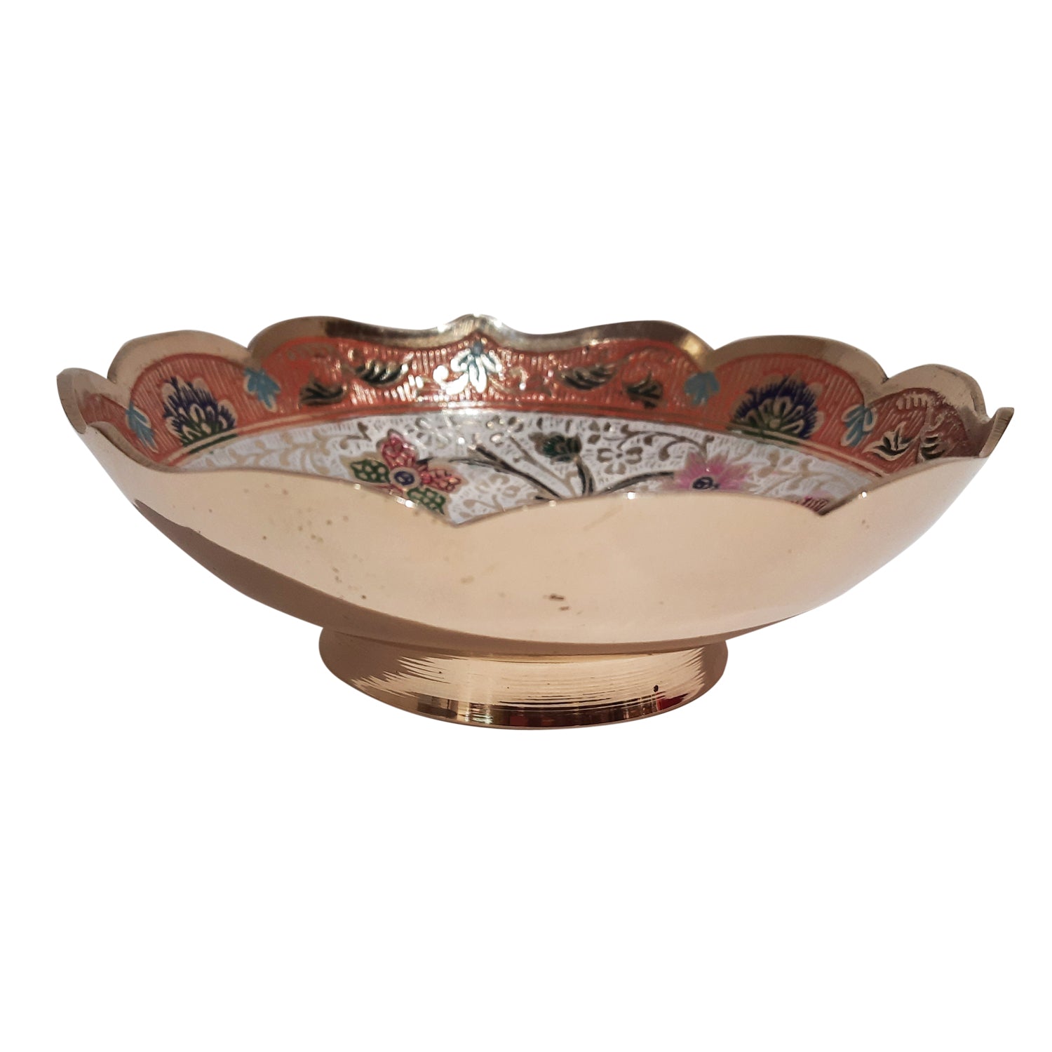 Go back to the royal era, with these handcrafted brass bowls - where royalty meets beauty. Striking colours are fused together on metal surfaces bringing to life traditional Indian motifs. The Meenakari/ Kundan work bears an enamel layer on the surface which makes it washable, and hence viable to use.