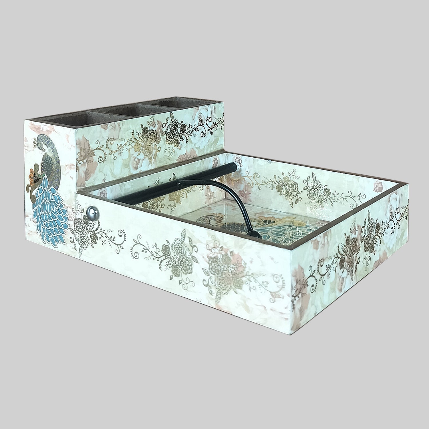 The Peacock, India's national bird, is an ancient symbol of immortality and immunity. As a motif, it portrays majesty, beauty, intrigue and luxury. Peacock motifs have always been popular in Indian culture, associated with royalty and good fortune.