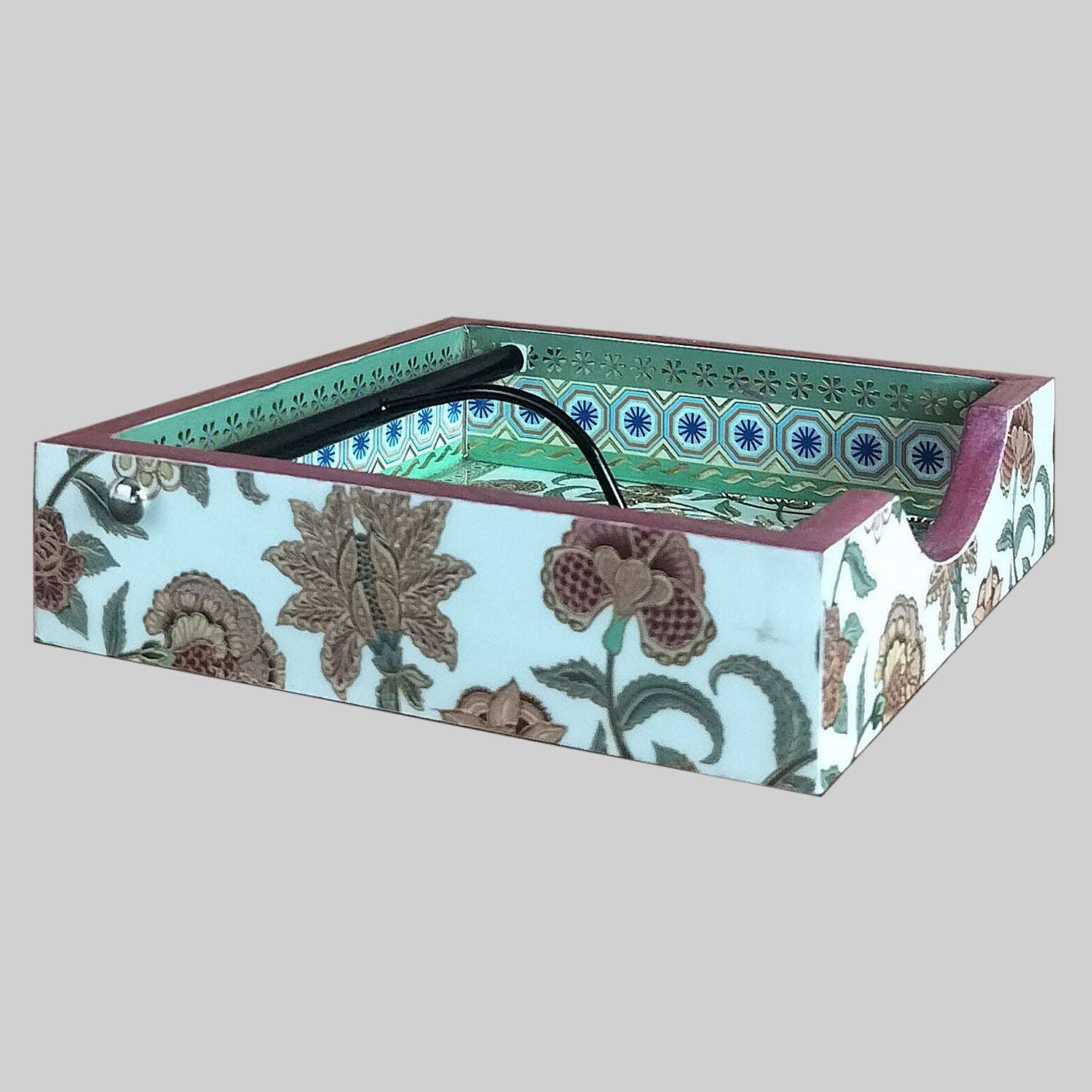 Pep up your spaces with this vibrant tissue box holder that blends functionality with style. Perfect for dining tables or coffee setups, it keeps your napkins organized while adding a pop of color. Complement it with our matching trays and coasters for a coordinated, artistic look.