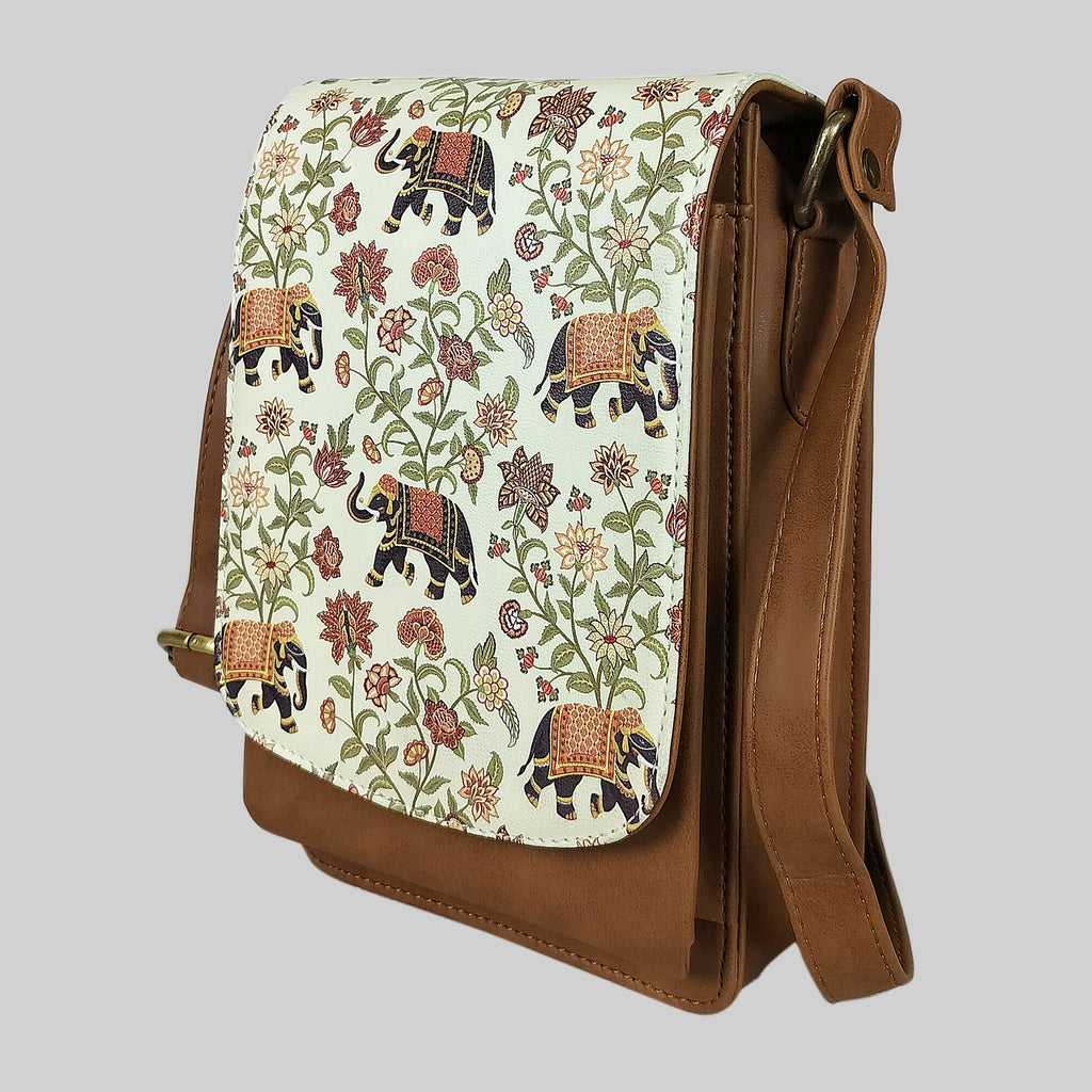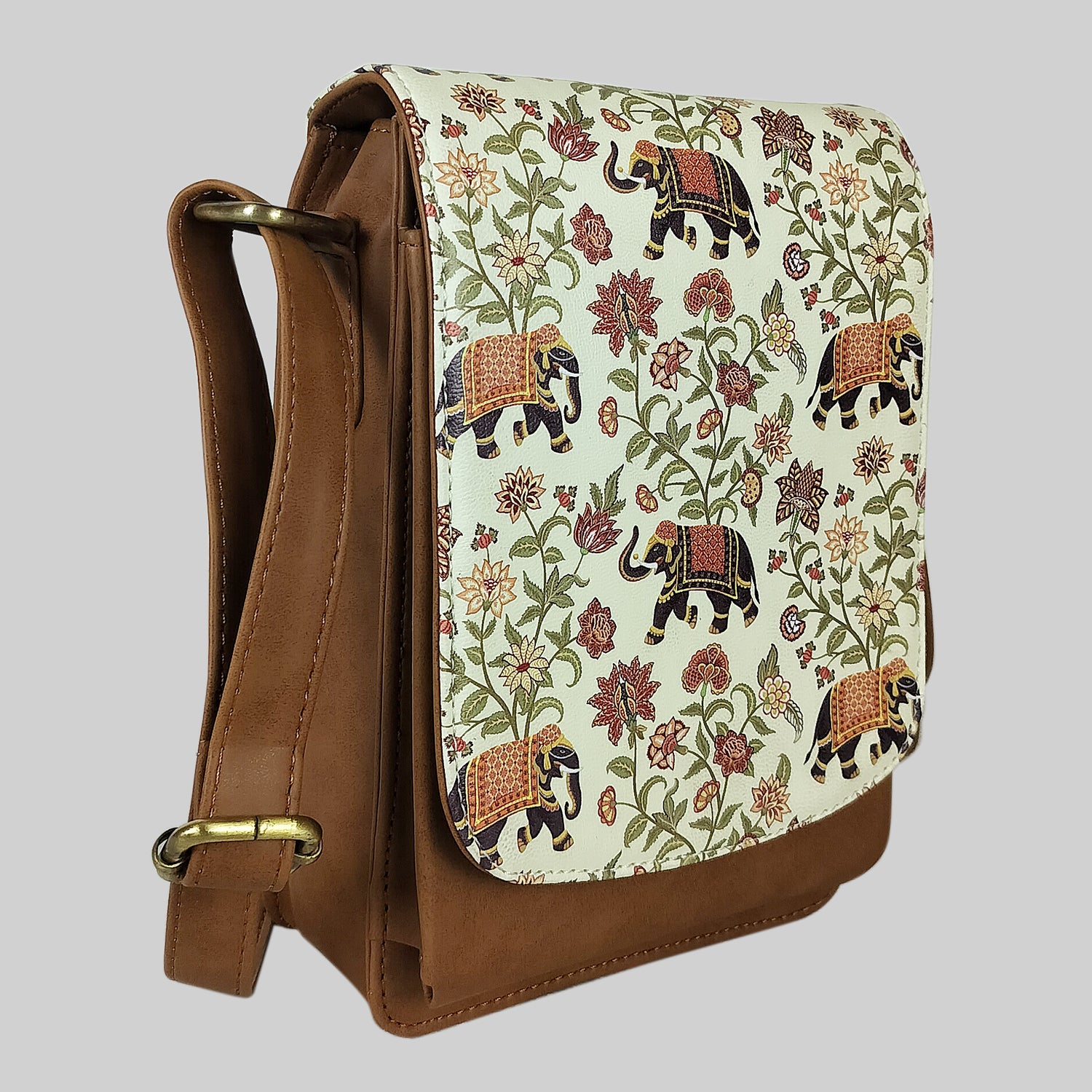 Elephant Floral Faux Leather Rectangle Sling Bag