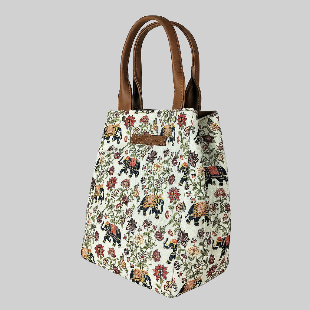 Handcrafted in canvas with sturdy PU handles and smooth polyester lining.