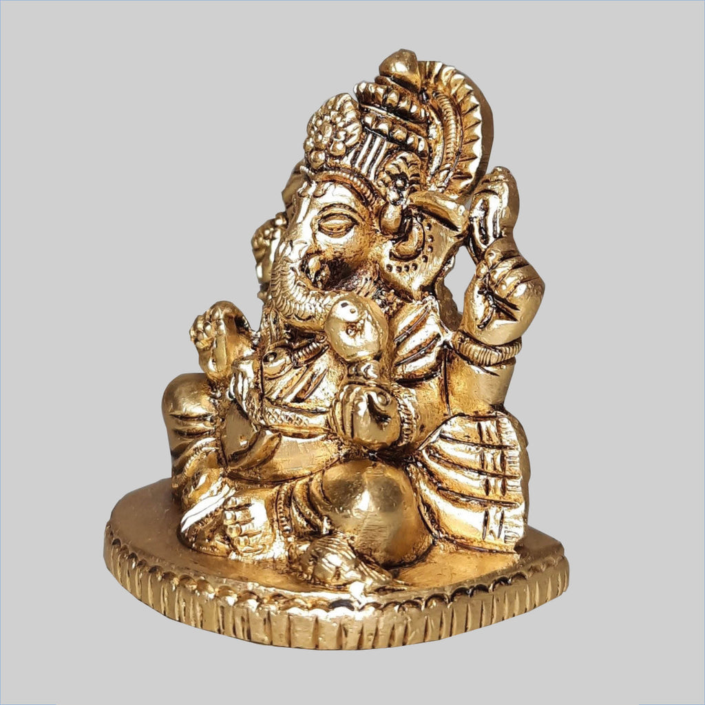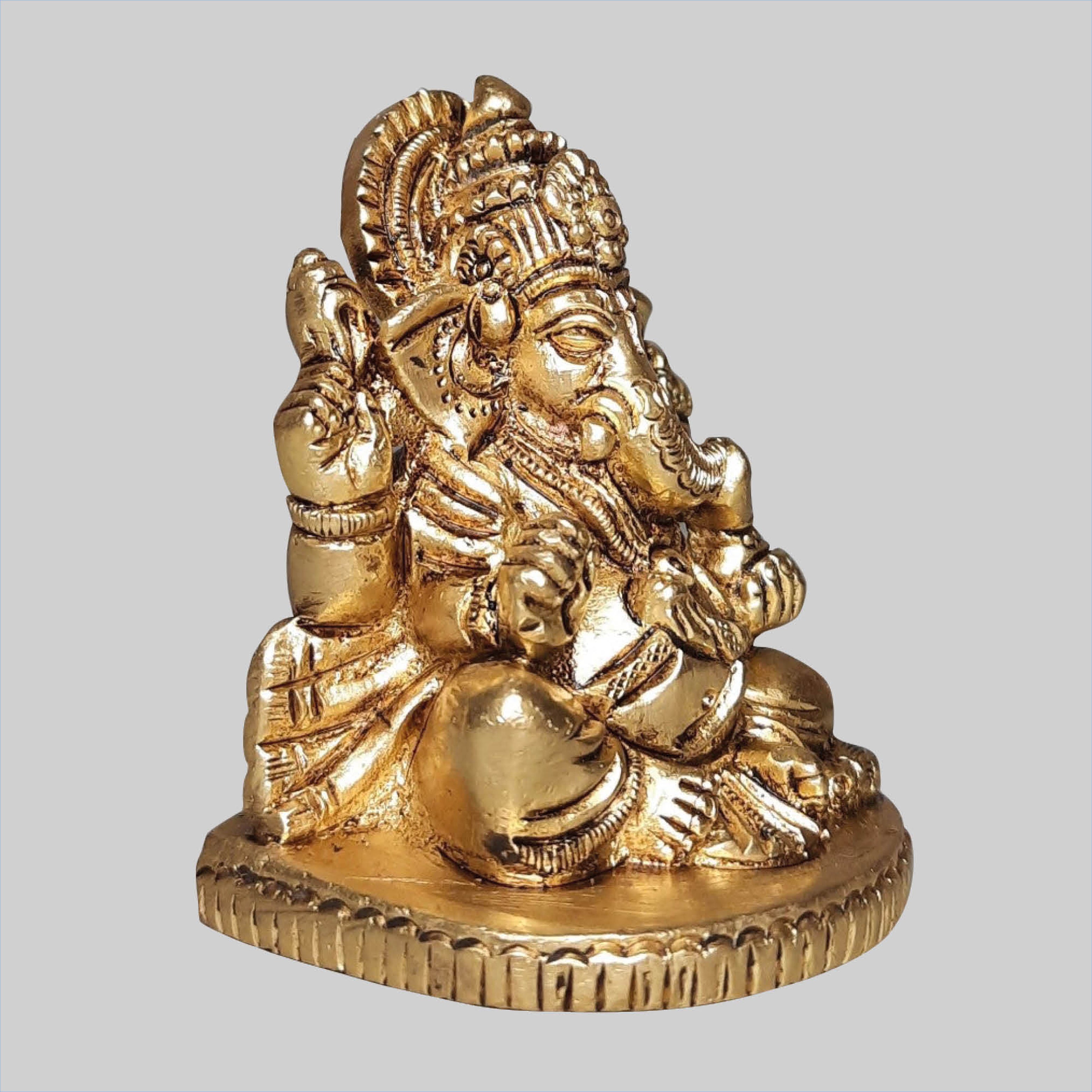 Brass Ganesha Sitting on Oval Base 2.5 in