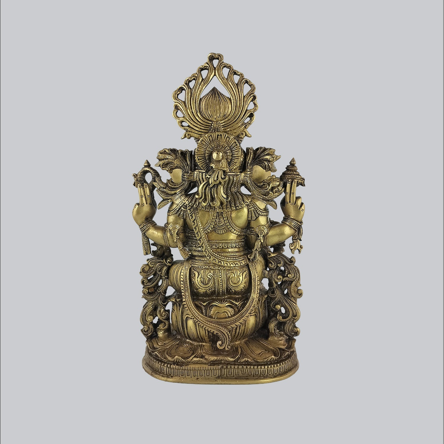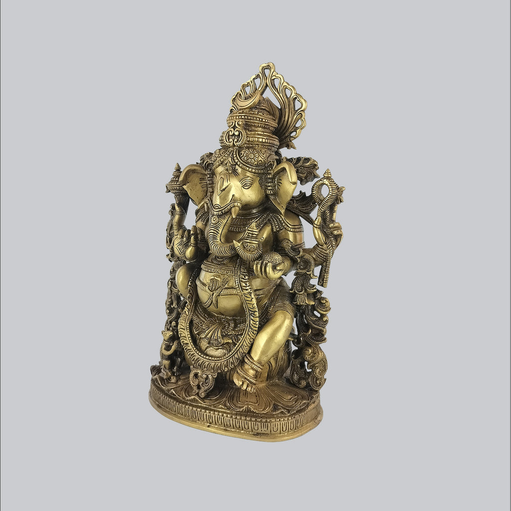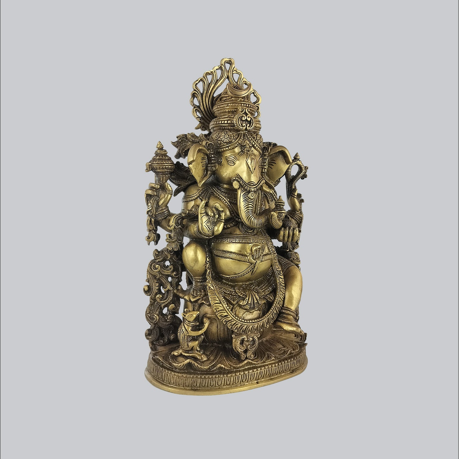 Brass Decorative Ganesha Sitting on Base 14.5 in