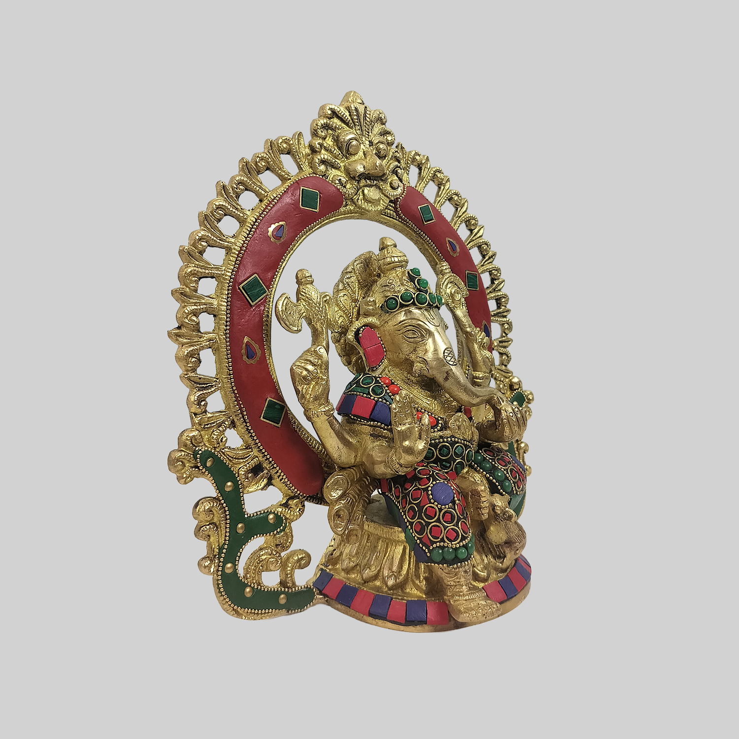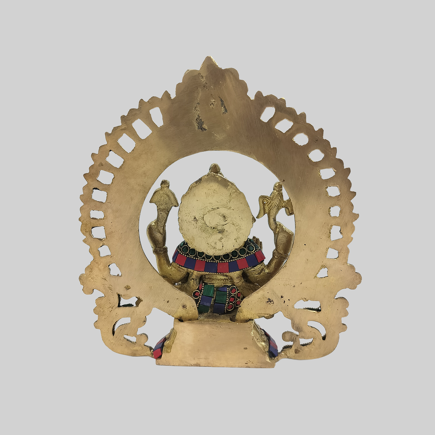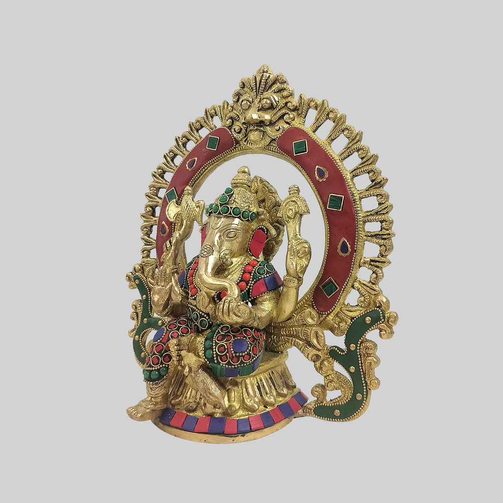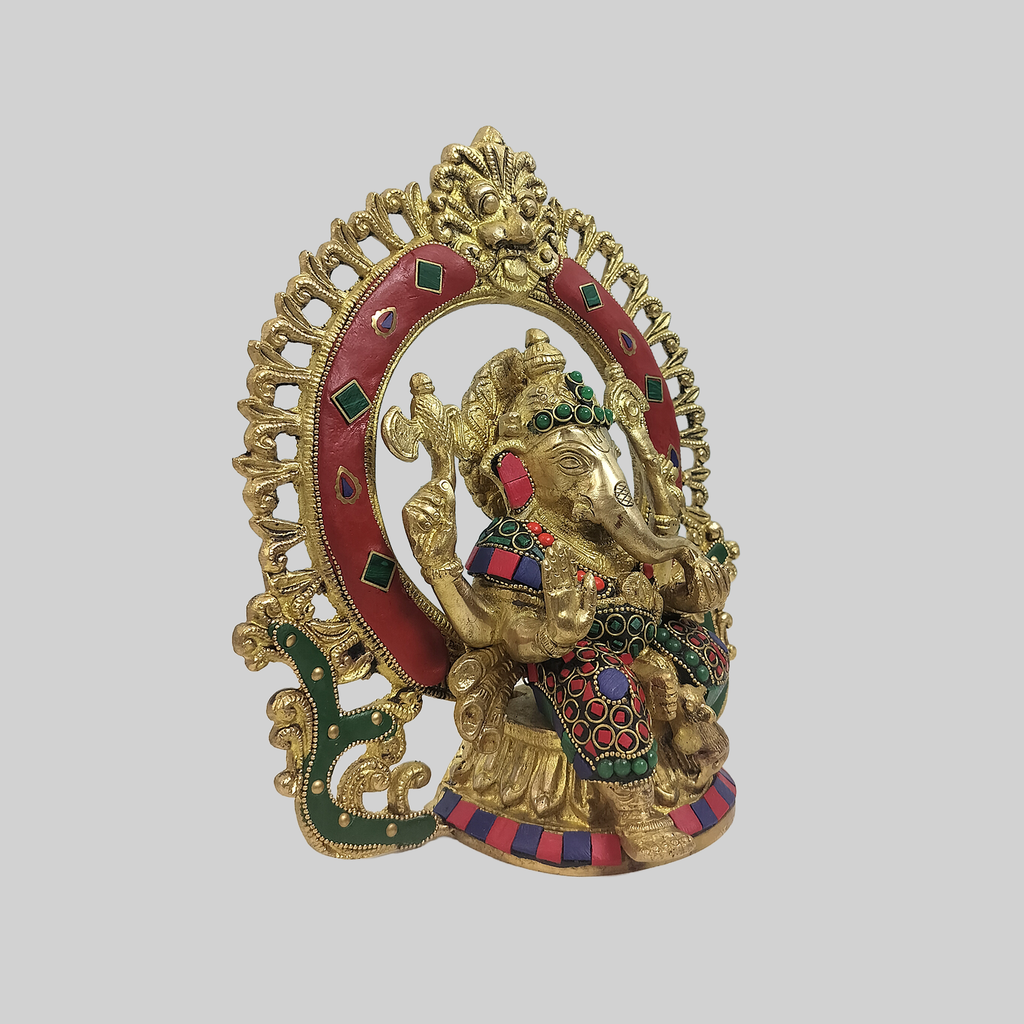Brass Ganesha in Arch with Ring Stonework 9 in