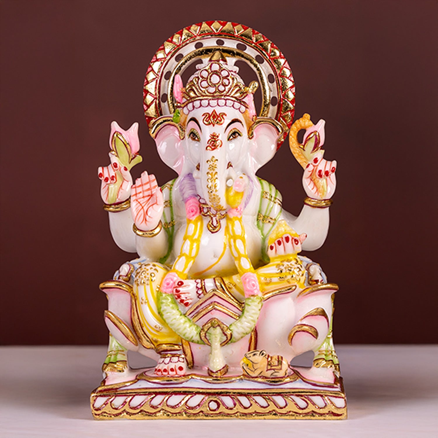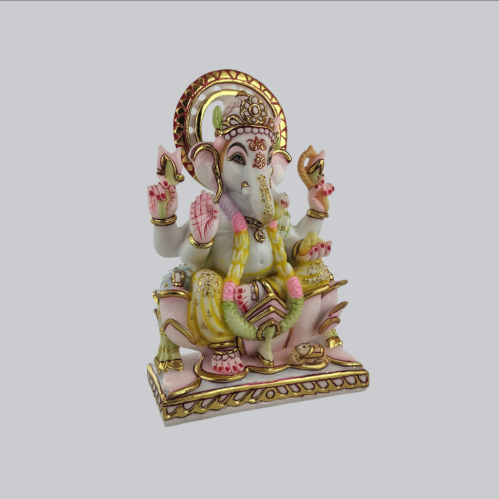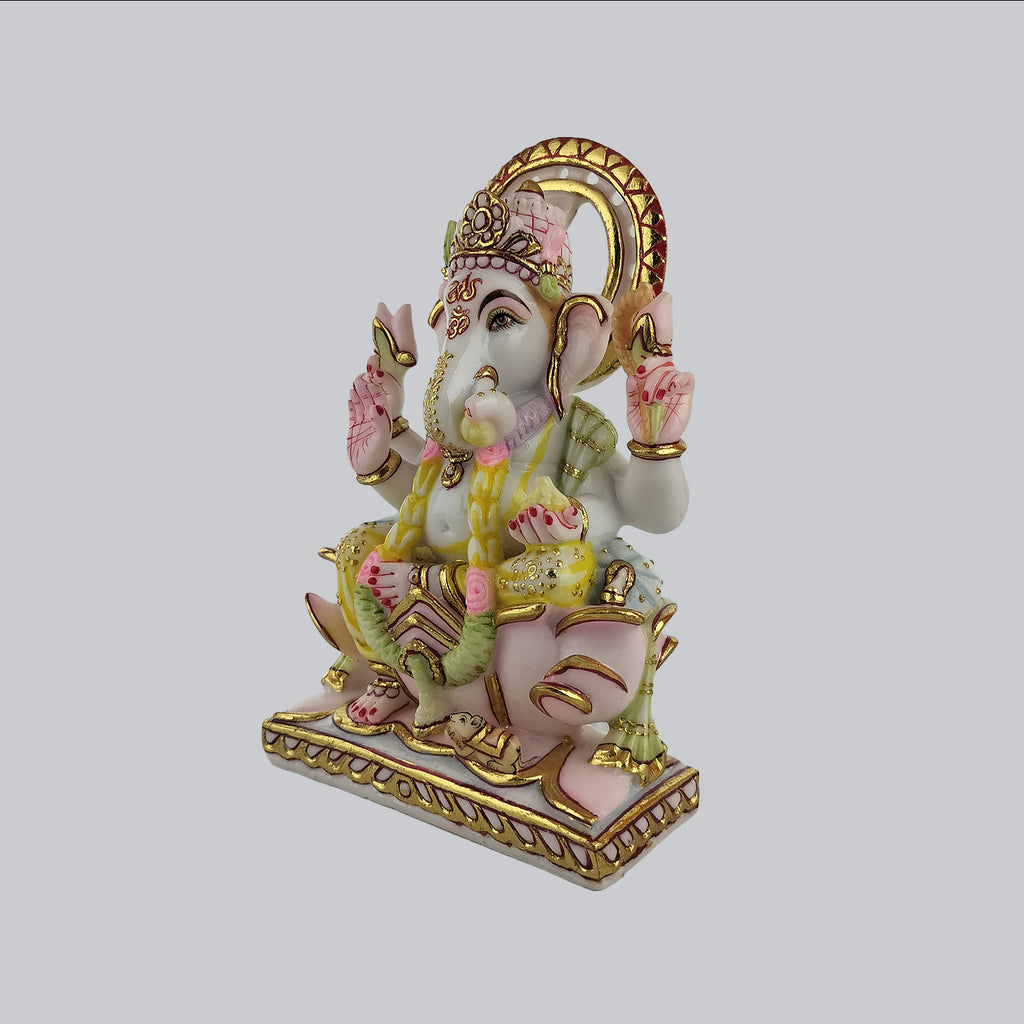 Culture Marble Ganesh in Lotus with Gold Plating 9 in