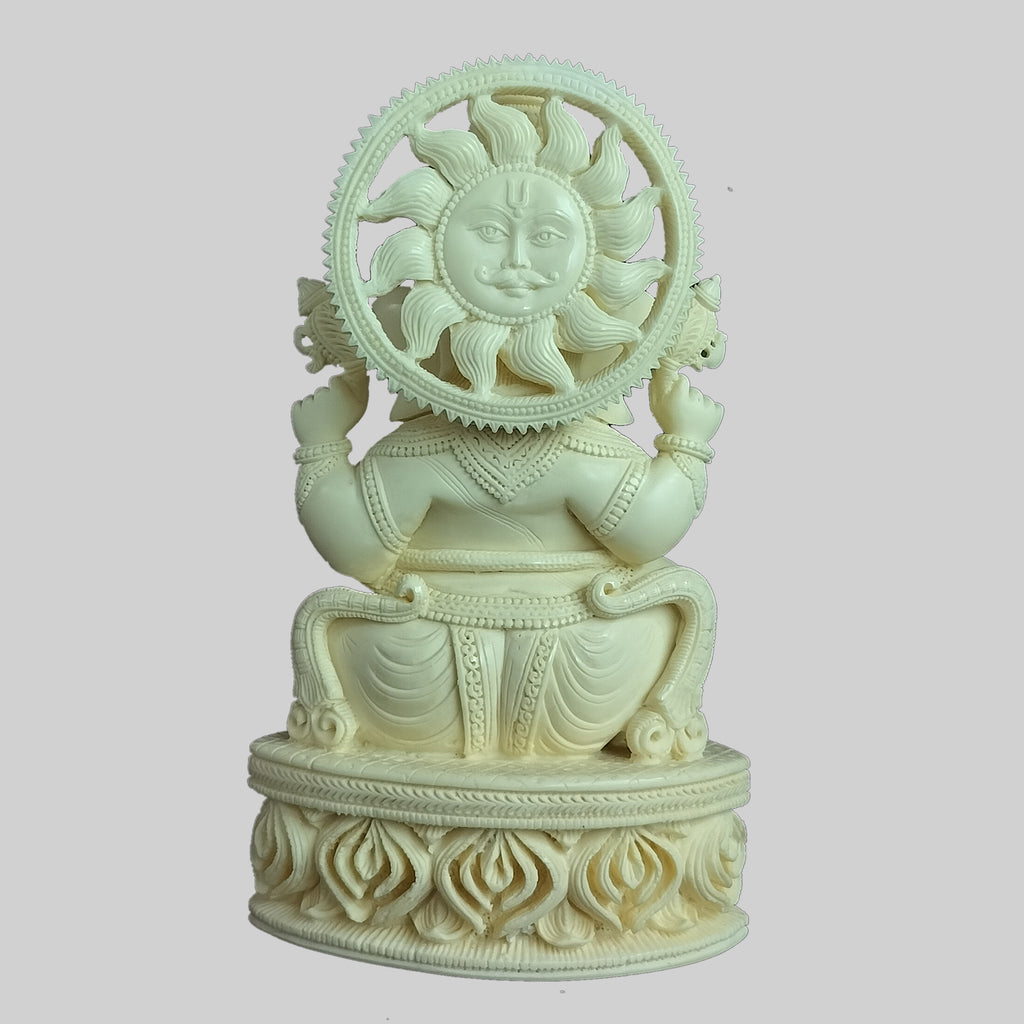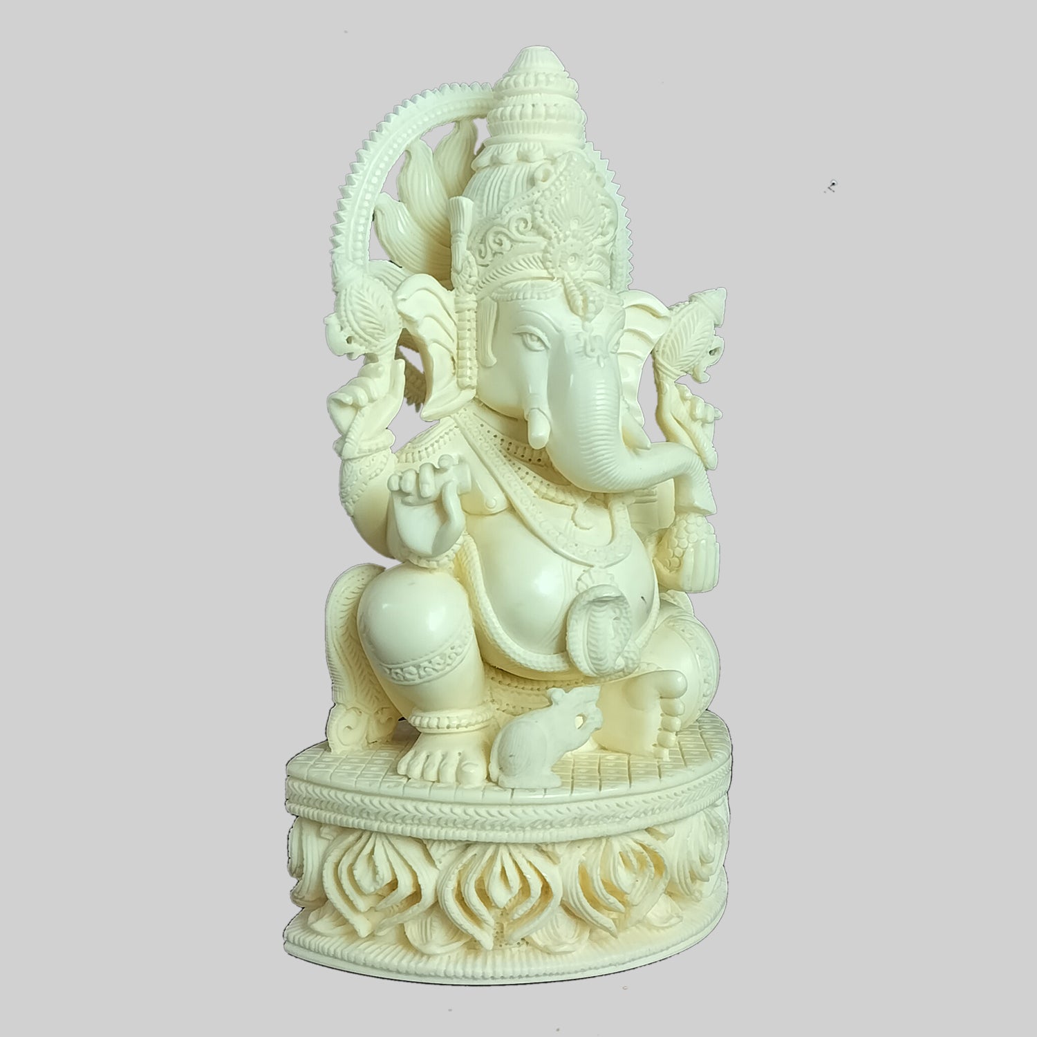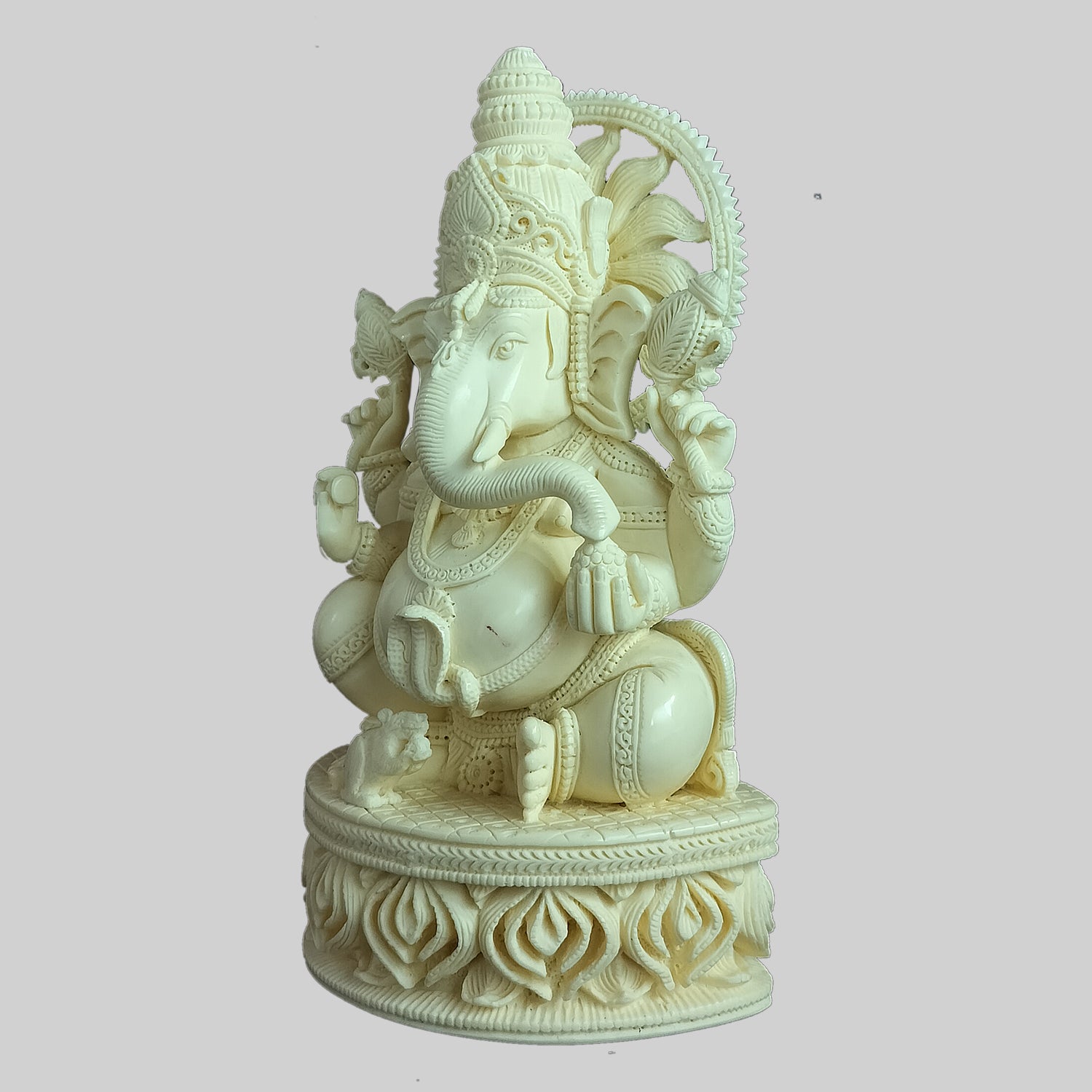 Elegant and finely detailed, this artefact is crafted from marble dust — a blend of marble powder, synthetic resins, and dyes that gives it a smooth white finish. Each piece is first sculpted from a mould, then carefully carved, finished, and hand-painted by skilled artisans with exceptional attention to facial features and embellishments. A timeless creation that reflects grace, craftsmanship, and tradition.